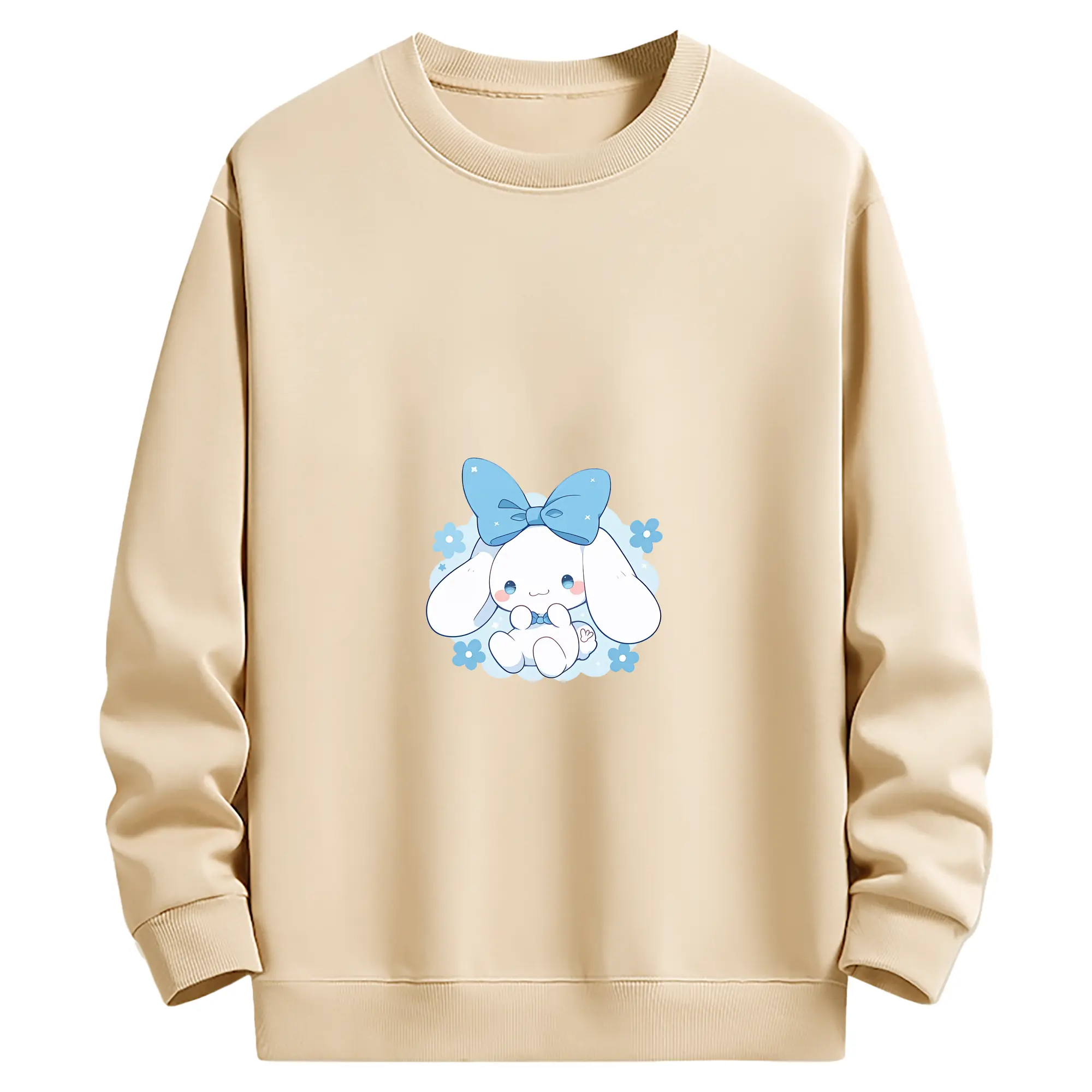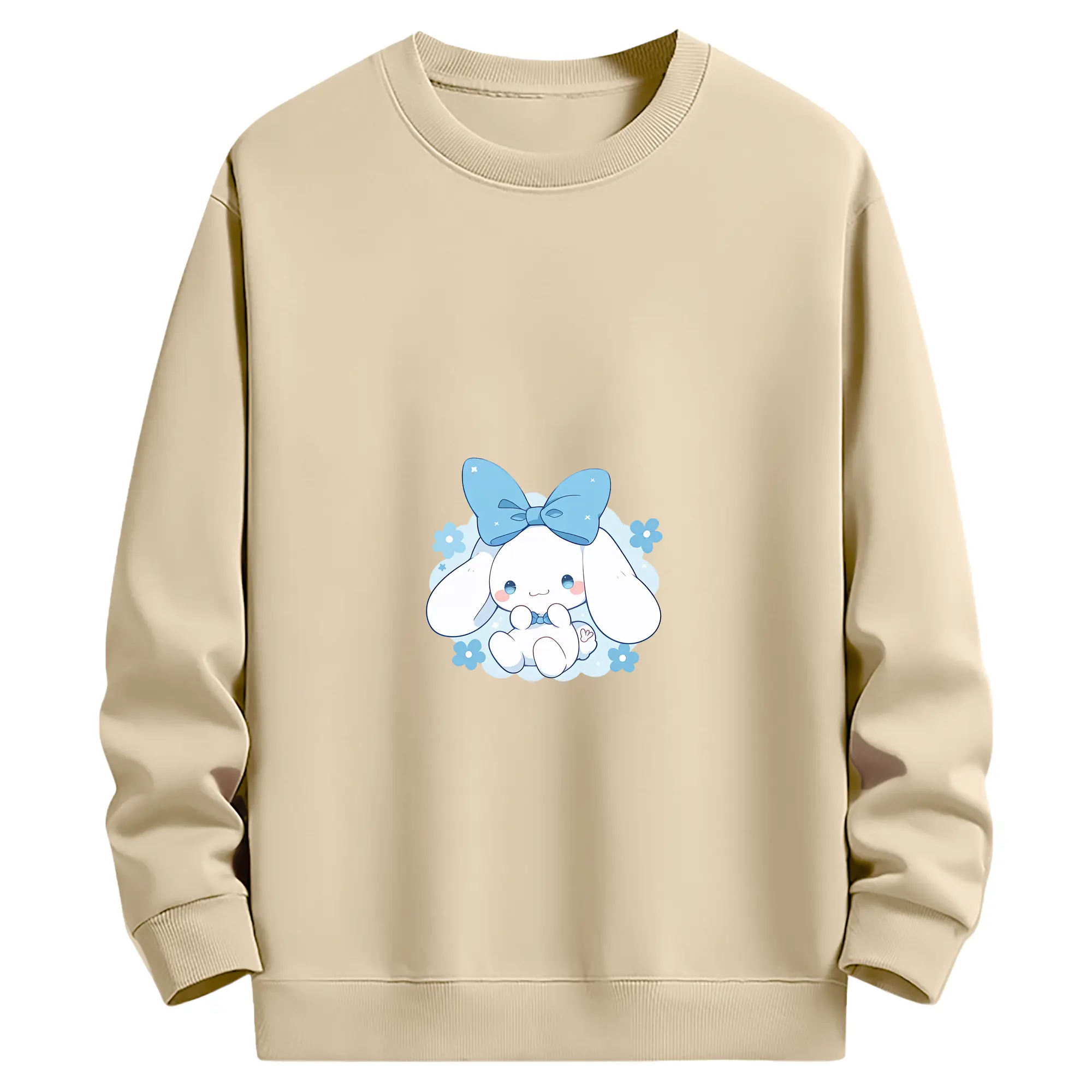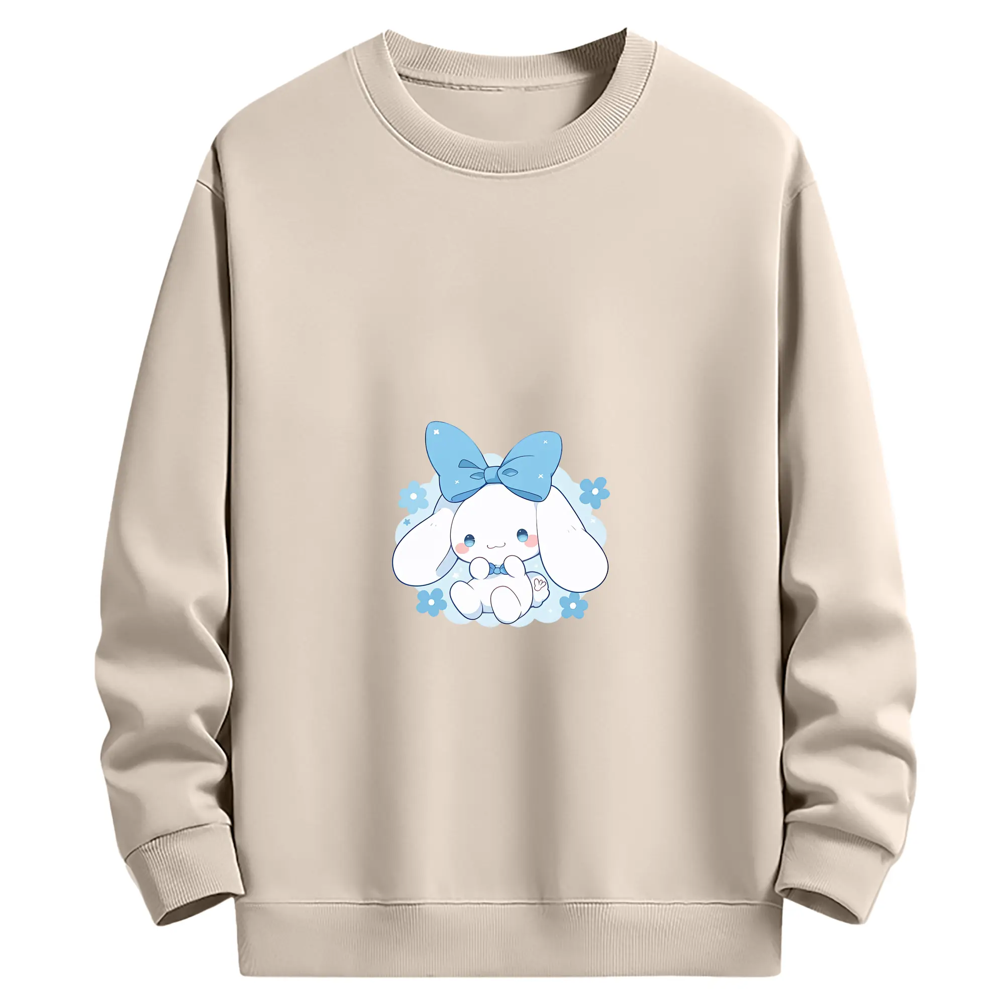 サンリオ グッズ,シナモロール - 薄手 クルーネック スウェット 裏毛260g · ポリエステル 春秋向け カジュアル 男女兼用 · トレーナー デイリー スポーツ 散歩に最適