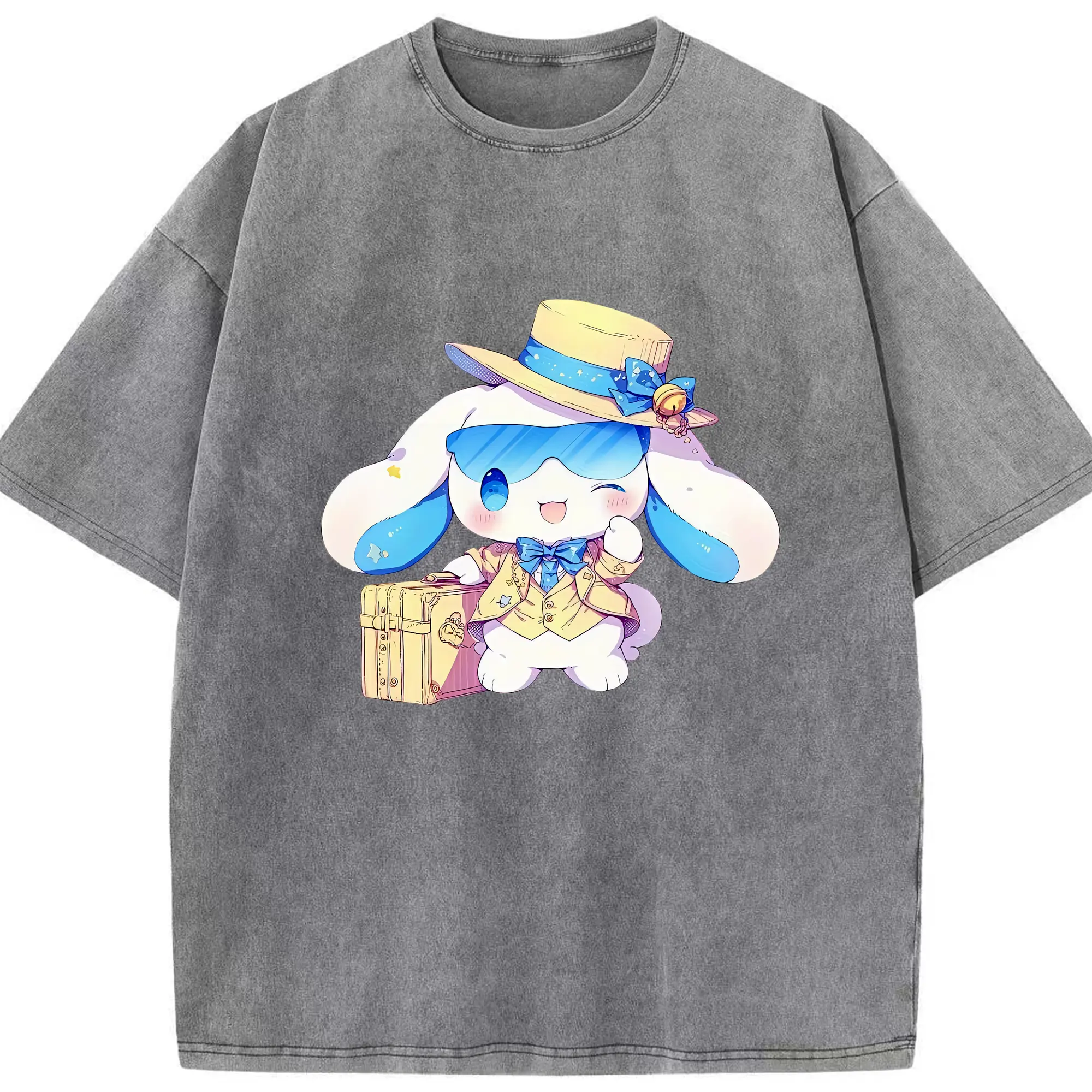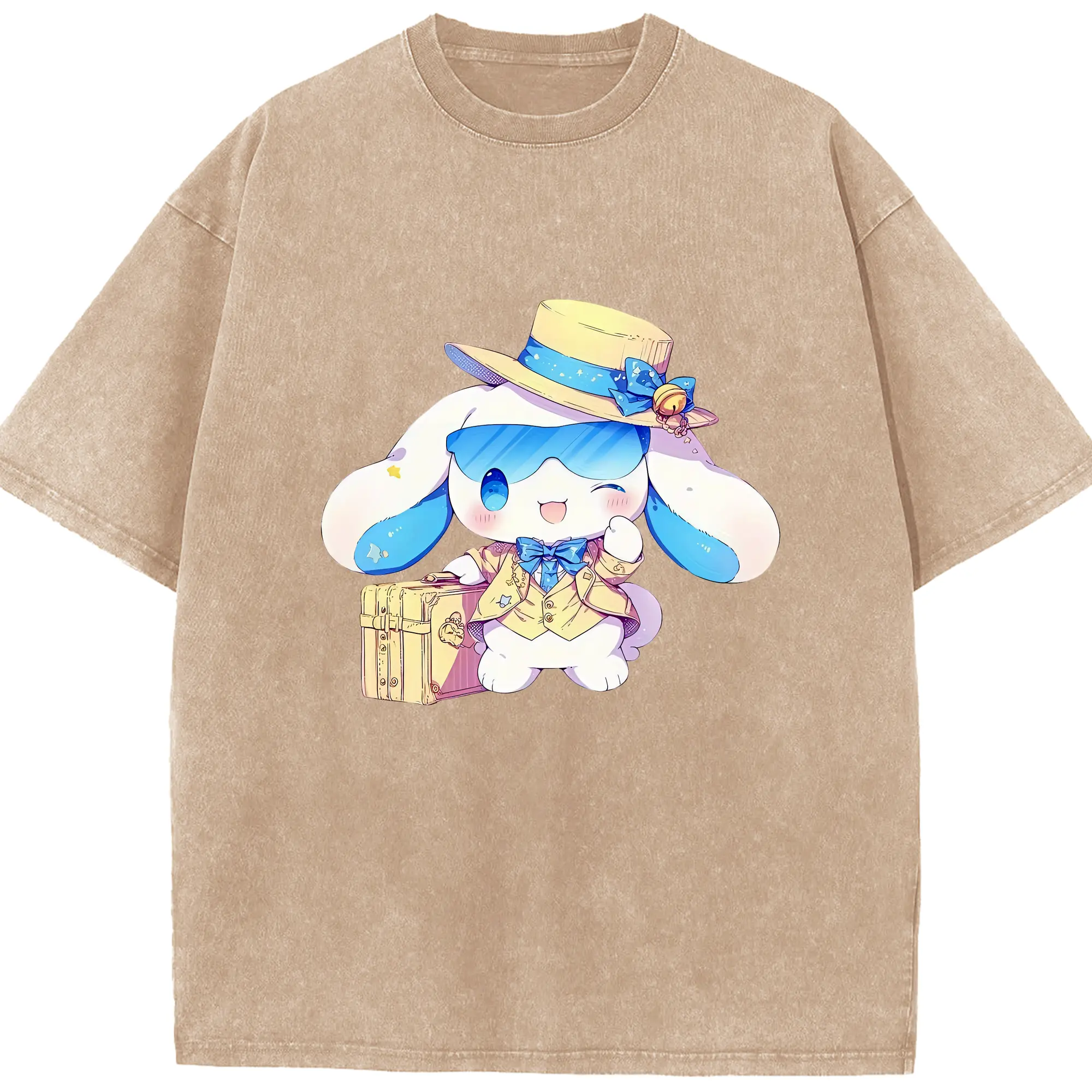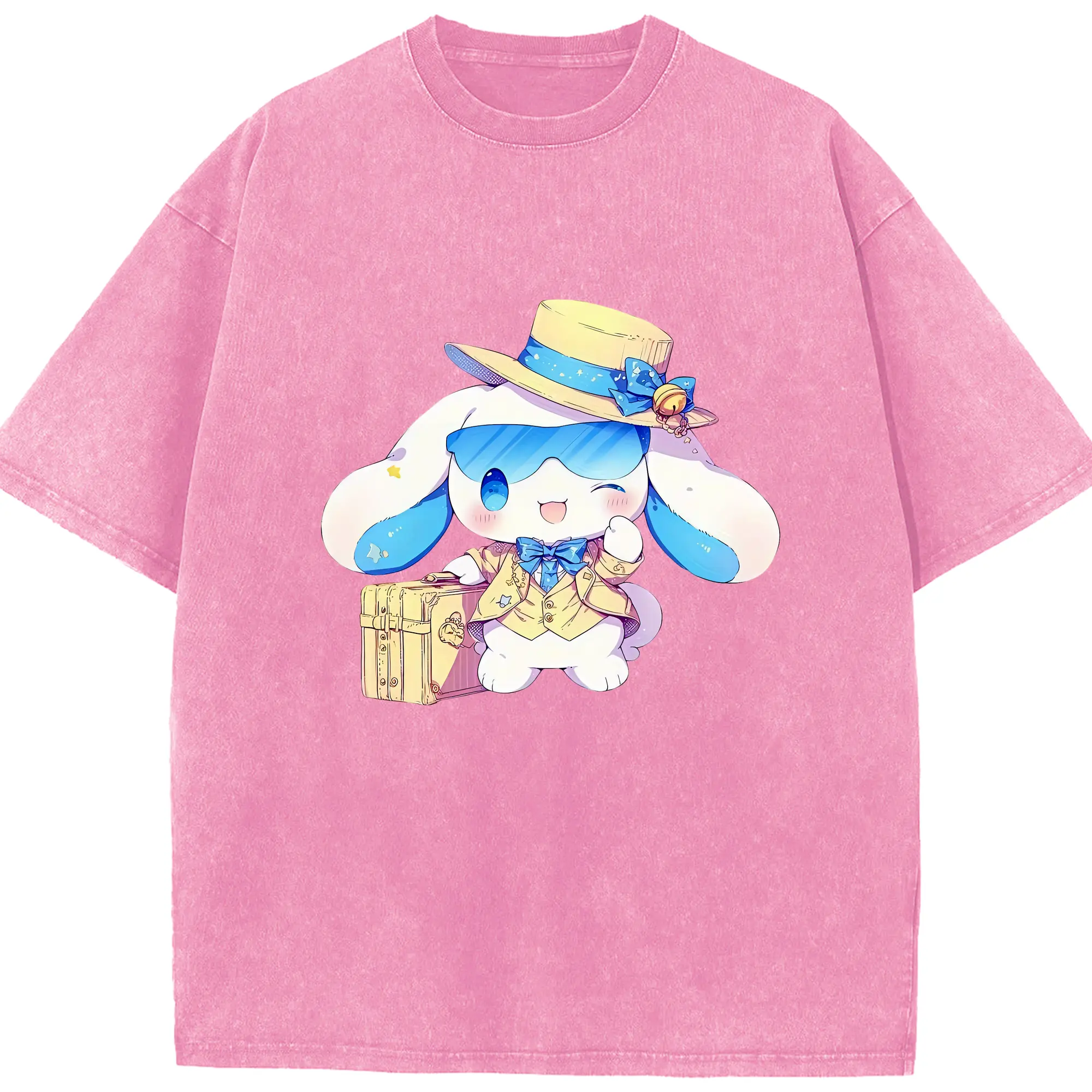 サンリオ グッズ,シナモロール - 綿100% ヴィンテージ風 半袖Tシャツ ・ 背面プリント ・ 柔らか肌触り ・ 通気性 快適 ・ スポーツ カジュアル 外出用