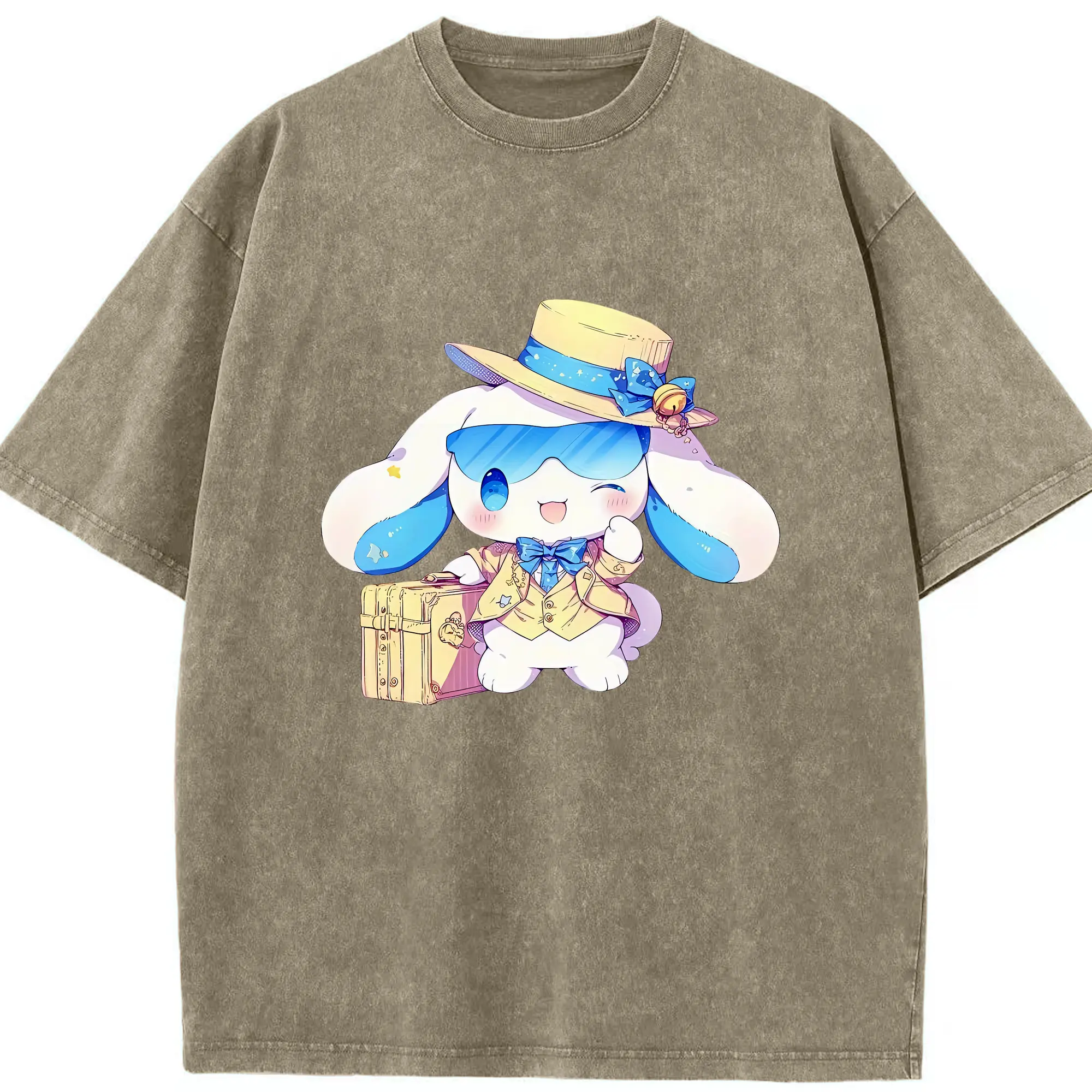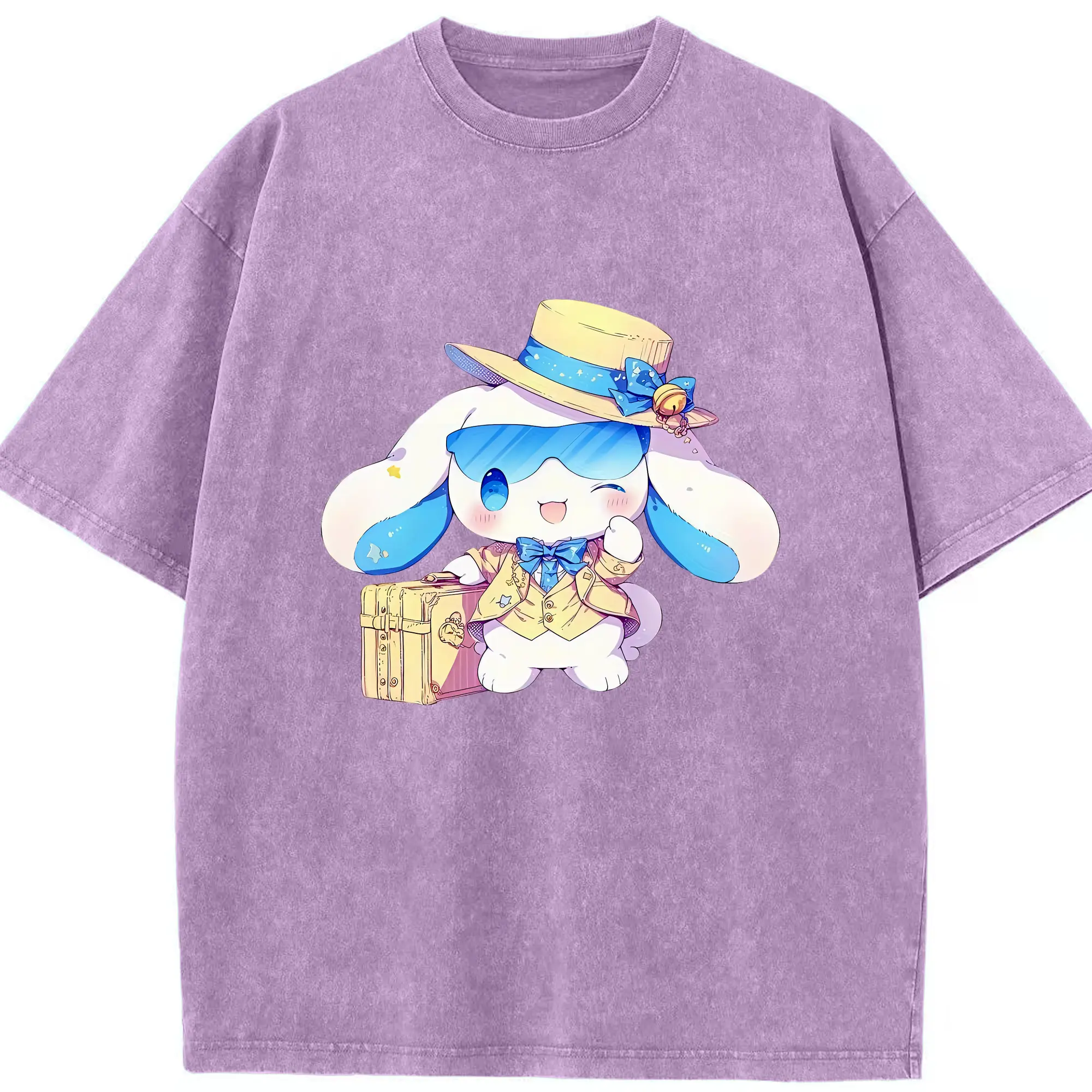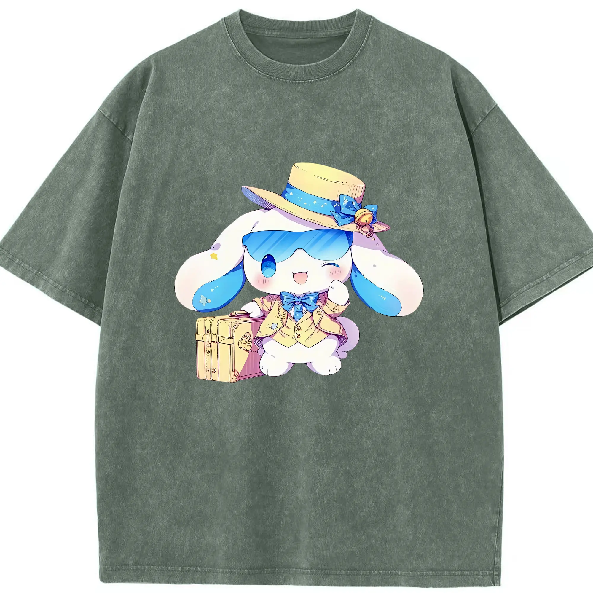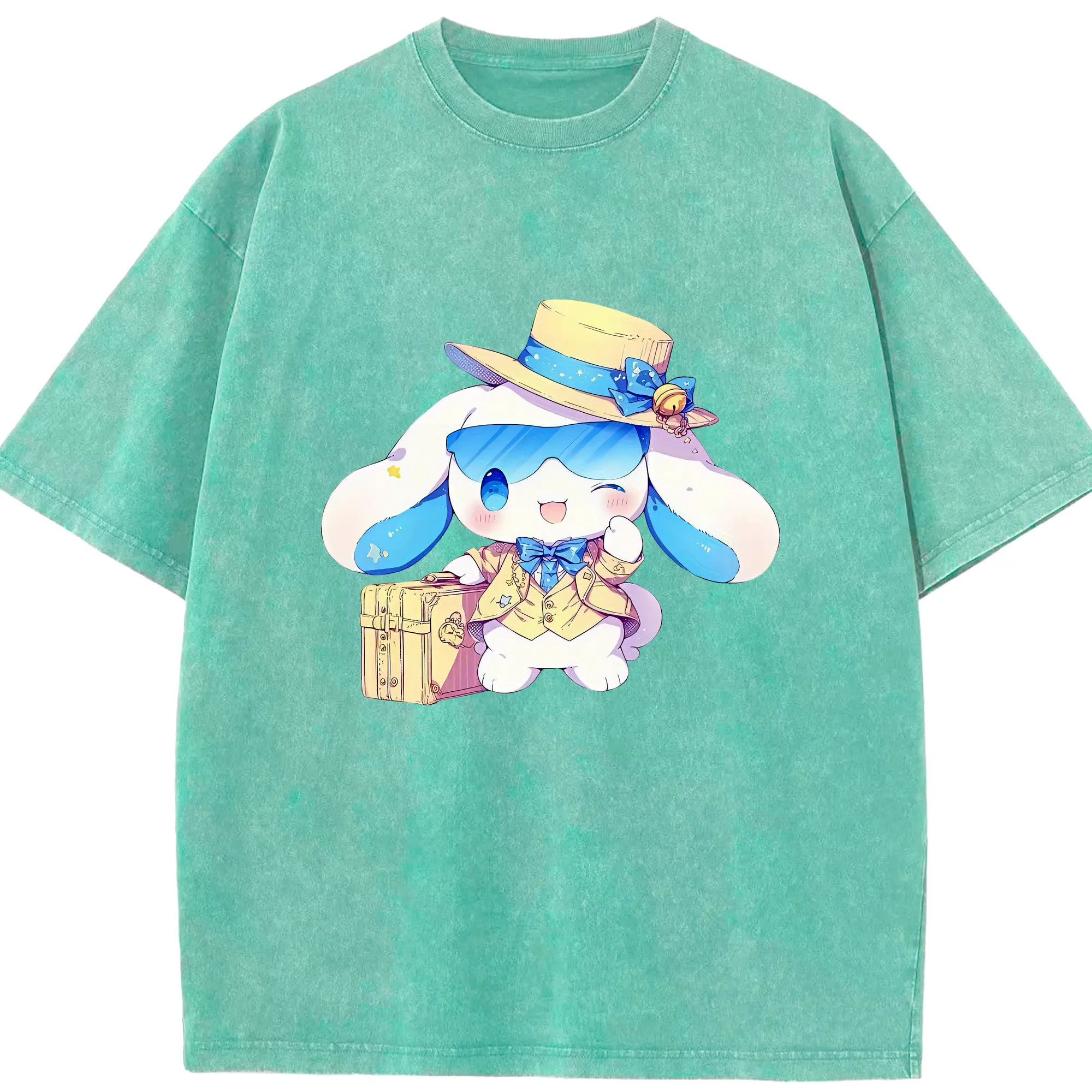 サンリオ グッズ,シナモロール - 綿100% ヴィンテージ風 半袖Tシャツ ・ 背面プリント ・ 柔らか肌触り ・ 通気性 快適 ・ スポーツ カジュアル 外出用