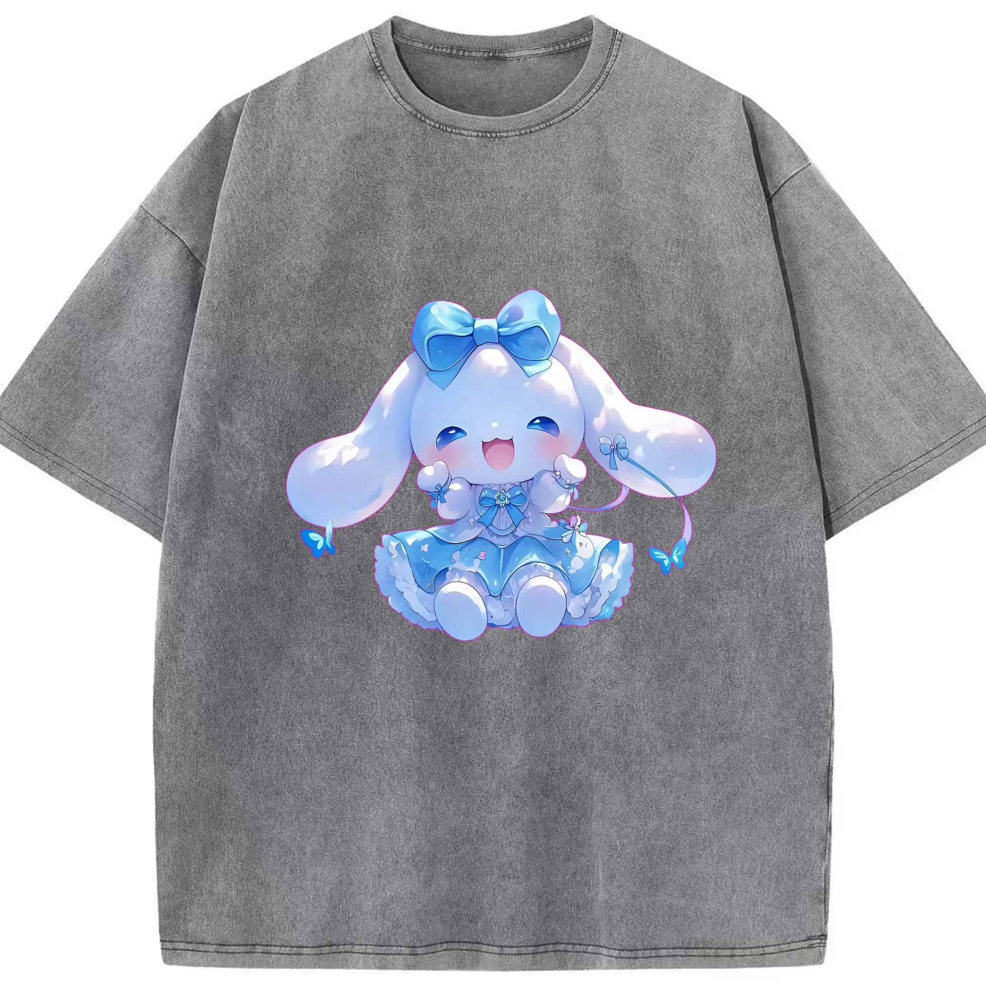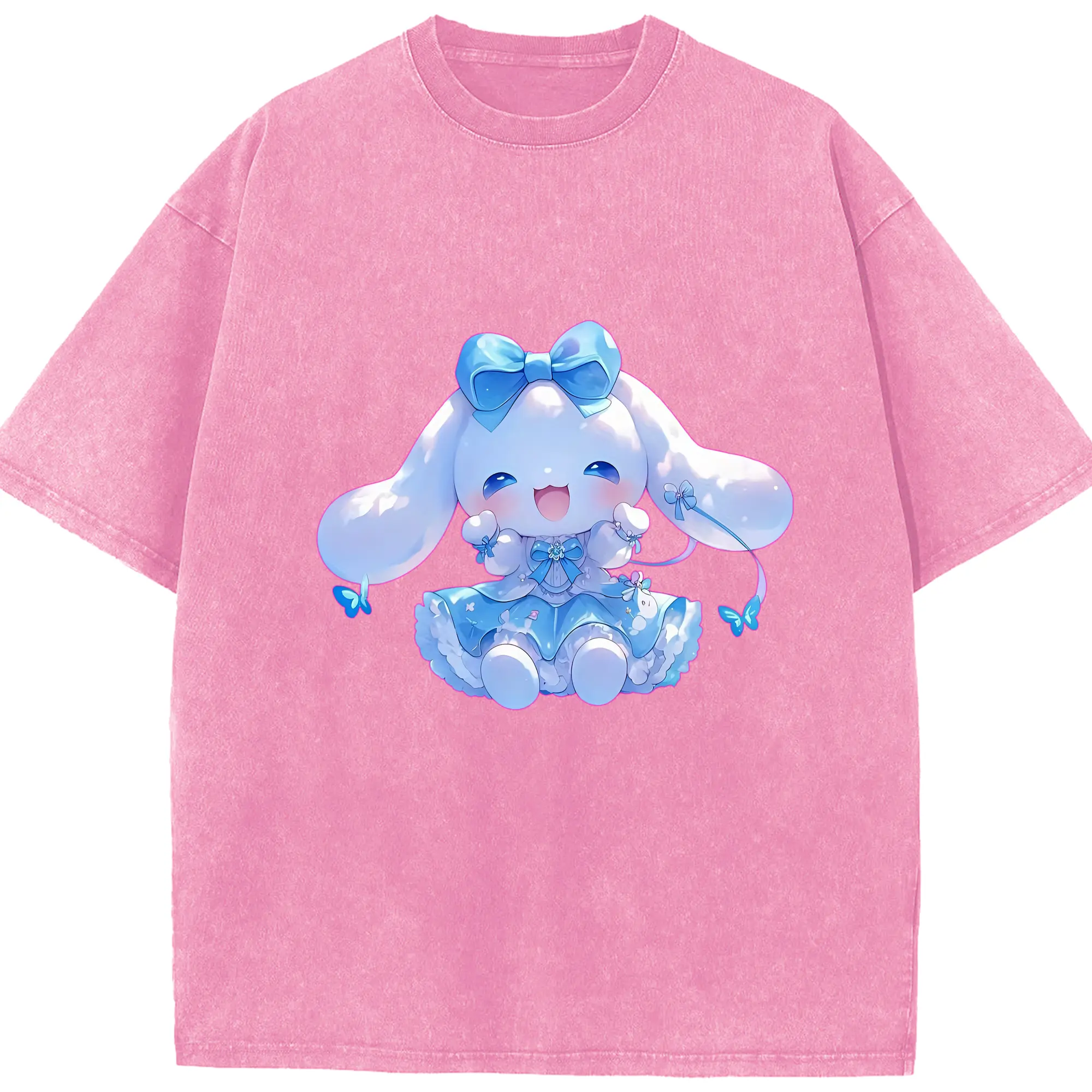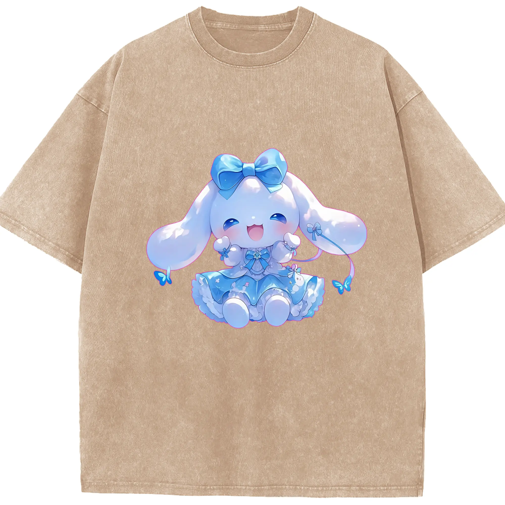 サンリオ グッズ,シナモロール - 綿100% ヴィンテージ風 半袖Tシャツ ・ 背面プリント ・ 柔らか肌触り ・ 通気性 快適 ・ スポーツ カジュアル 外出用