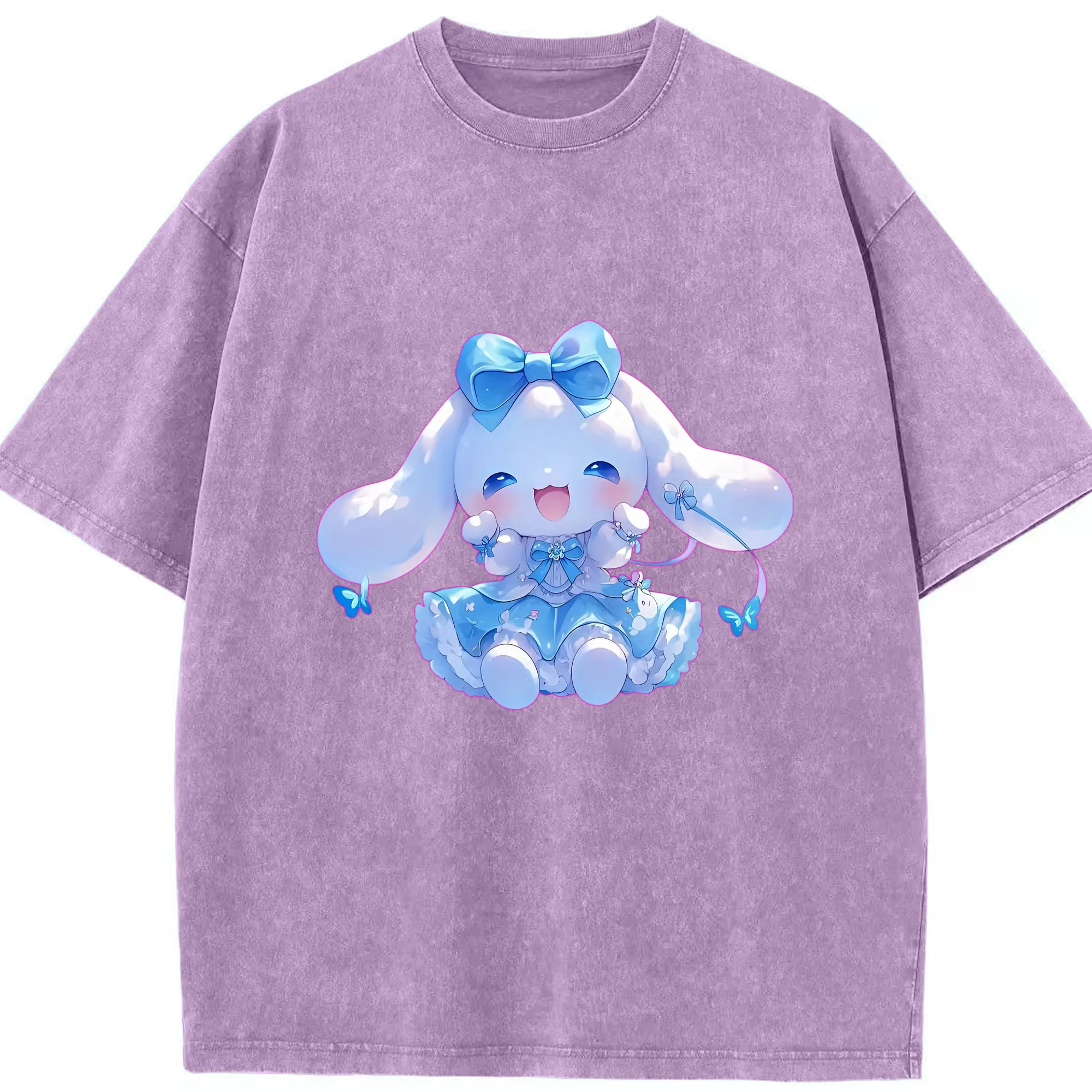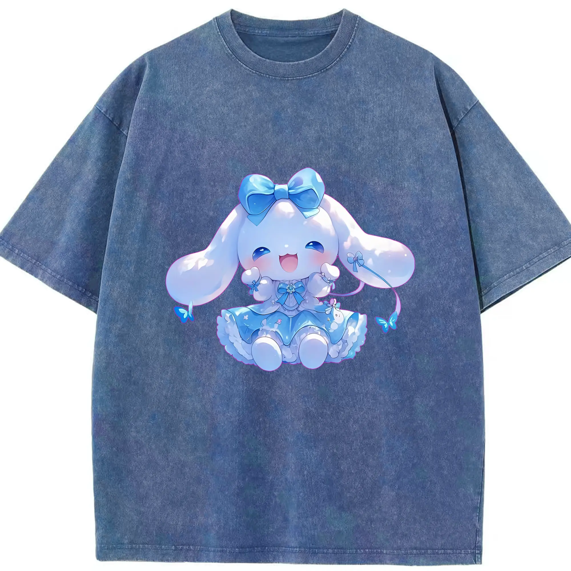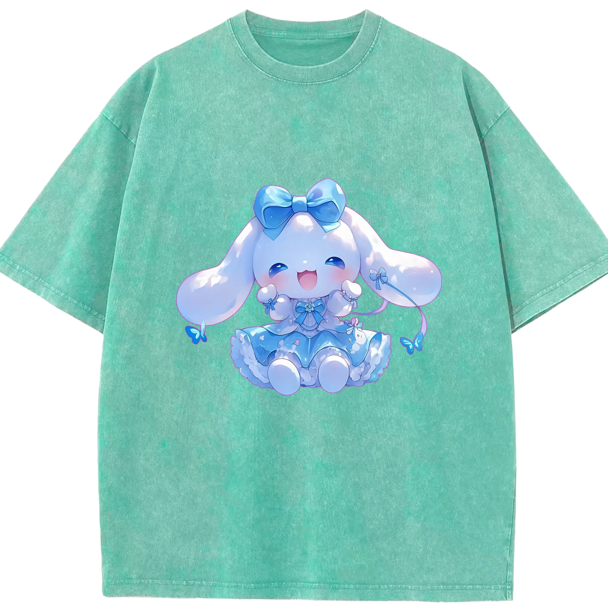 サンリオ グッズ,シナモロール - 綿100% ヴィンテージ風 半袖Tシャツ ・ 背面プリント ・ 柔らか肌触り ・ 通気性 快適 ・ スポーツ カジュアル 外出用