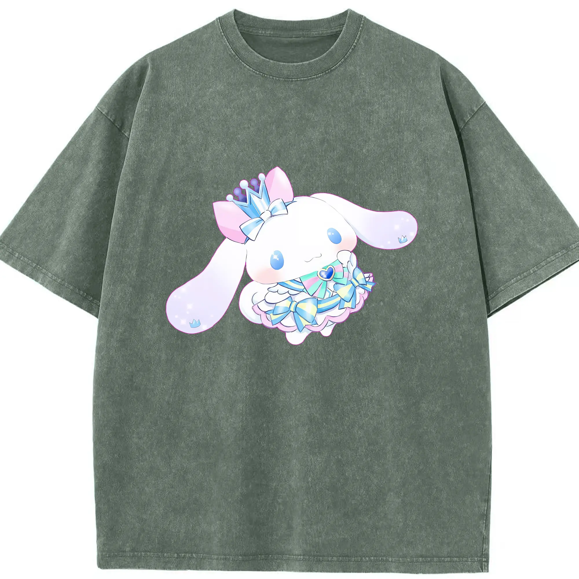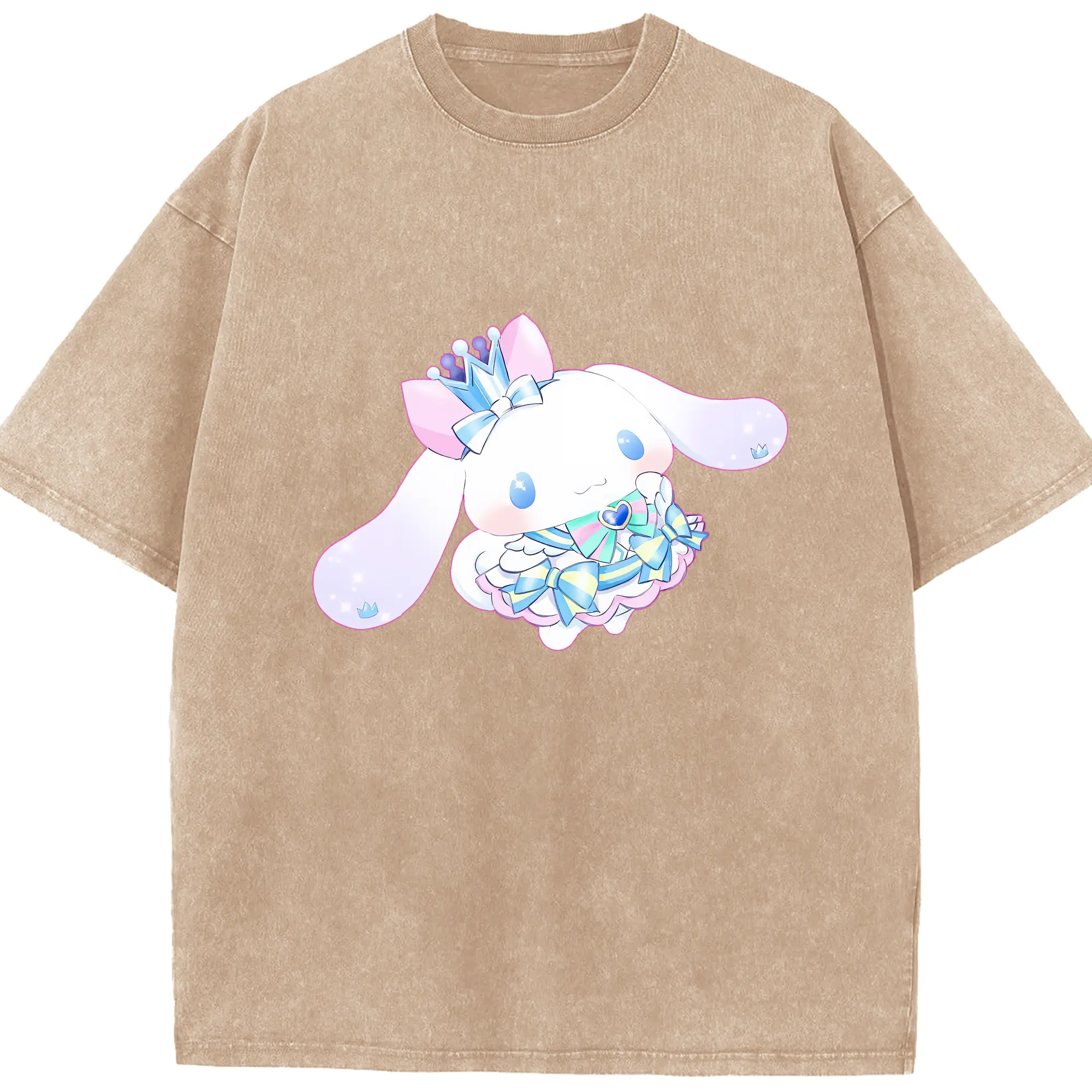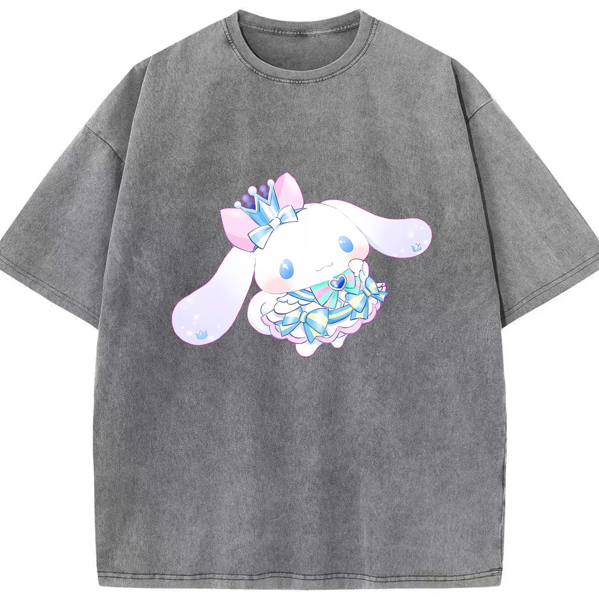 サンリオ グッズ,シナモロール - 綿100% ヴィンテージ風 半袖Tシャツ ・ 背面プリント ・ 柔らか肌触り ・ 通気性 快適 ・ スポーツ カジュアル 外出用
