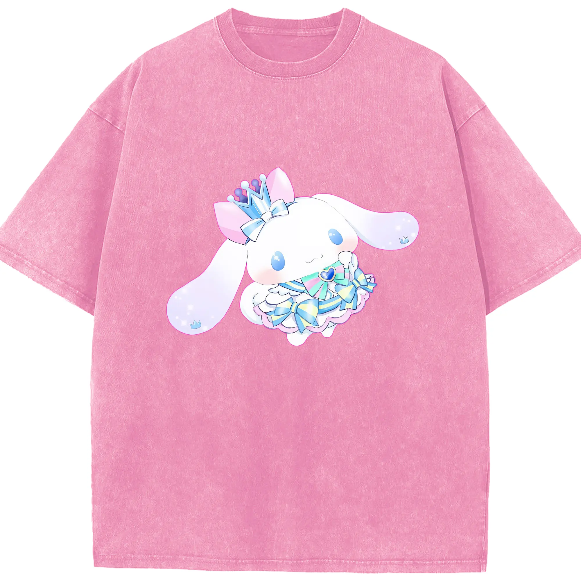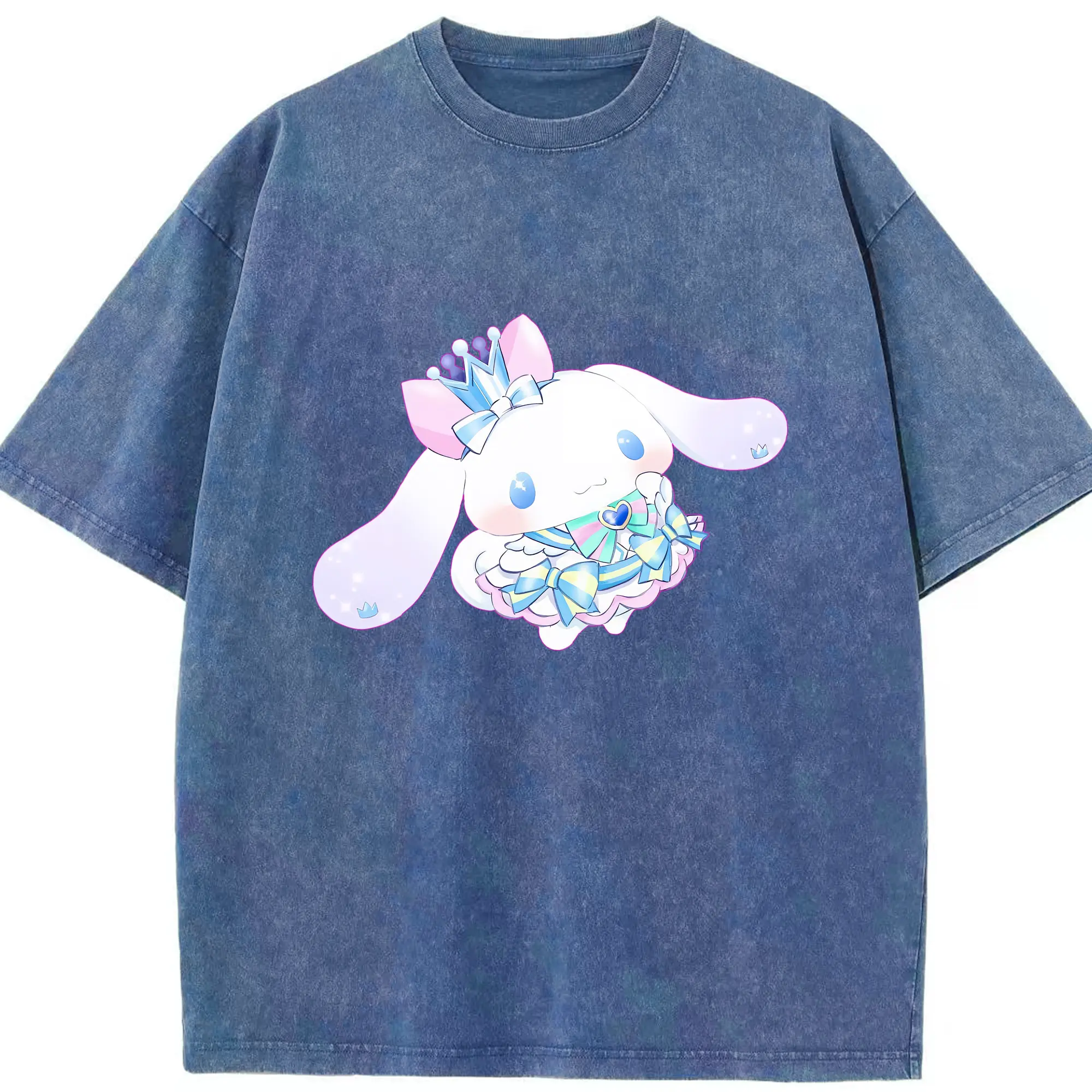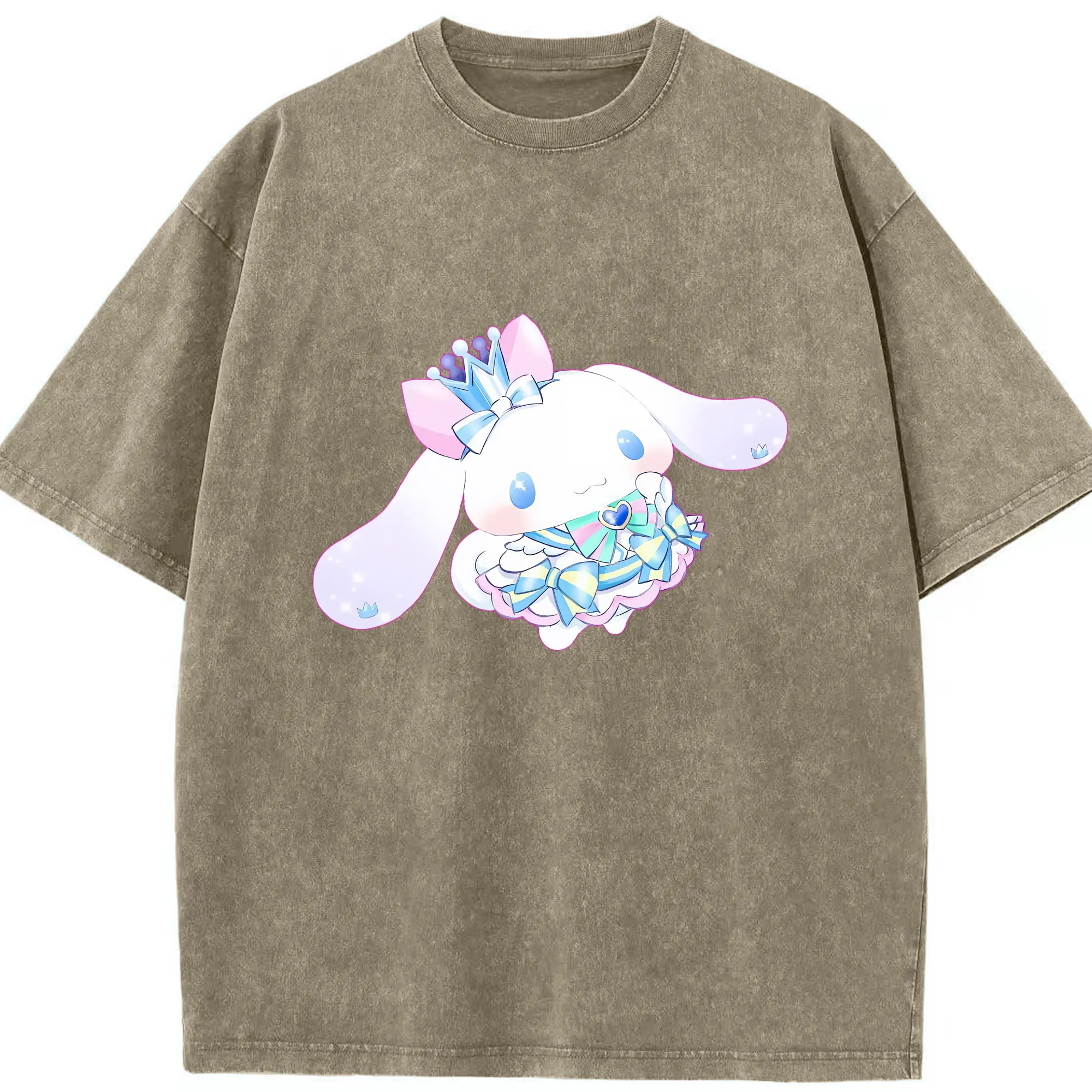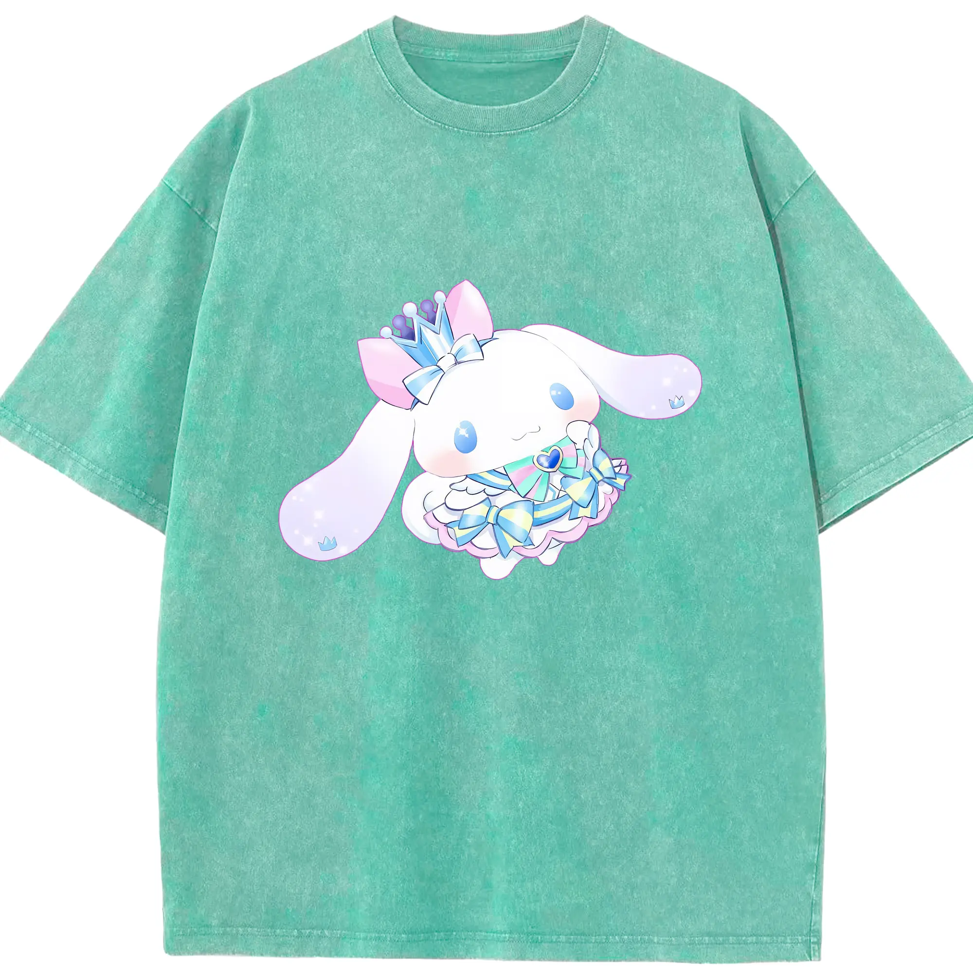 サンリオ グッズ,シナモロール - 綿100% ヴィンテージ風 半袖Tシャツ ・ 背面プリント ・ 柔らか肌触り ・ 通気性 快適 ・ スポーツ カジュアル 外出用