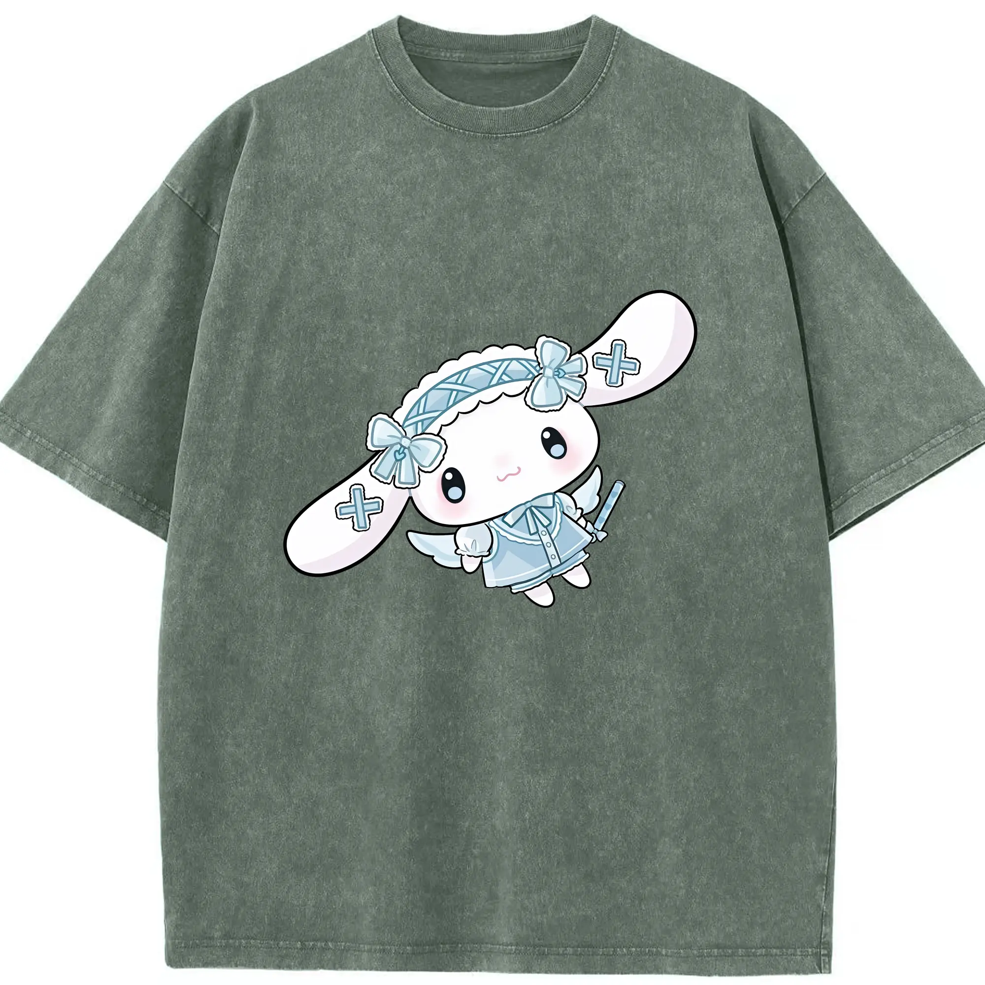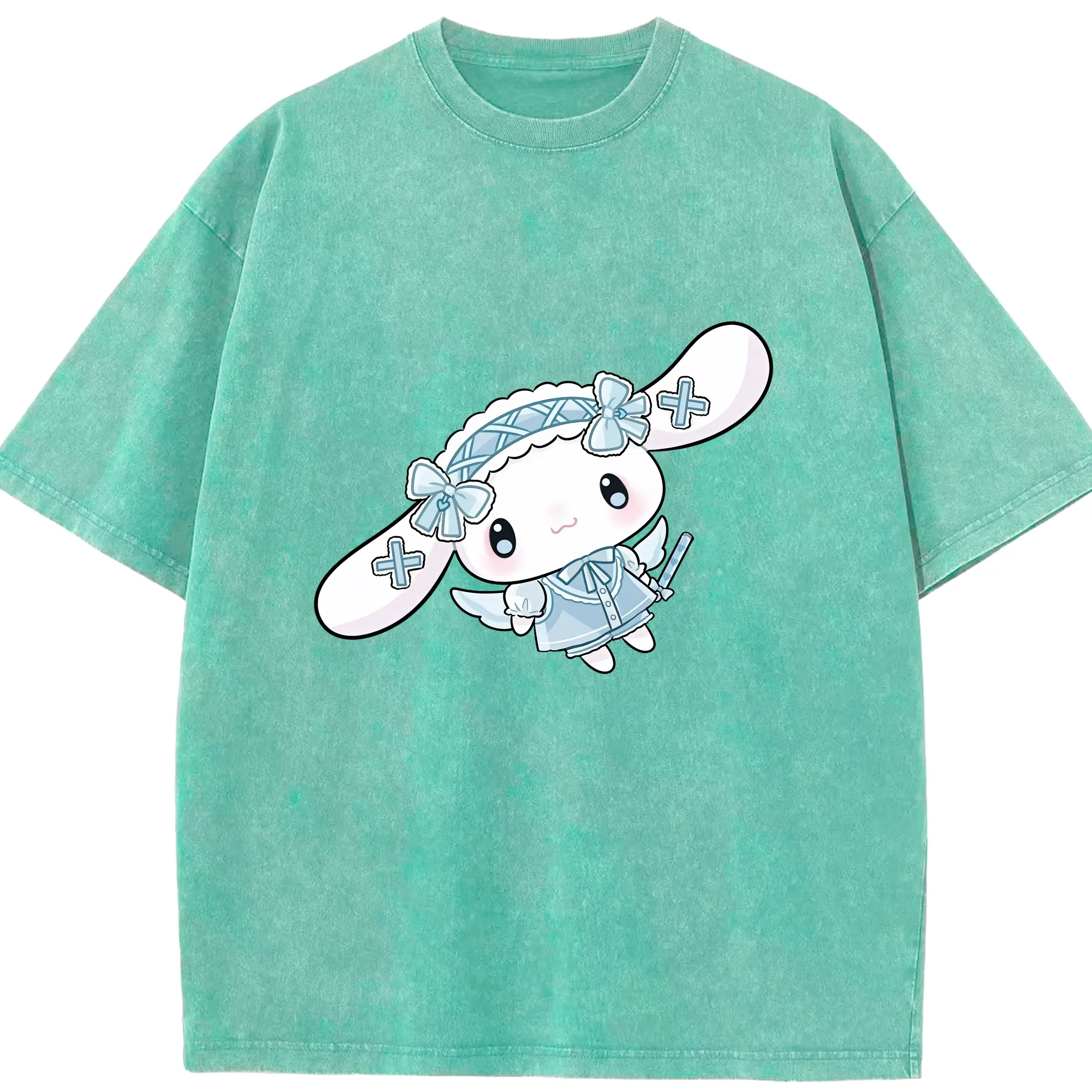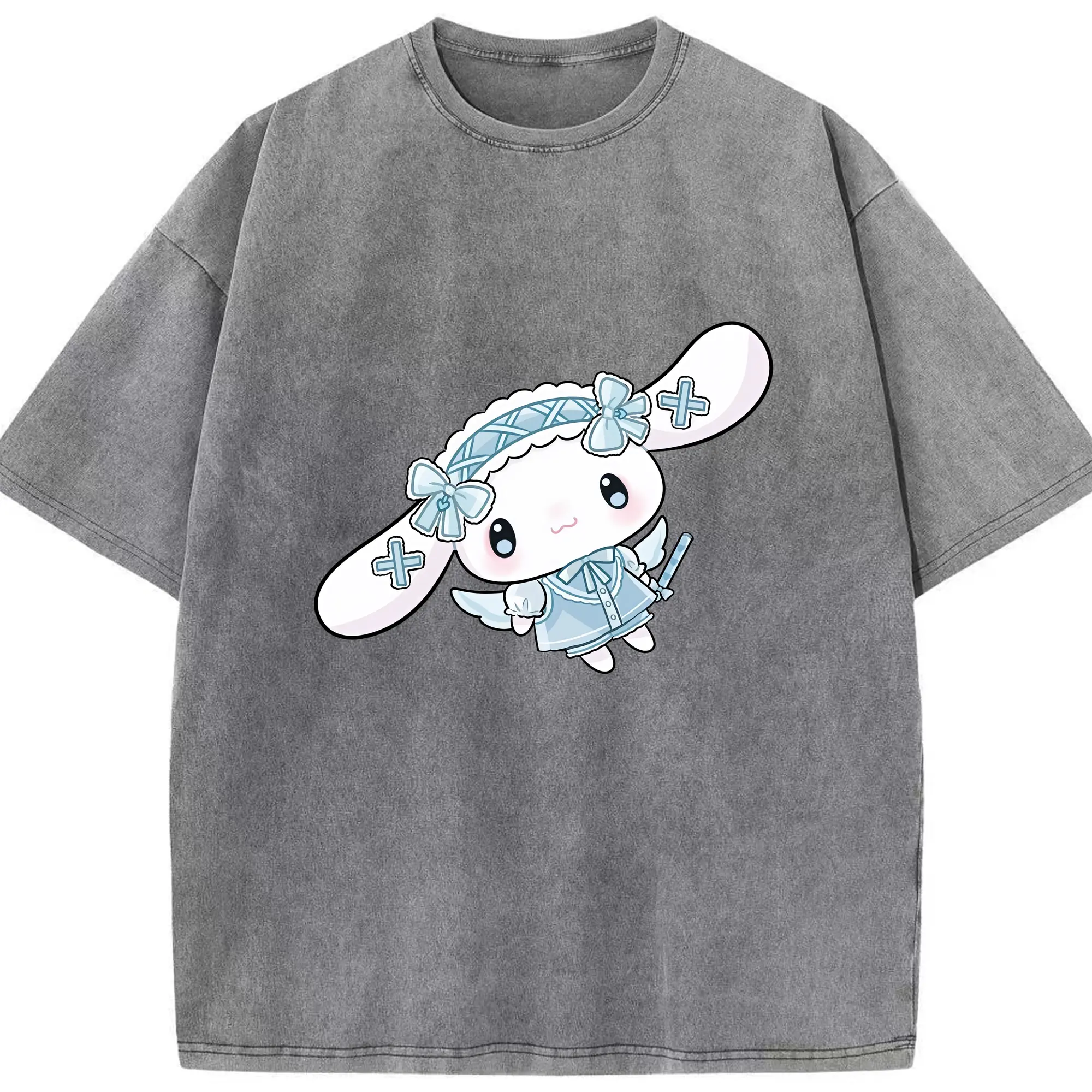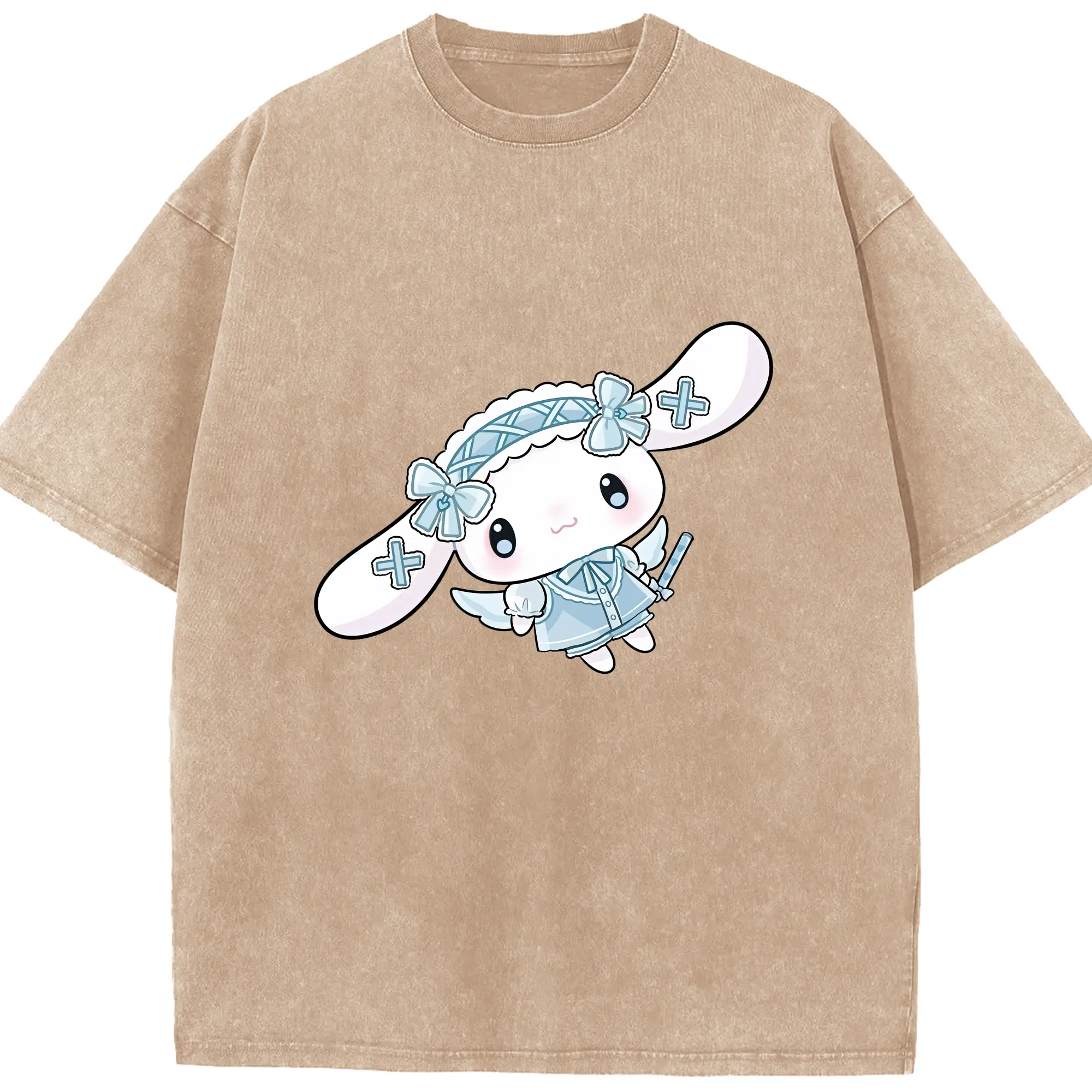 サンリオ グッズ,シナモロール - 綿100% ヴィンテージ風 半袖Tシャツ ・ 背面プリント ・ 柔らか肌触り ・ 通気性 快適 ・ スポーツ カジュアル 外出用