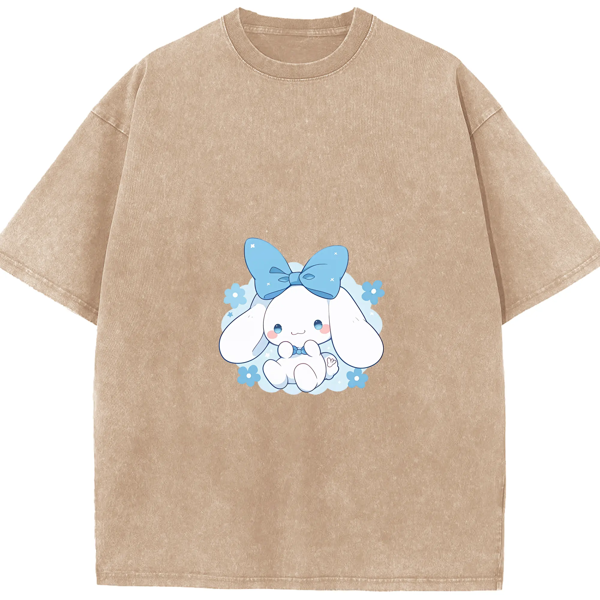 サンリオ グッズ,シナモロール - 綿100% ヴィンテージ風 半袖Tシャツ ・ 背面プリント ・ 柔らか肌触り ・ 通気性 快適 ・ スポーツ カジュアル 外出用