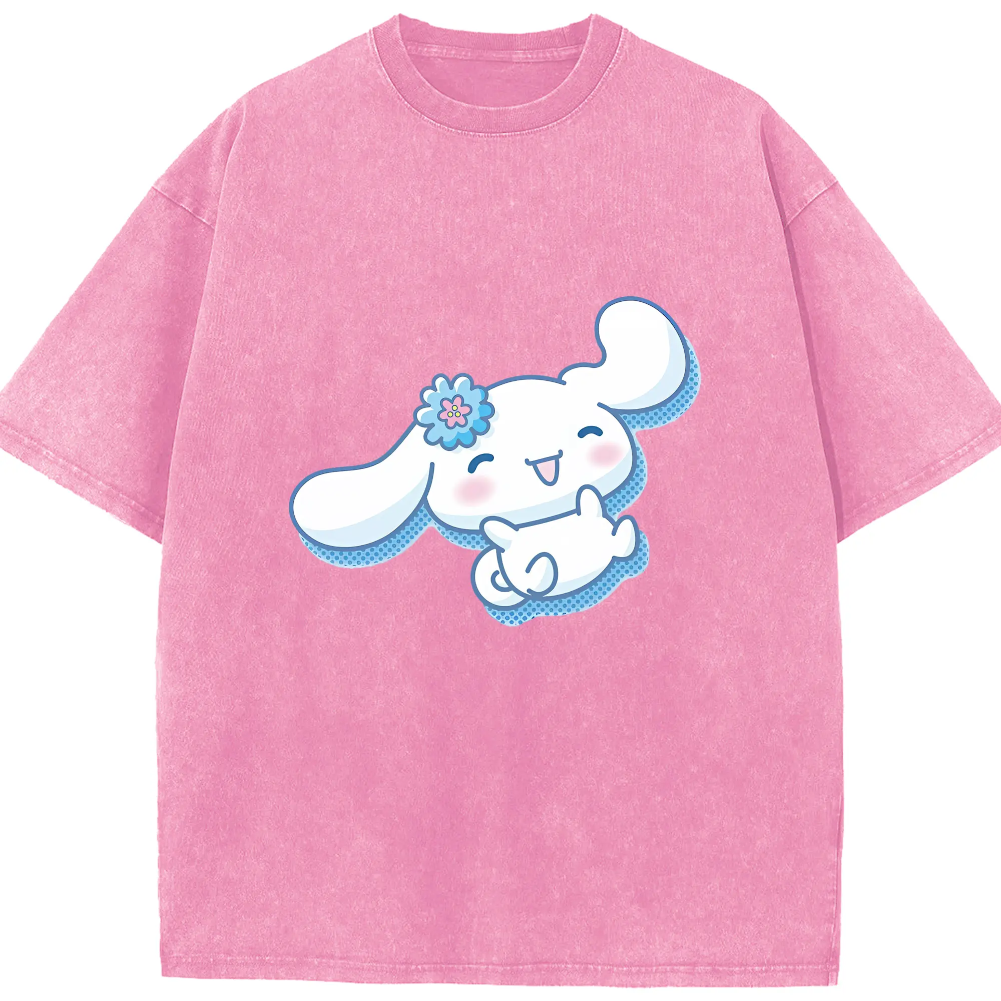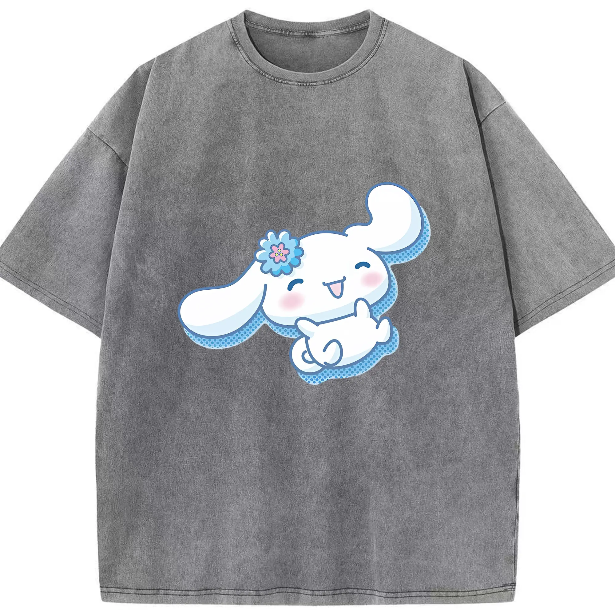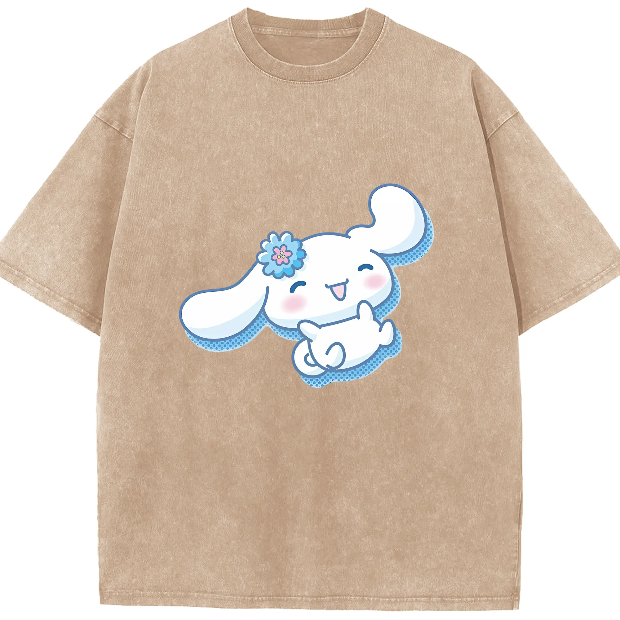 サンリオ グッズ,シナモロール - 綿100% ヴィンテージ風 半袖Tシャツ ・ 背面プリント ・ 柔らか肌触り ・ 通気性 快適 ・ スポーツ カジュアル 外出用