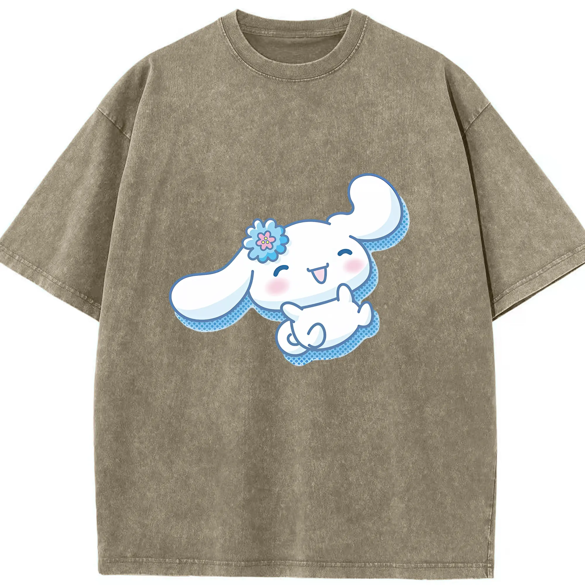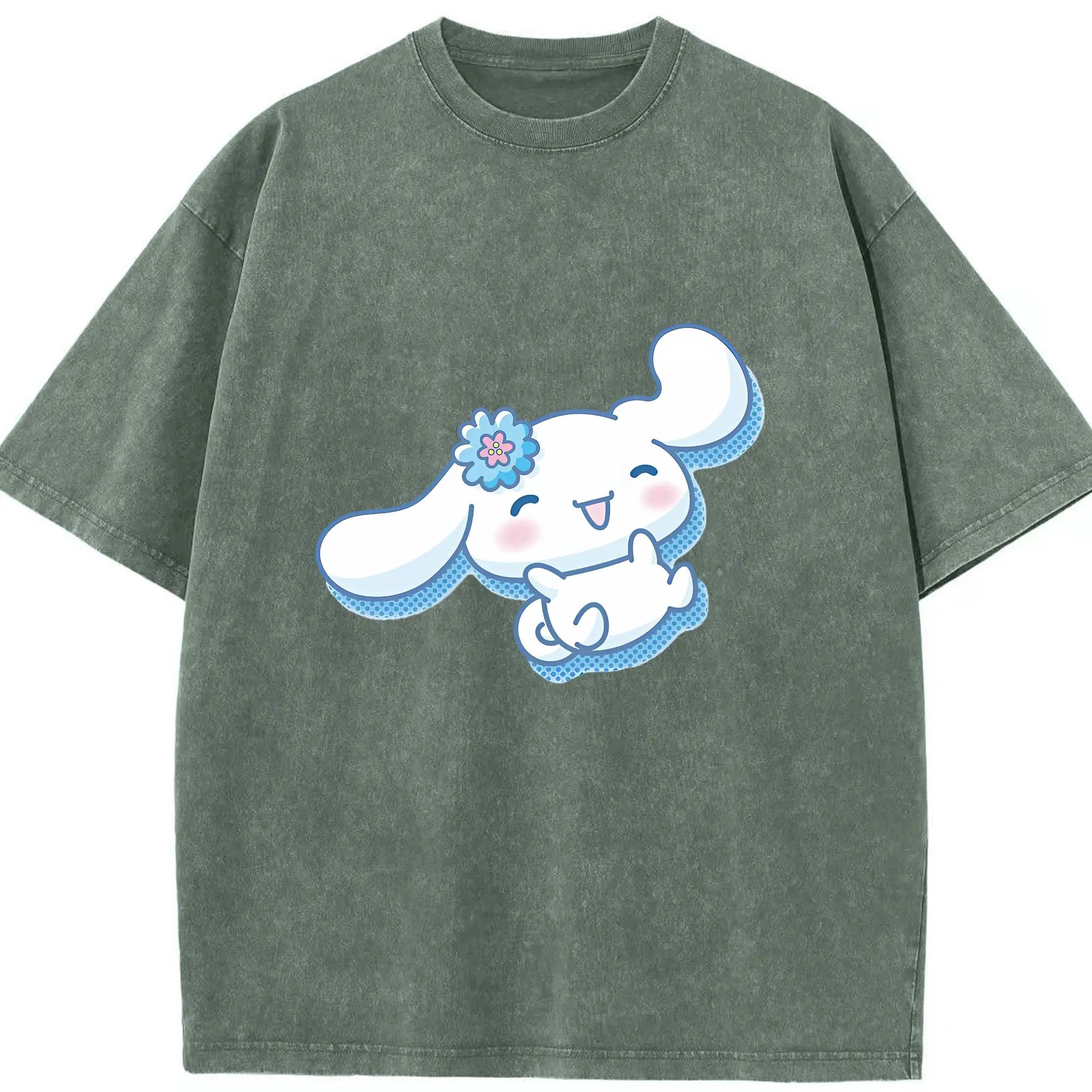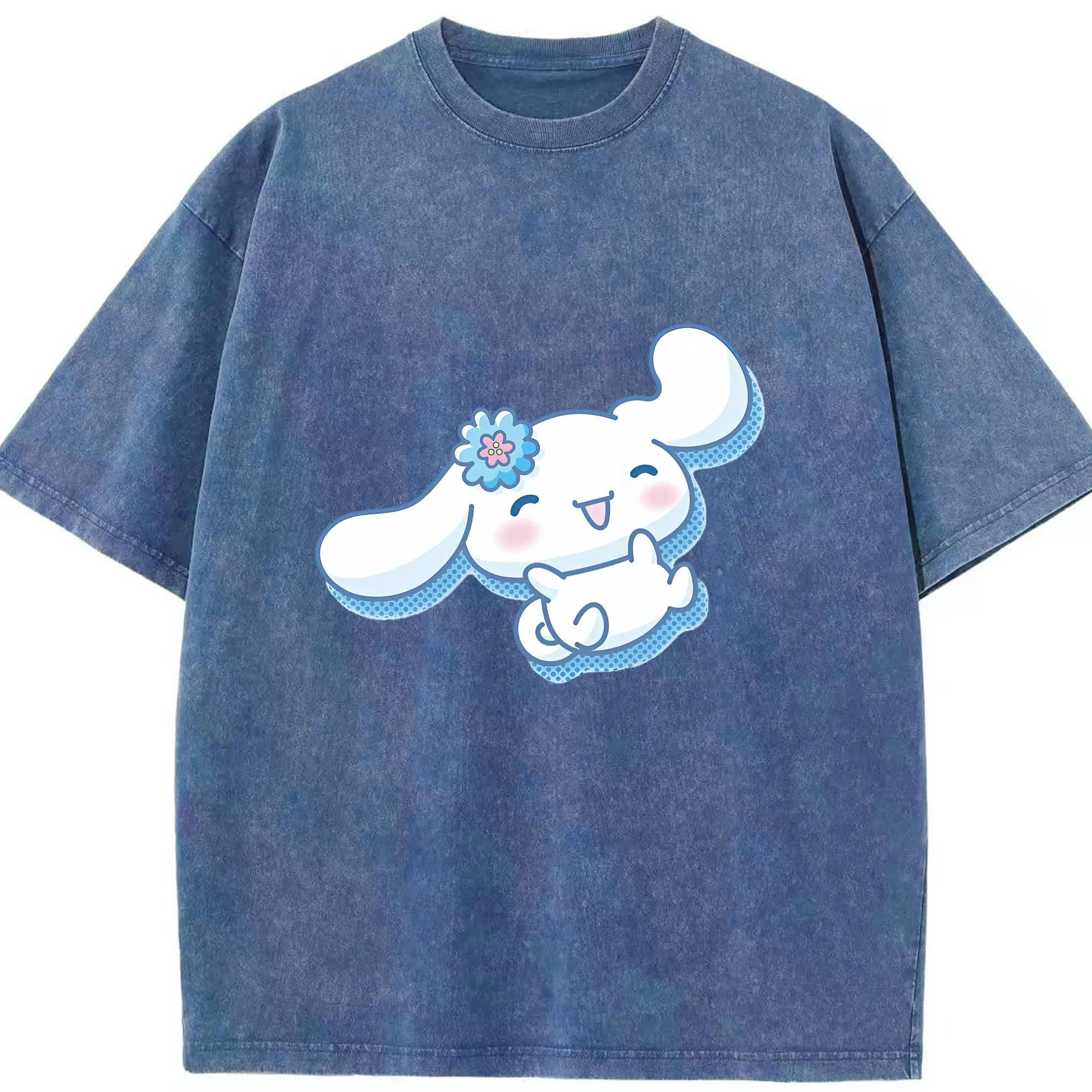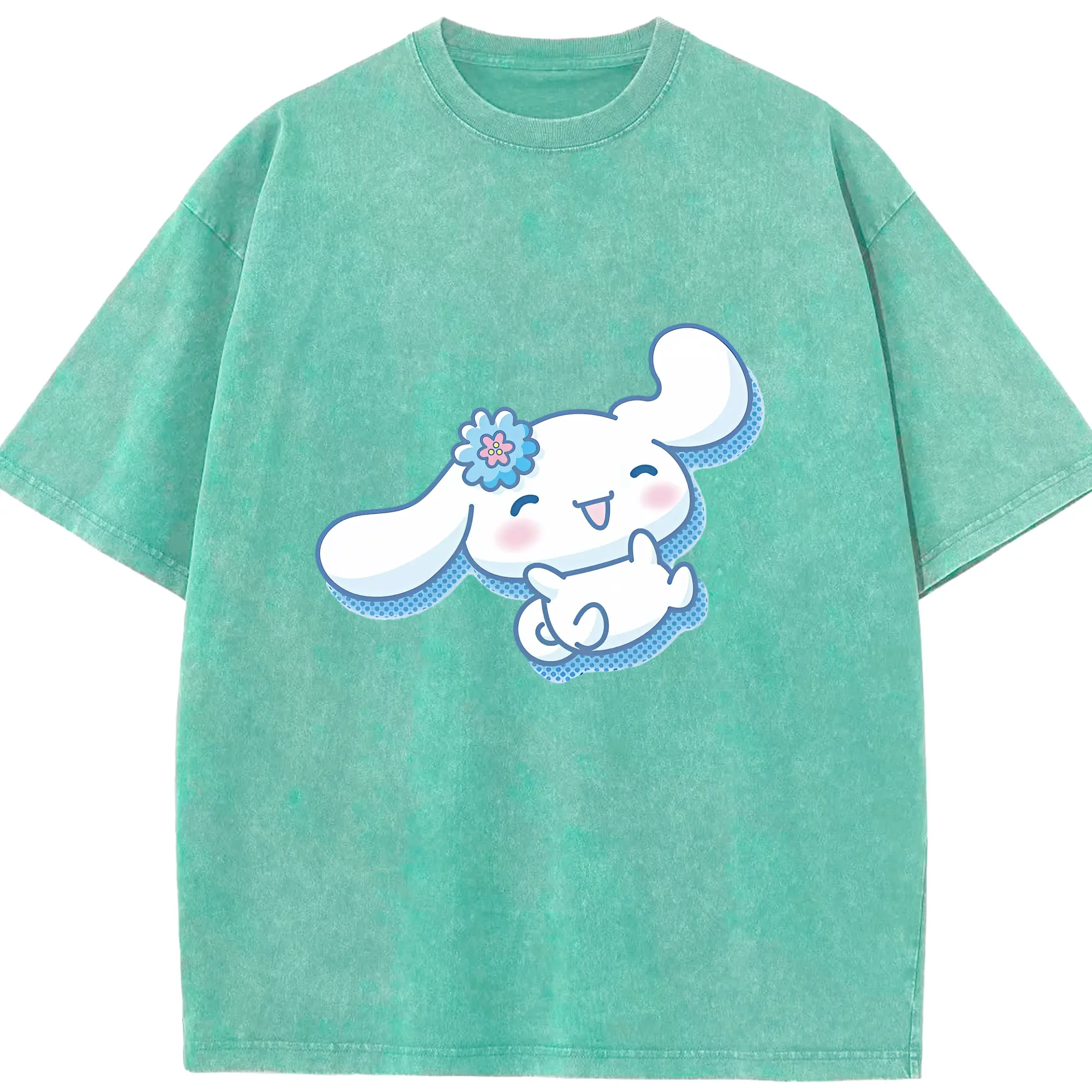 サンリオ グッズ,シナモロール - 綿100% ヴィンテージ風 半袖Tシャツ ・ 背面プリント ・ 柔らか肌触り ・ 通気性 快適 ・ スポーツ カジュアル 外出用