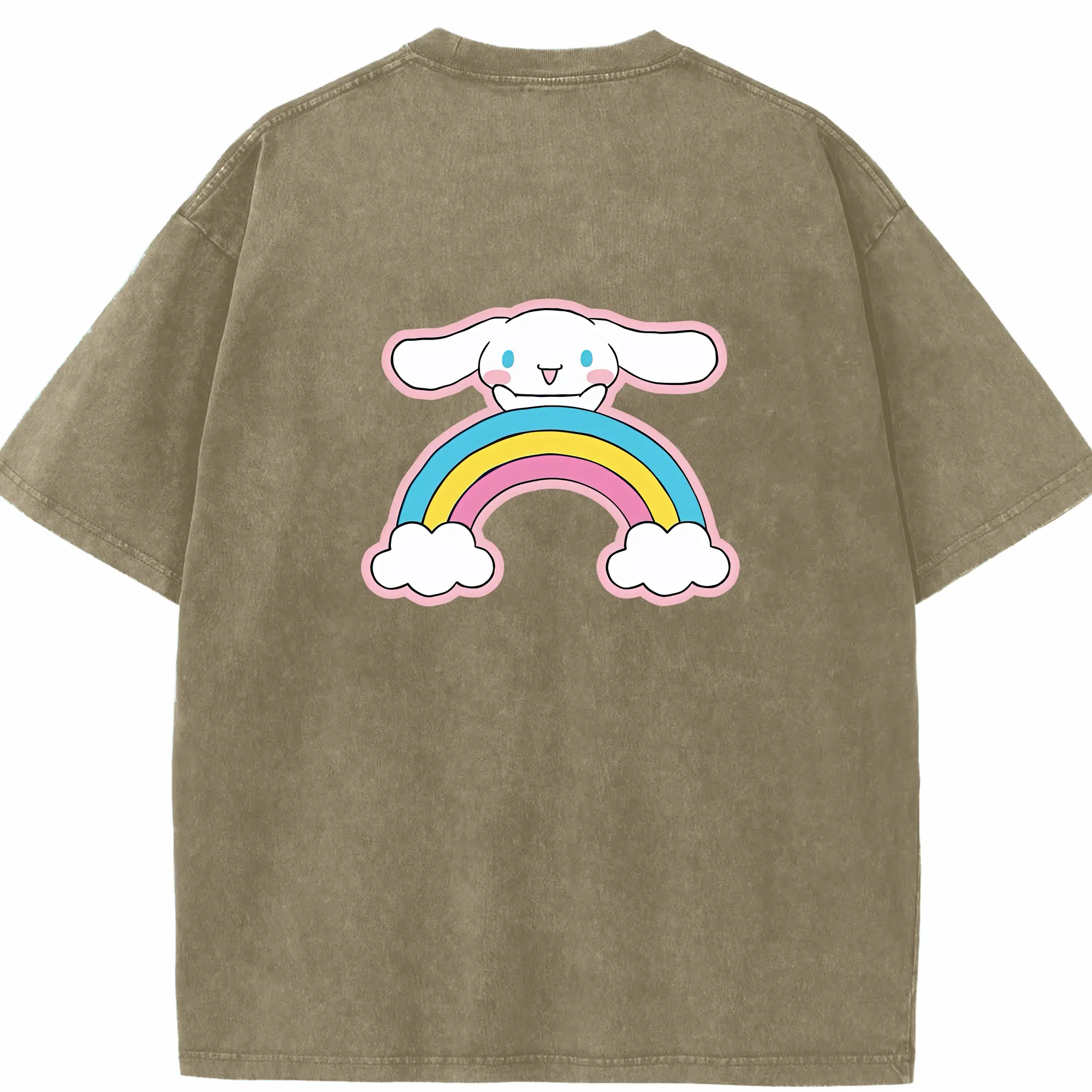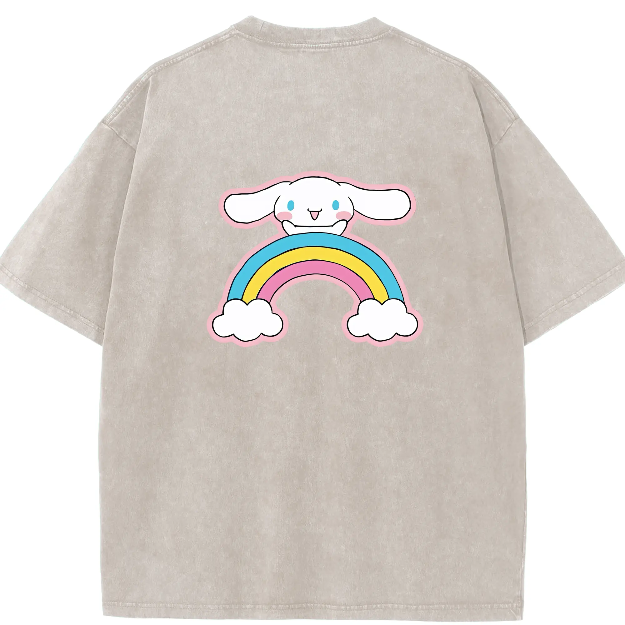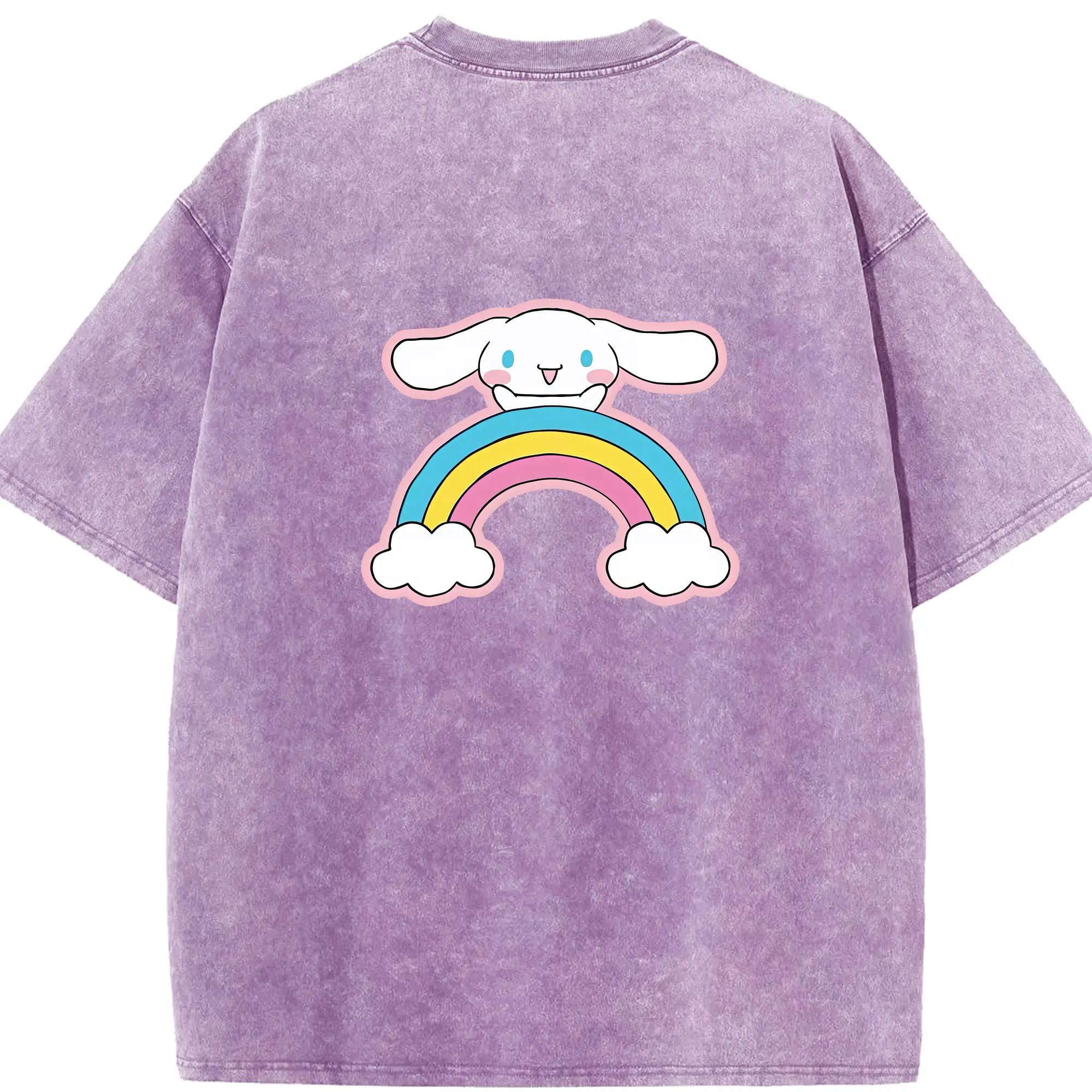 サンリオ グッズ,シナモロール - 綿100% ヴィンテージ風 半袖Tシャツ ・ フロントプリント ・ 柔らか肌触り ・ 通気性 快適 ・ スポーツ カジュアル 外出用