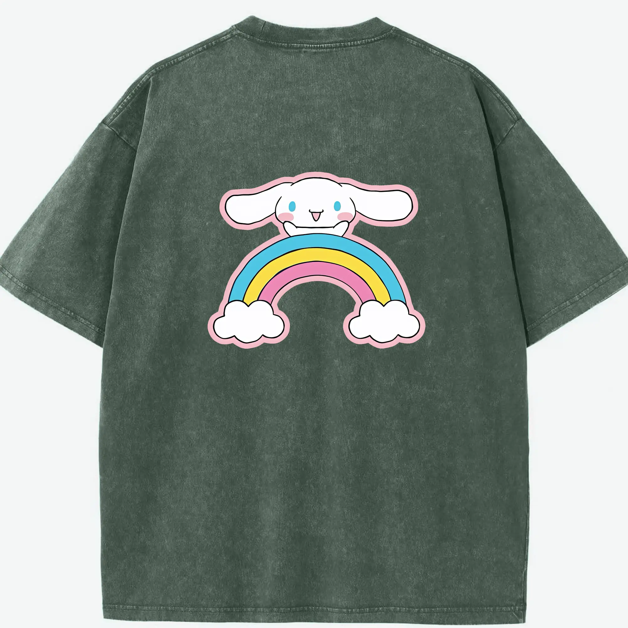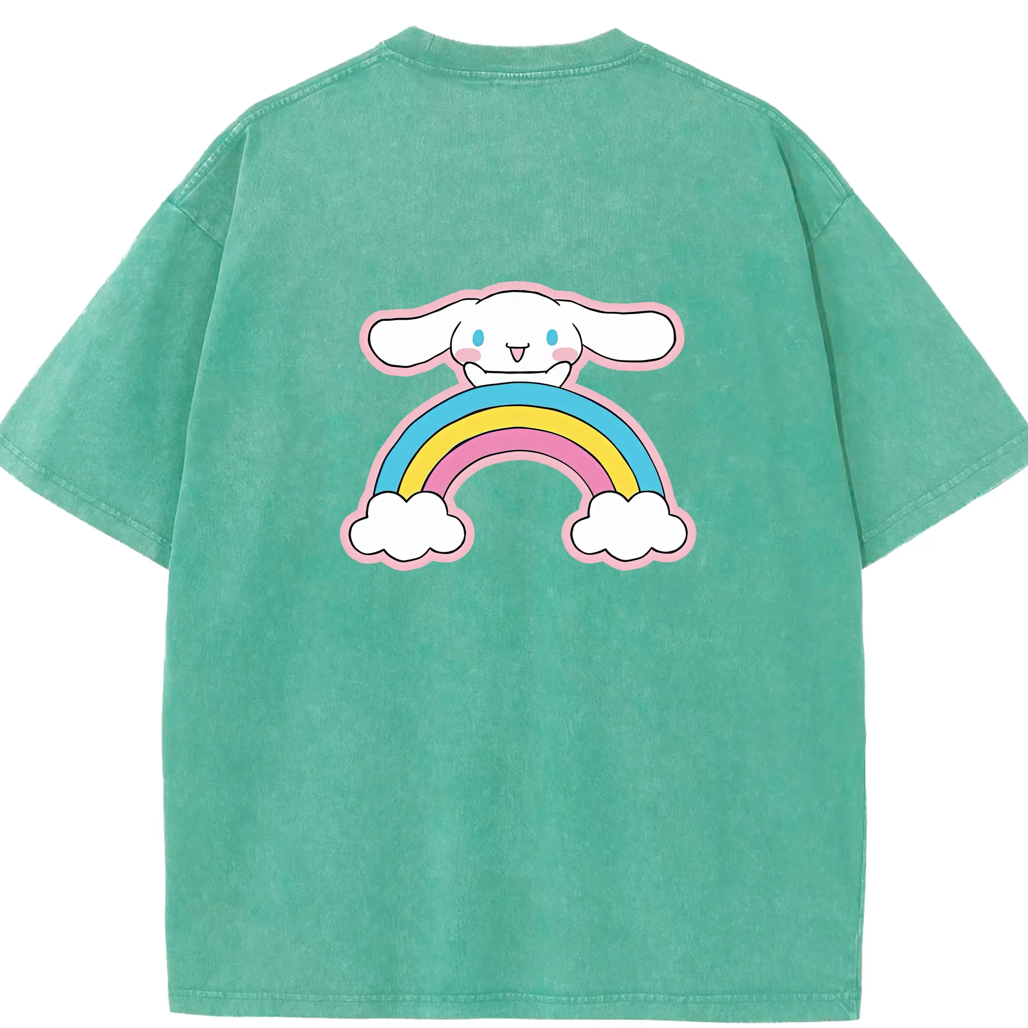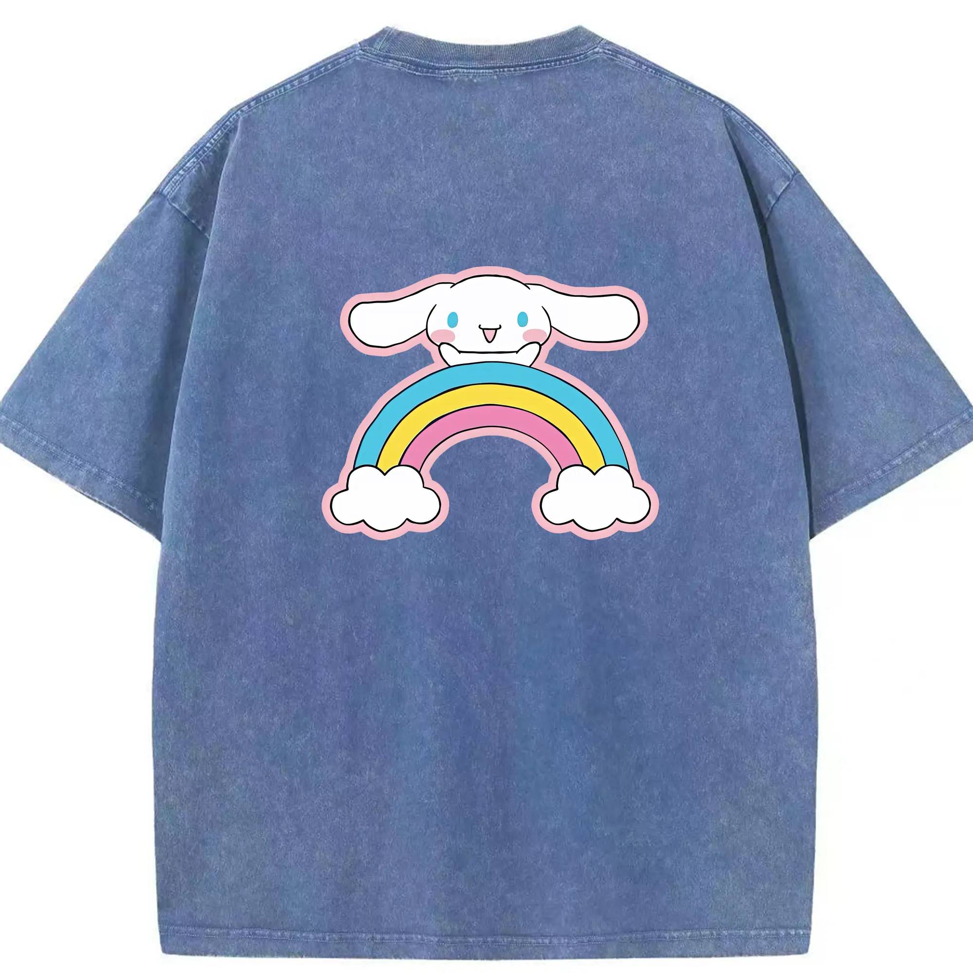 サンリオ グッズ,シナモロール - 綿100% ヴィンテージ風 半袖Tシャツ ・ フロントプリント ・ 柔らか肌触り ・ 通気性 快適 ・ スポーツ カジュアル 外出用
