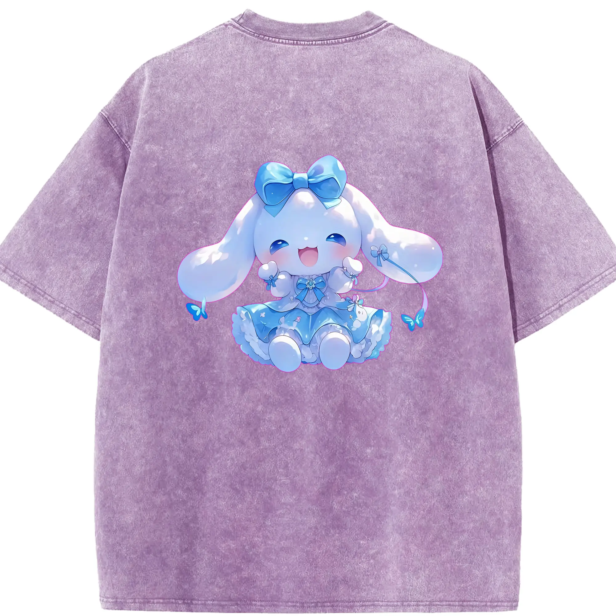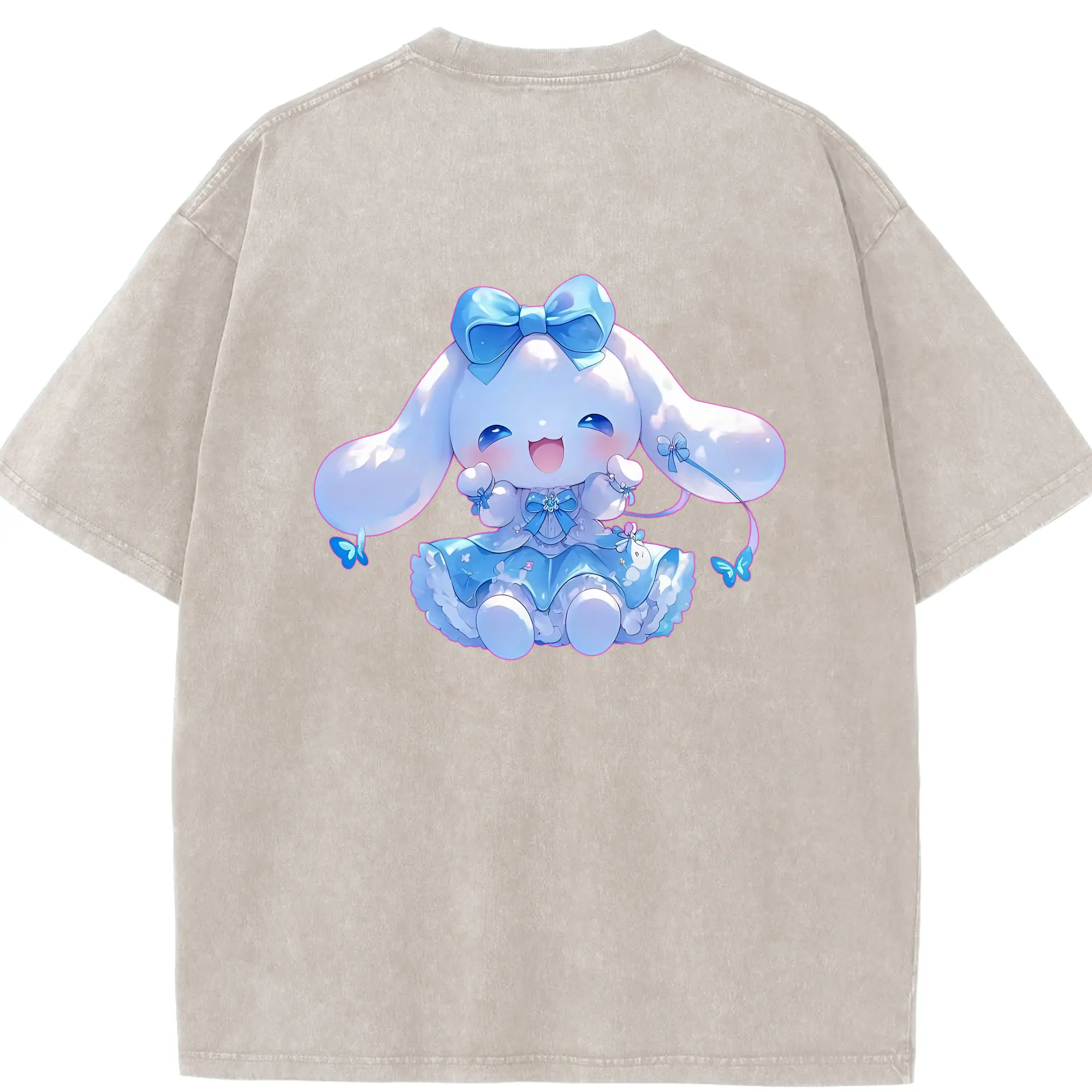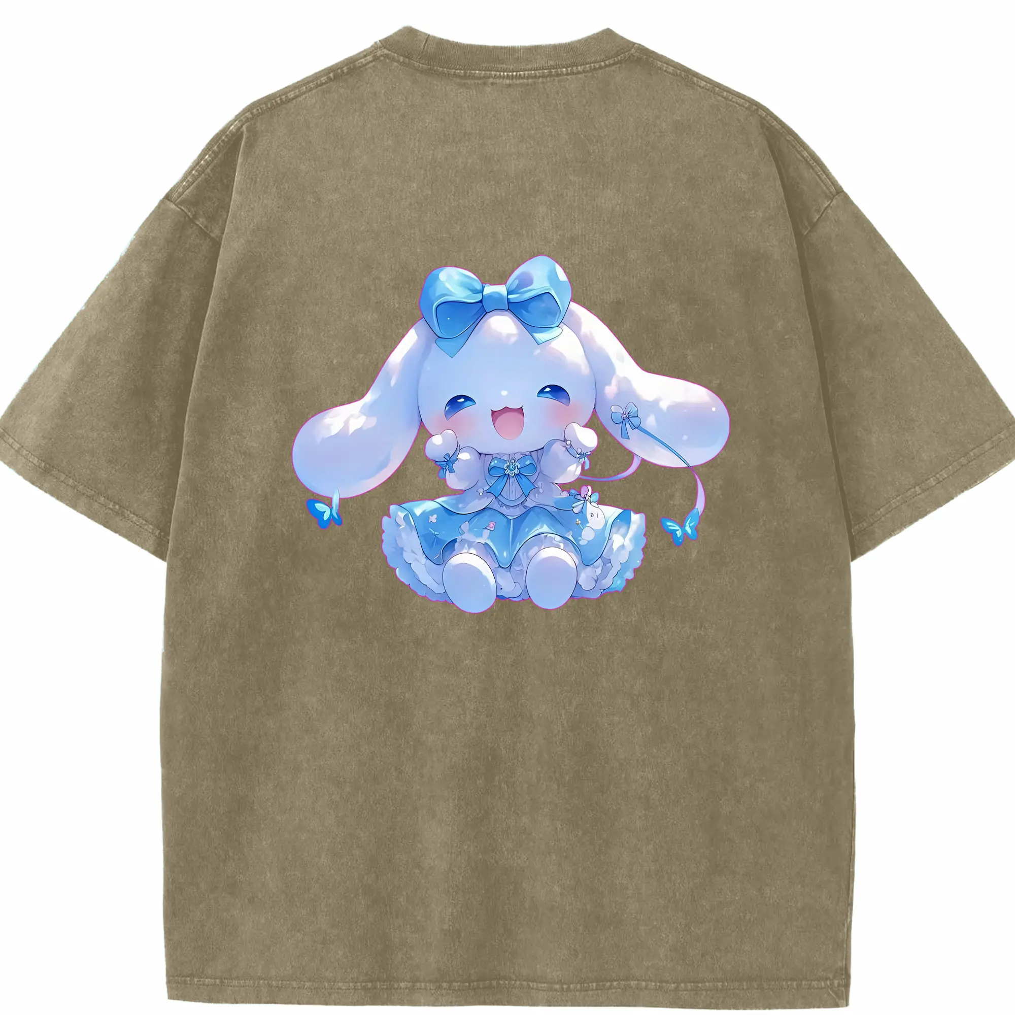 サンリオ グッズ,シナモロール - 綿100% ヴィンテージ風 半袖Tシャツ ・ フロントプリント ・ 柔らか肌触り ・ 通気性 快適 ・ スポーツ カジュアル 外出用