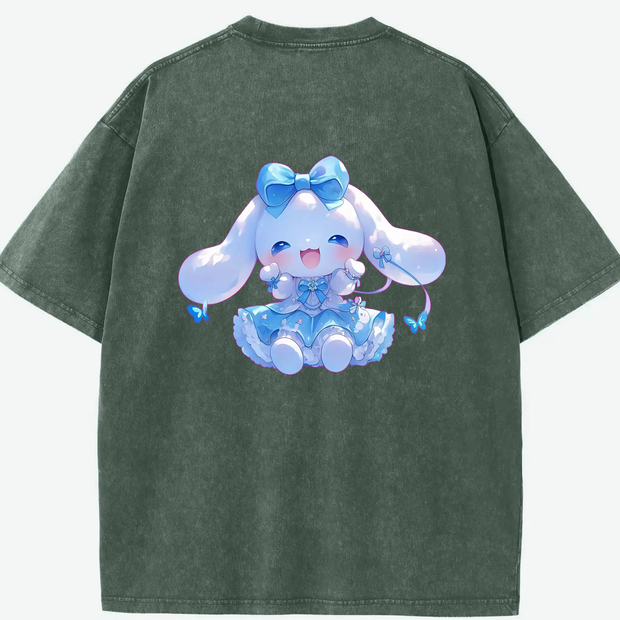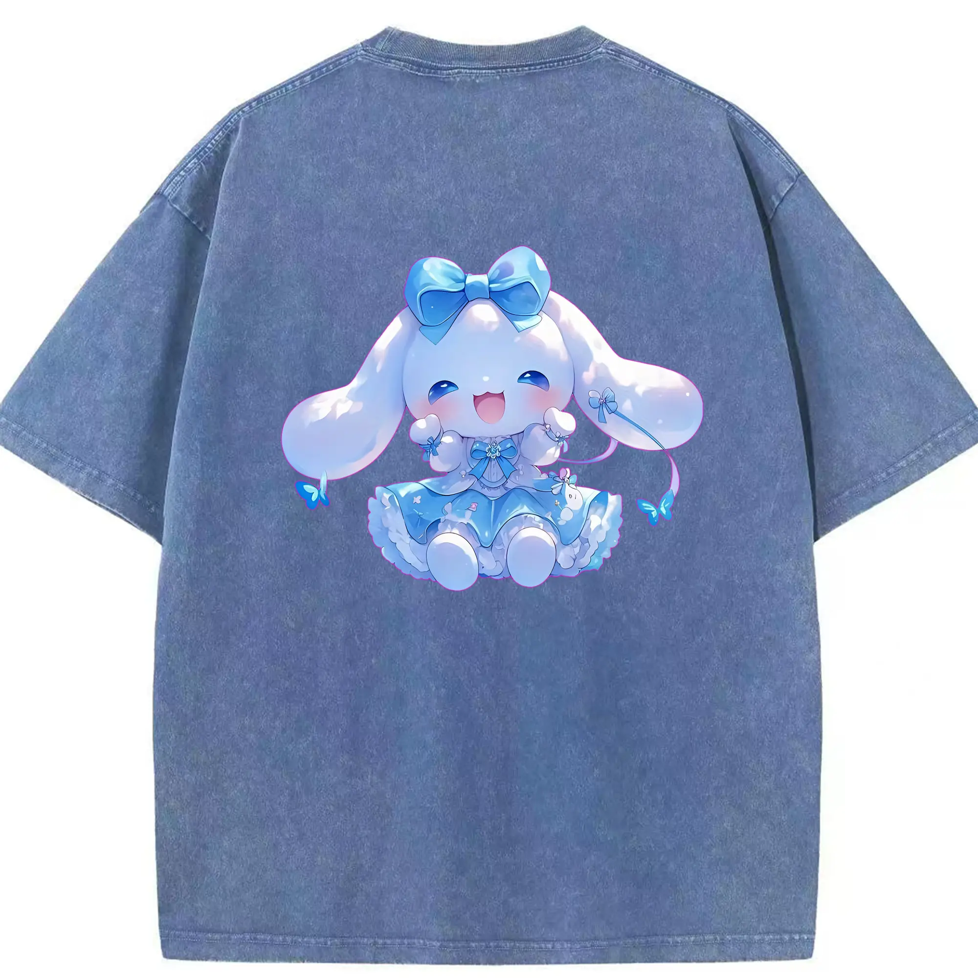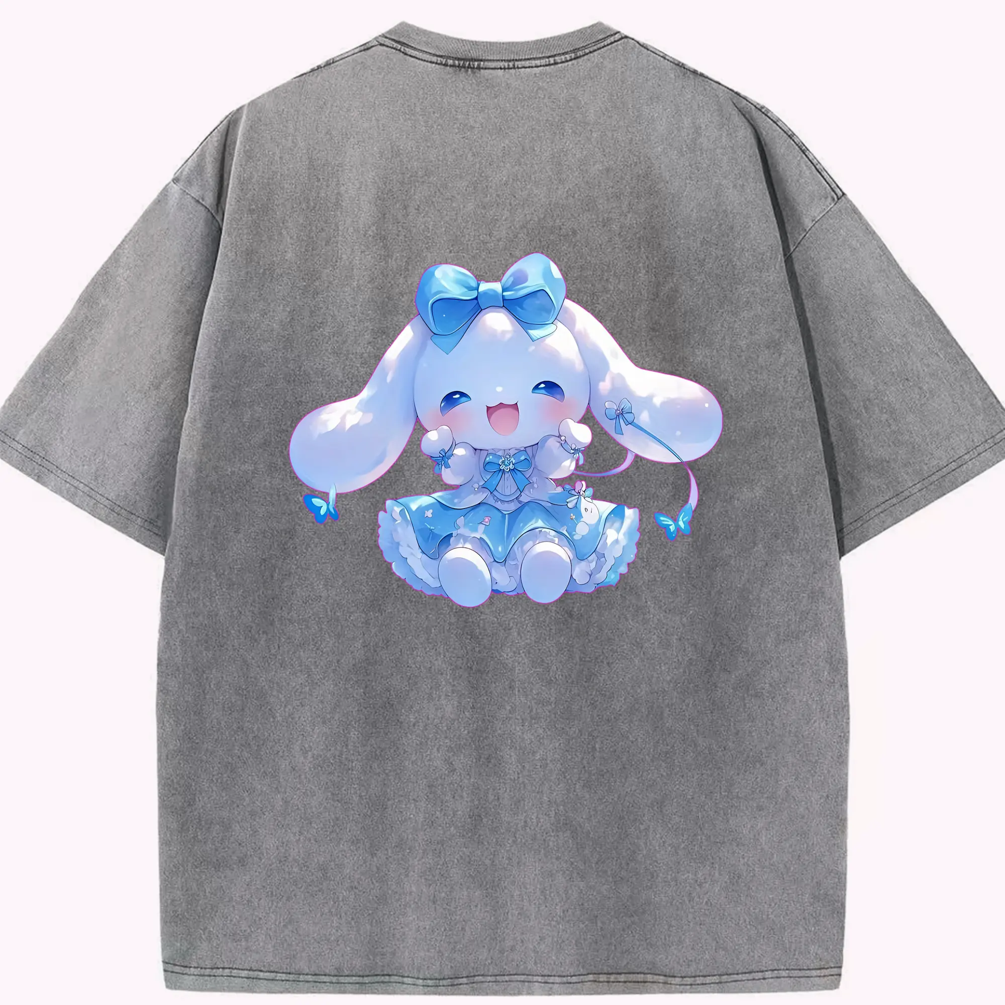サンリオ グッズ,シナモロール - 綿100% ヴィンテージ風 半袖Tシャツ ・ フロントプリント ・ 柔らか肌触り ・ 通気性 快適 ・ スポーツ カジュアル 外出用