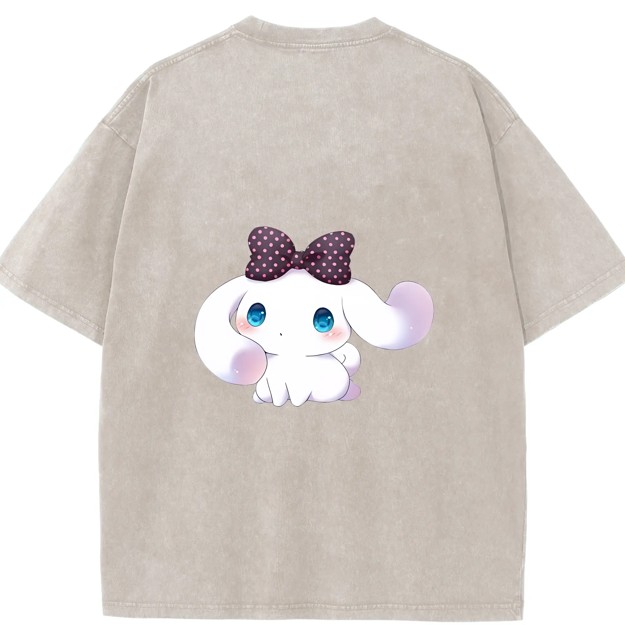 サンリオ グッズ,シナモロール - 綿100% ヴィンテージ風 半袖Tシャツ ・ フロントプリント ・ 柔らか肌触り ・ 通気性 快適 ・ スポーツ カジュアル 外出用