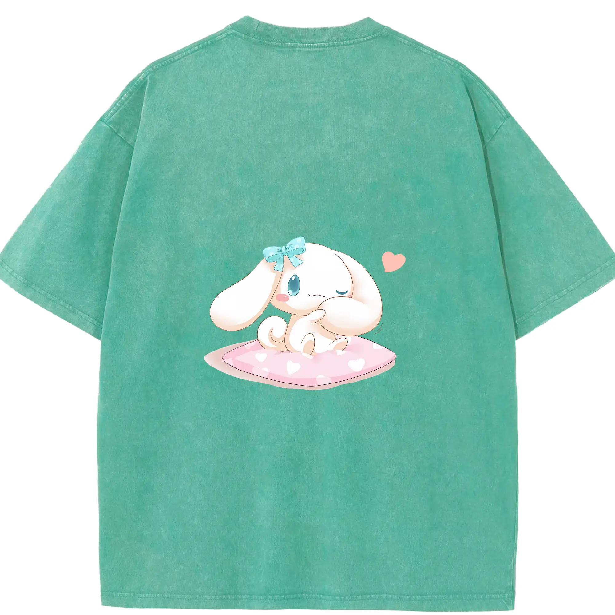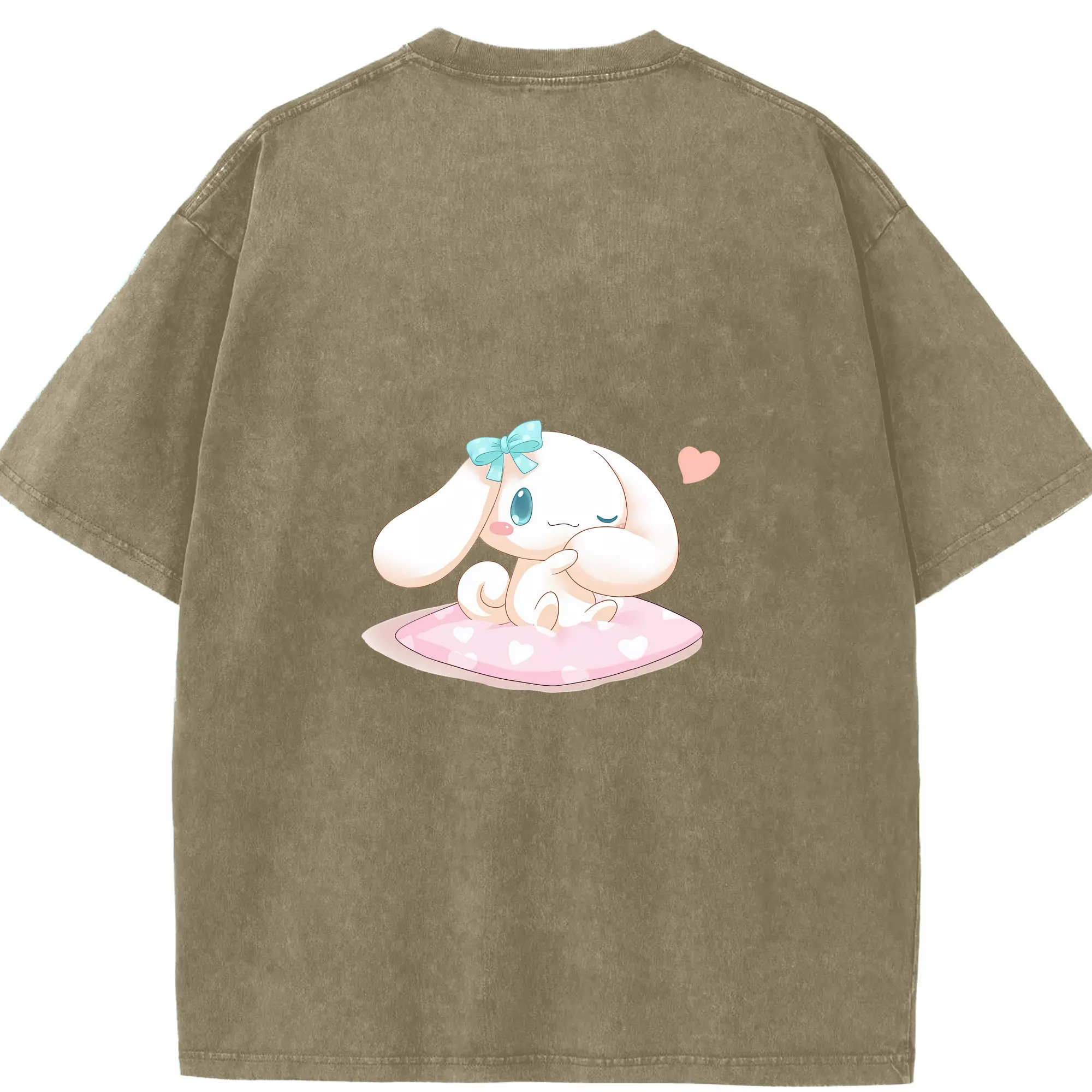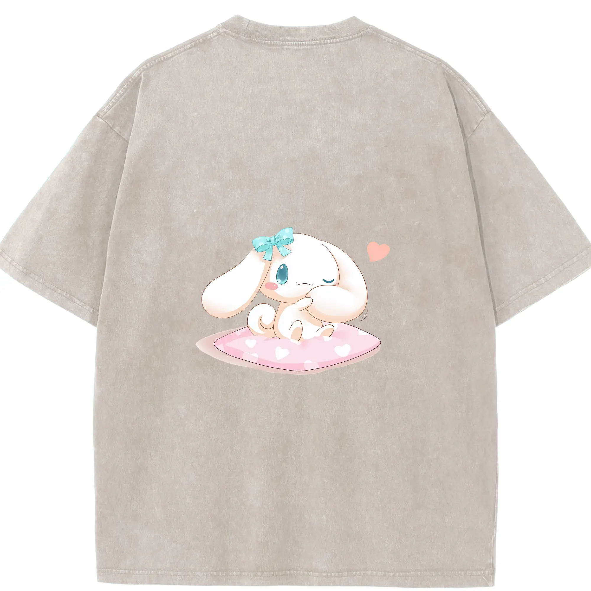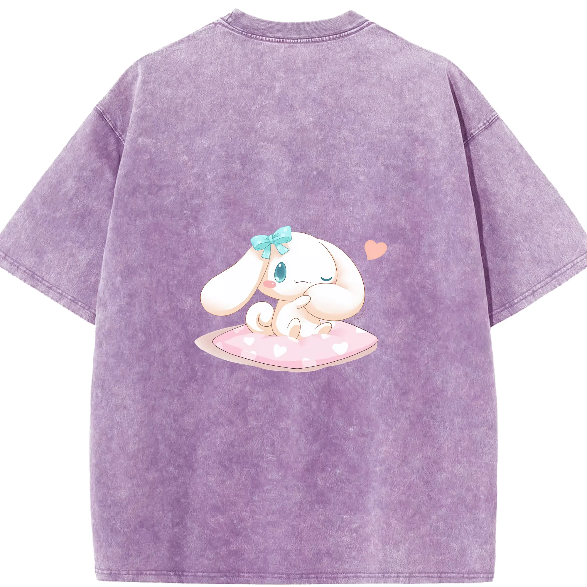 サンリオ グッズ,シナモロール - 綿100% ヴィンテージ風 半袖Tシャツ ・ フロントプリント ・ 柔らか肌触り ・ 通気性 快適 ・ スポーツ カジュアル 外出用