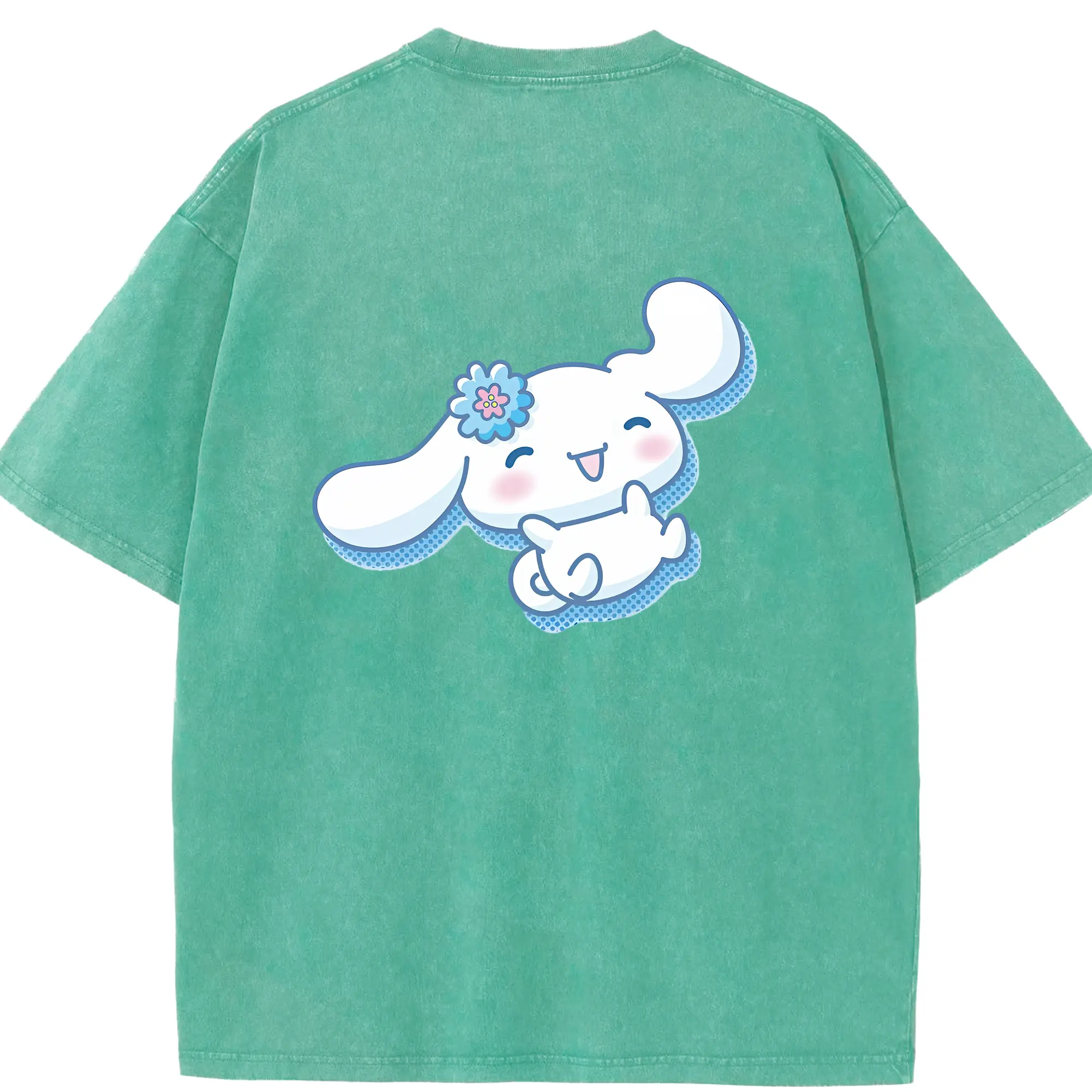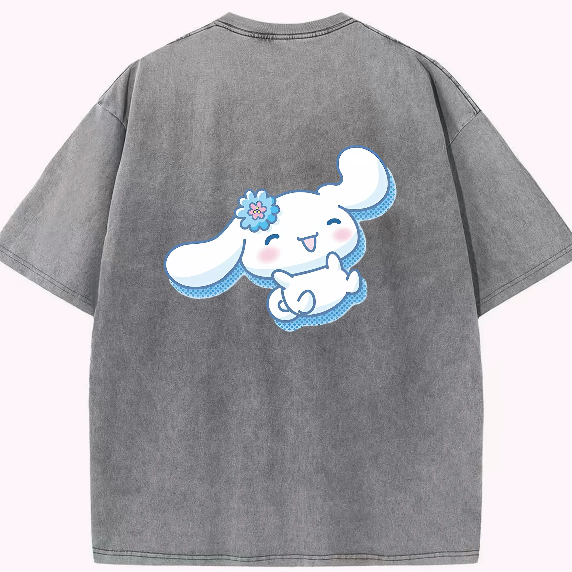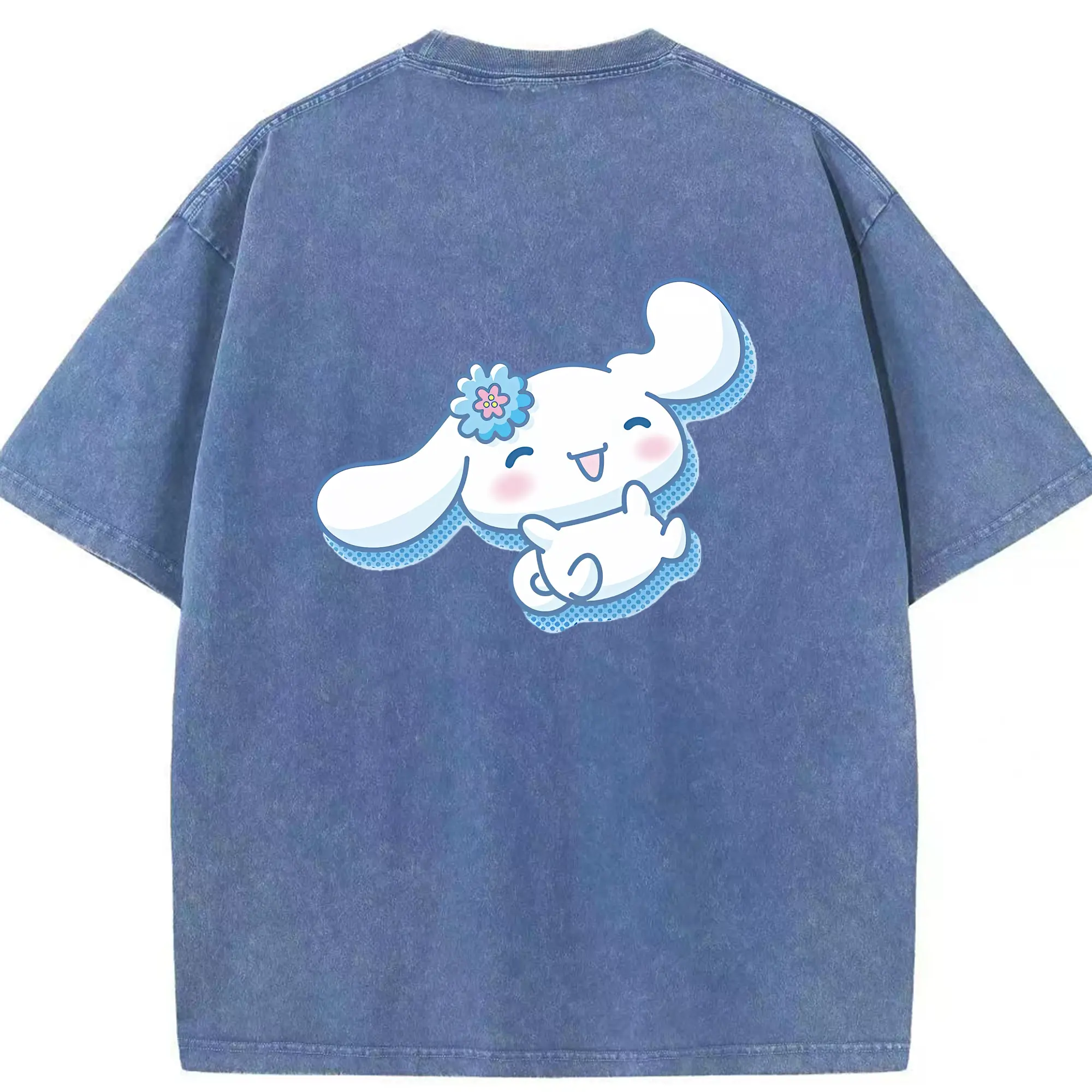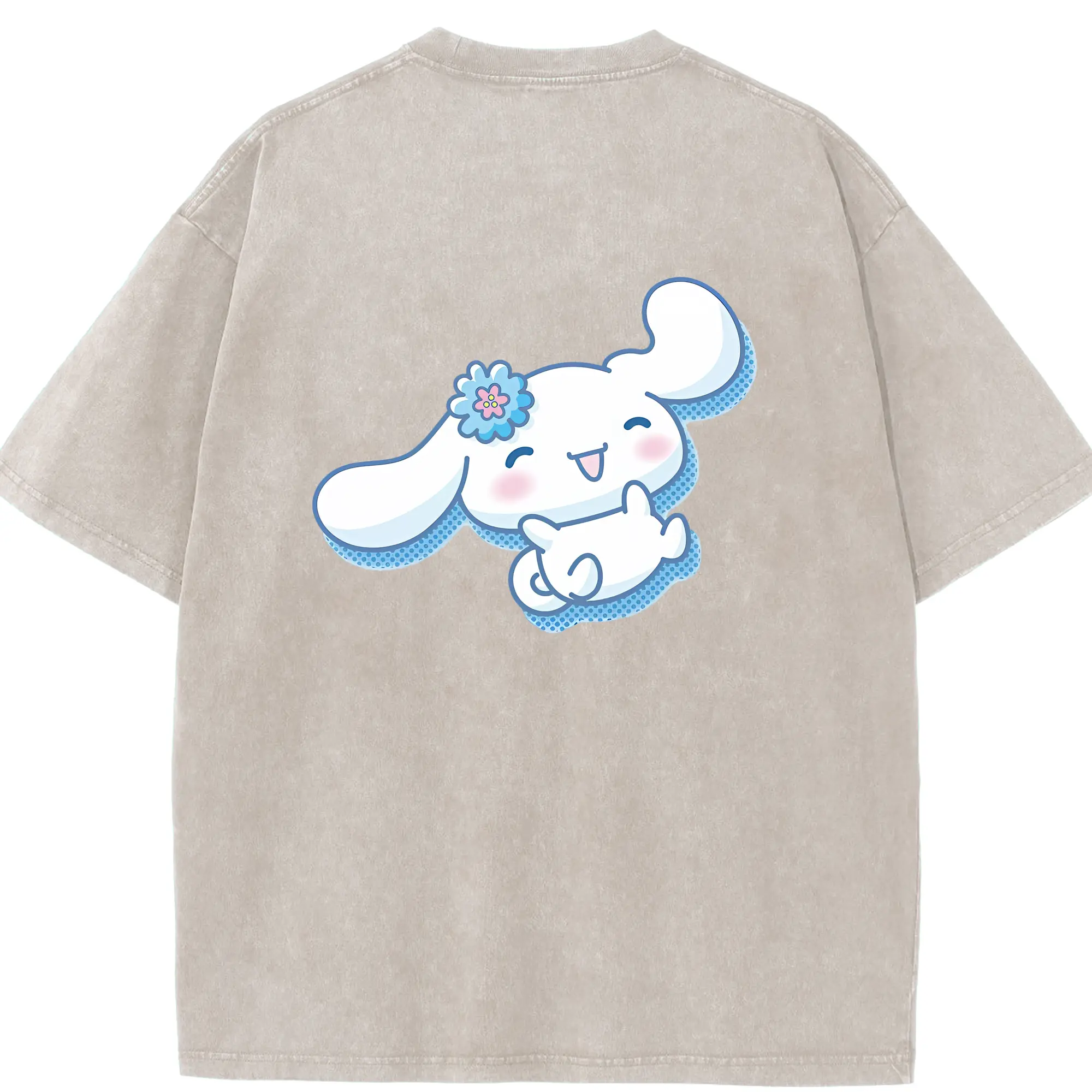 サンリオ グッズ,シナモロール - 綿100% ヴィンテージ風 半袖Tシャツ ・ フロントプリント ・ 柔らか肌触り ・ 通気性 快適 ・ スポーツ カジュアル 外出用