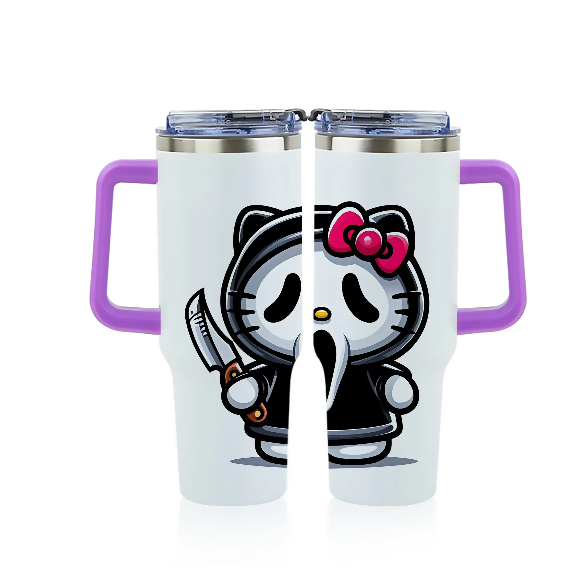 サンリオ グッズ,ハローキティ - 1200mL フルプリント車用タンブラー ・ 304ステンレス 内側 ・ 201ステンレス 外側 ・ 保温 保冷 ・ 通勤 ドライブ アウトドア用