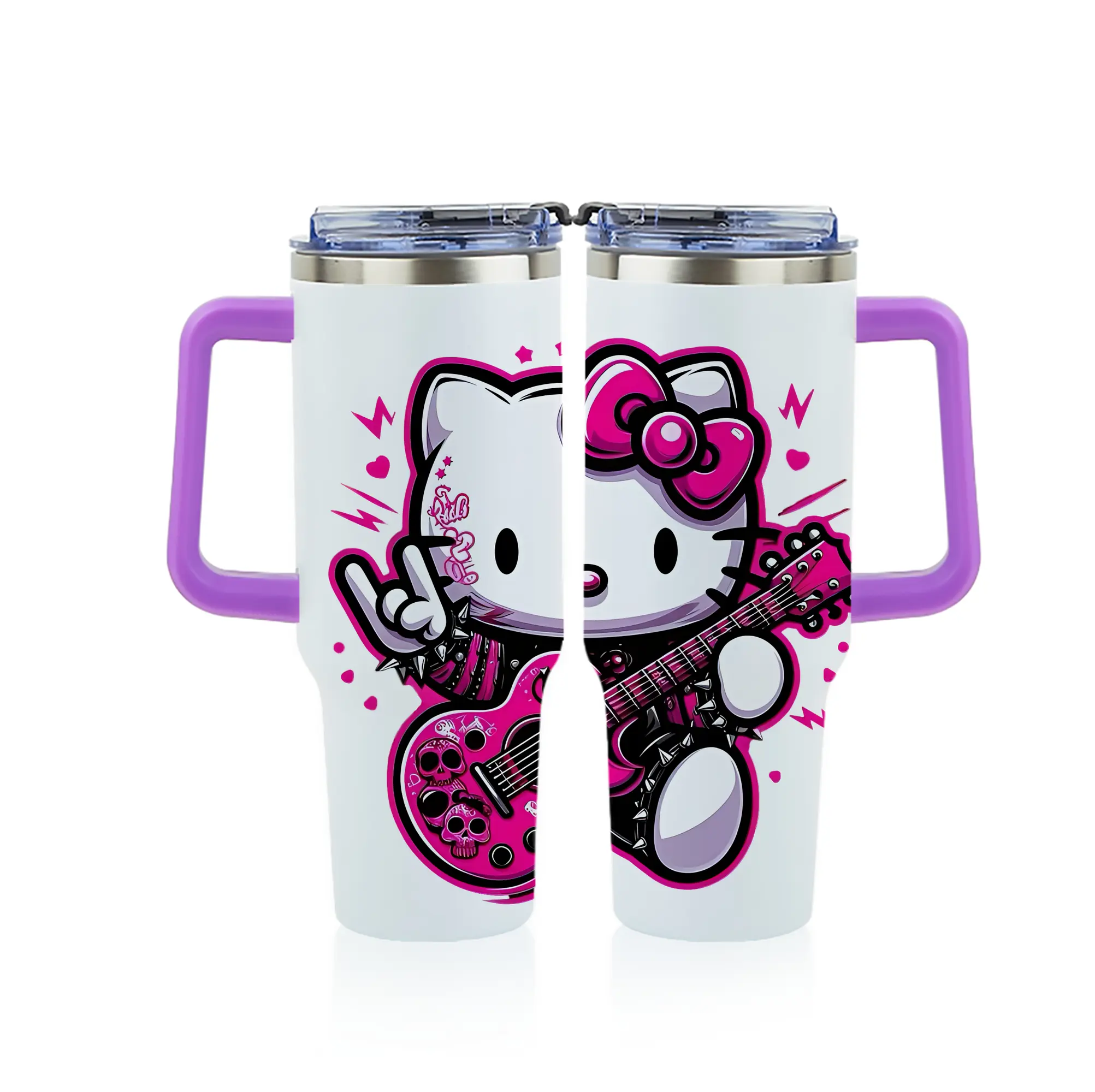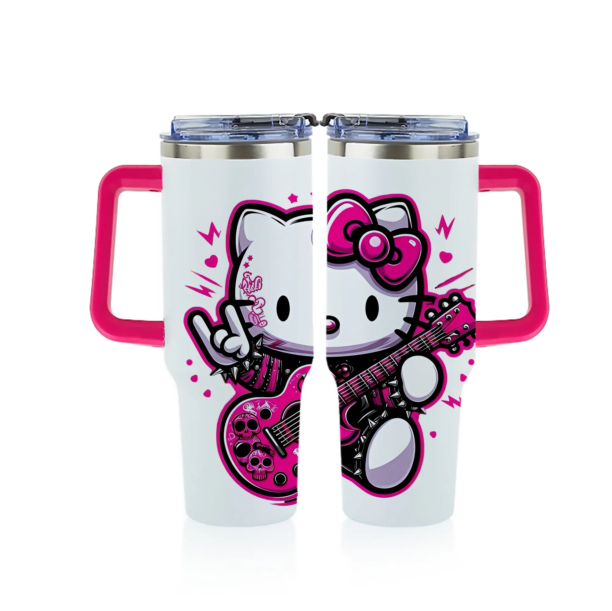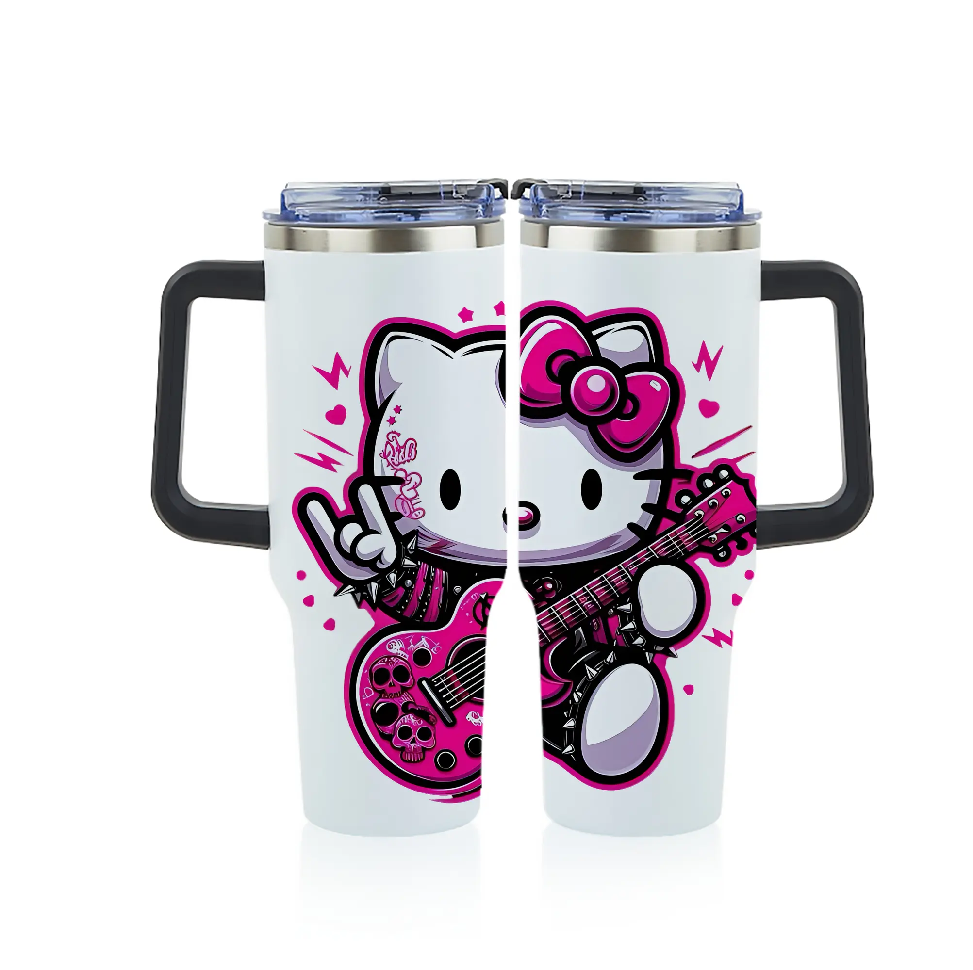 サンリオ グッズ,ハローキティ - 1200mL フルプリント車用タンブラー ・ 304ステンレス 内側 ・ 201ステンレス 外側 ・ 保温 保冷 ・ 通勤 ドライブ アウトドア用