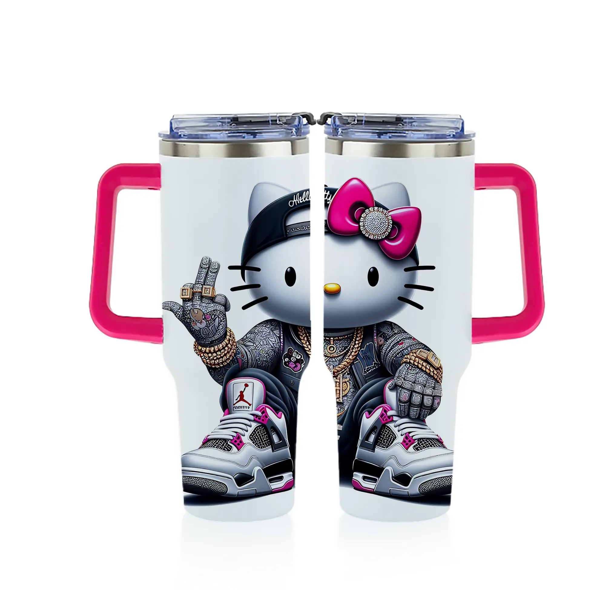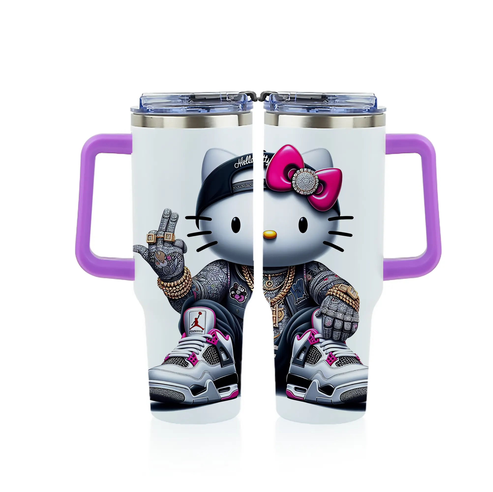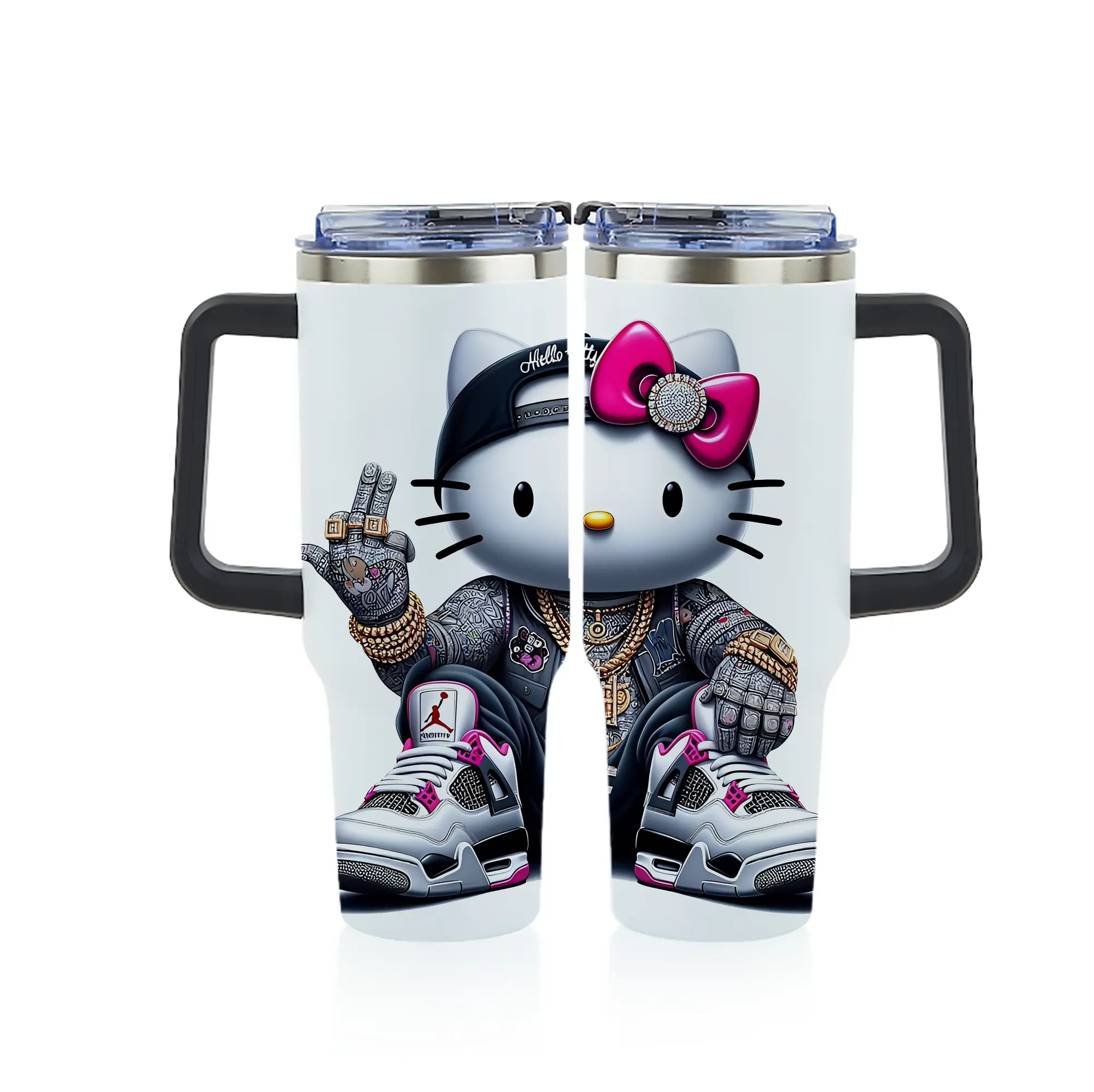 サンリオ グッズ,ハローキティ - 1200mL フルプリント車用タンブラー ・ 304ステンレス 内側 ・ 201ステンレス 外側 ・ 保温 保冷 ・ 通勤 ドライブ アウトドア用