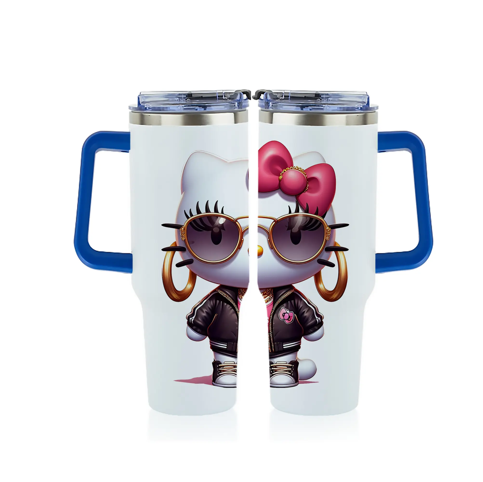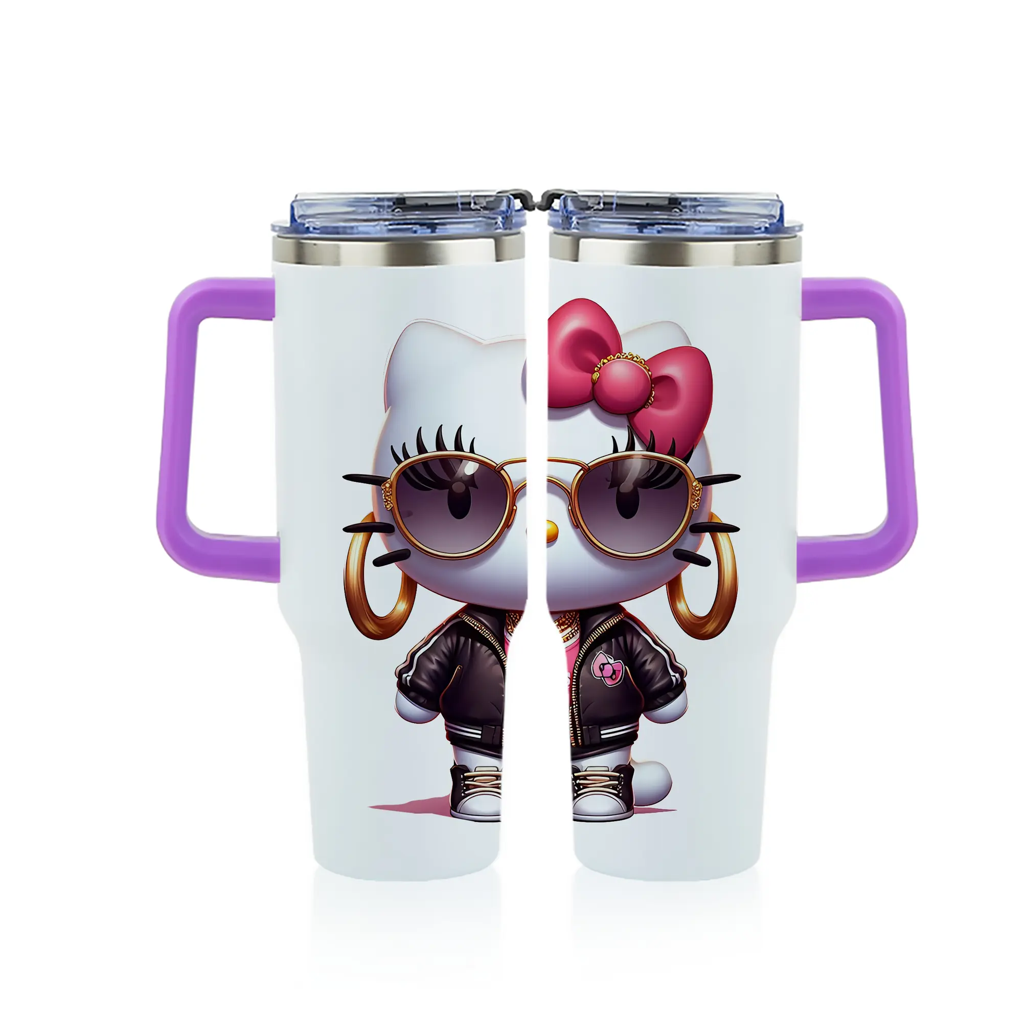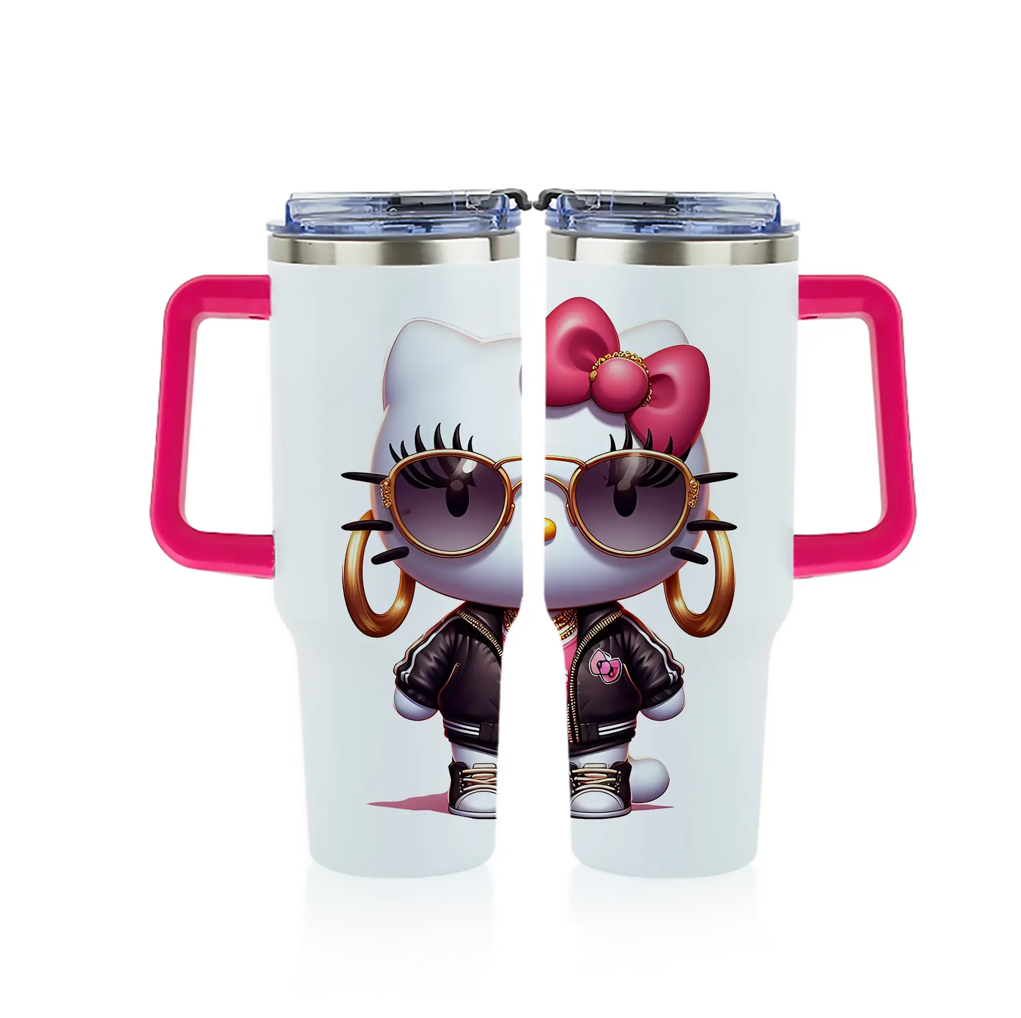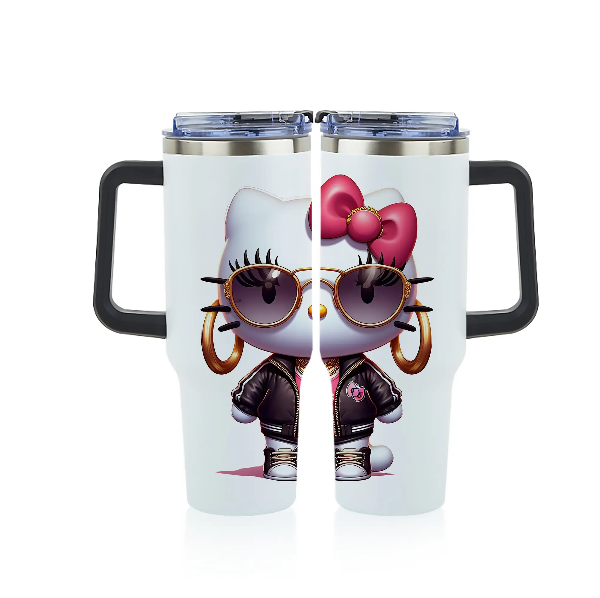 サンリオ グッズ,ハローキティ - 1200mL フルプリント車用タンブラー ・ 304ステンレス 内側 ・ 201ステンレス 外側 ・ 保温 保冷 ・ 通勤 ドライブ アウトドア用
