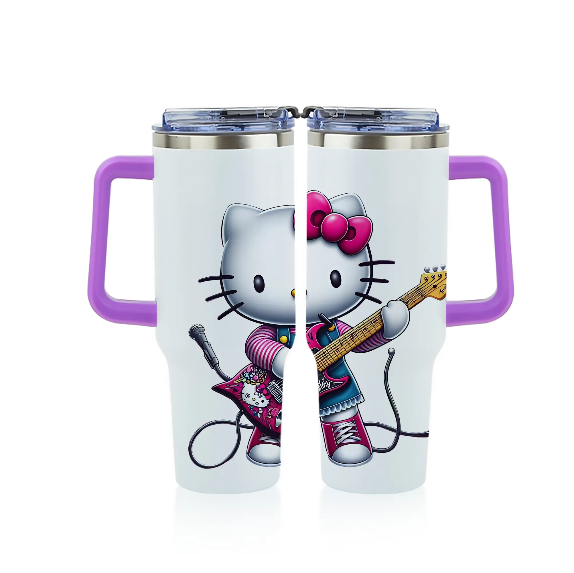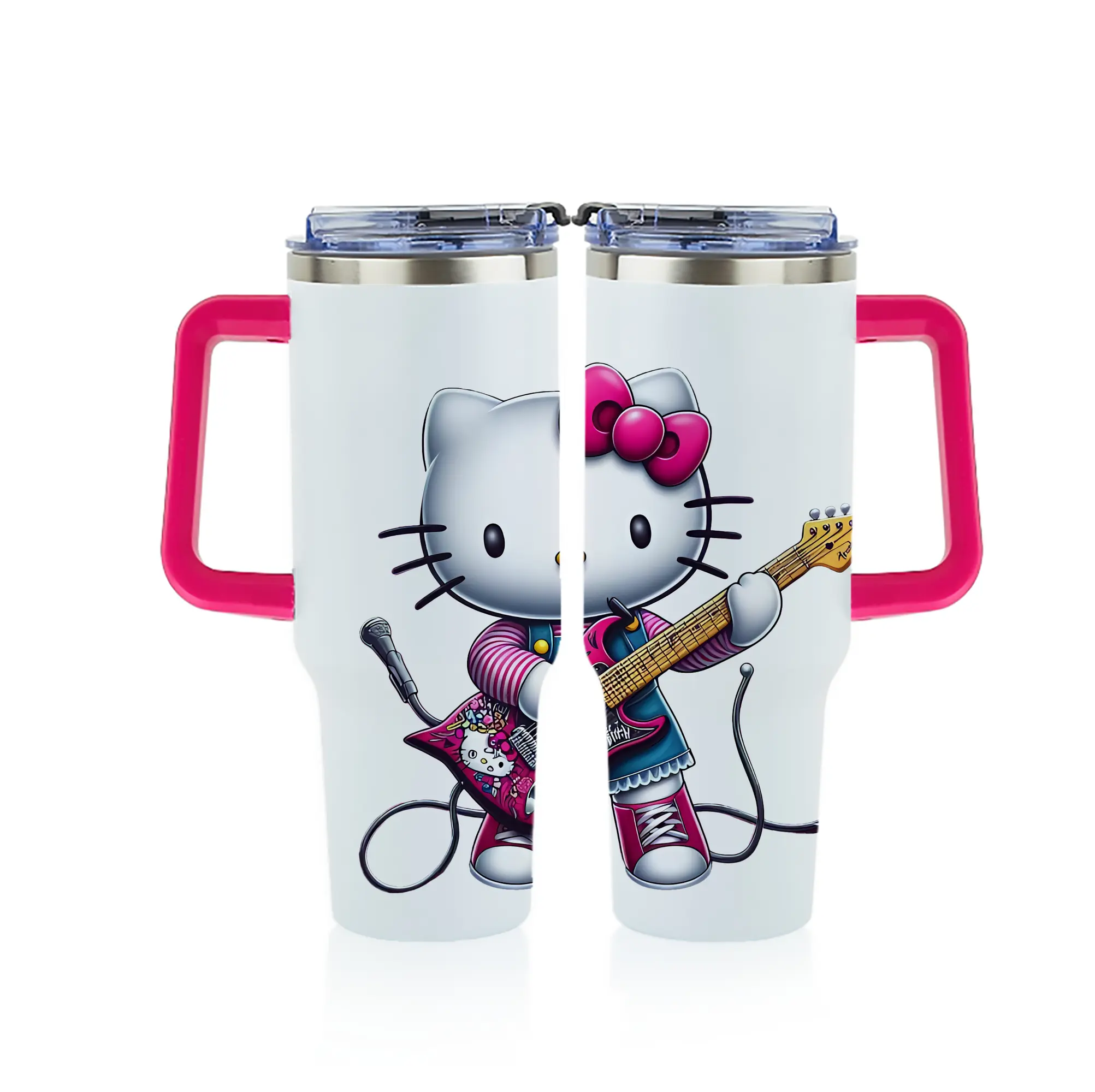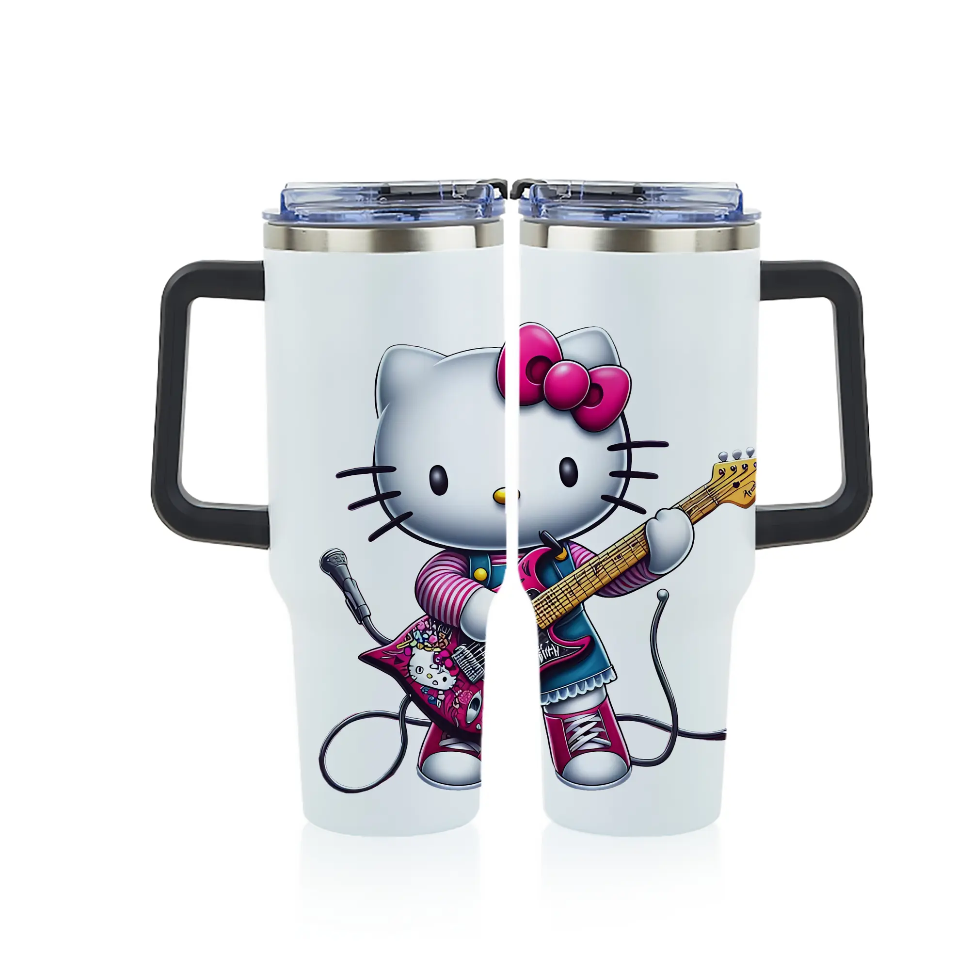 サンリオ グッズ,ハローキティ - 1200mL フルプリント車用タンブラー ・ 304ステンレス 内側 ・ 201ステンレス 外側 ・ 保温 保冷 ・ 通勤 ドライブ アウトドア用