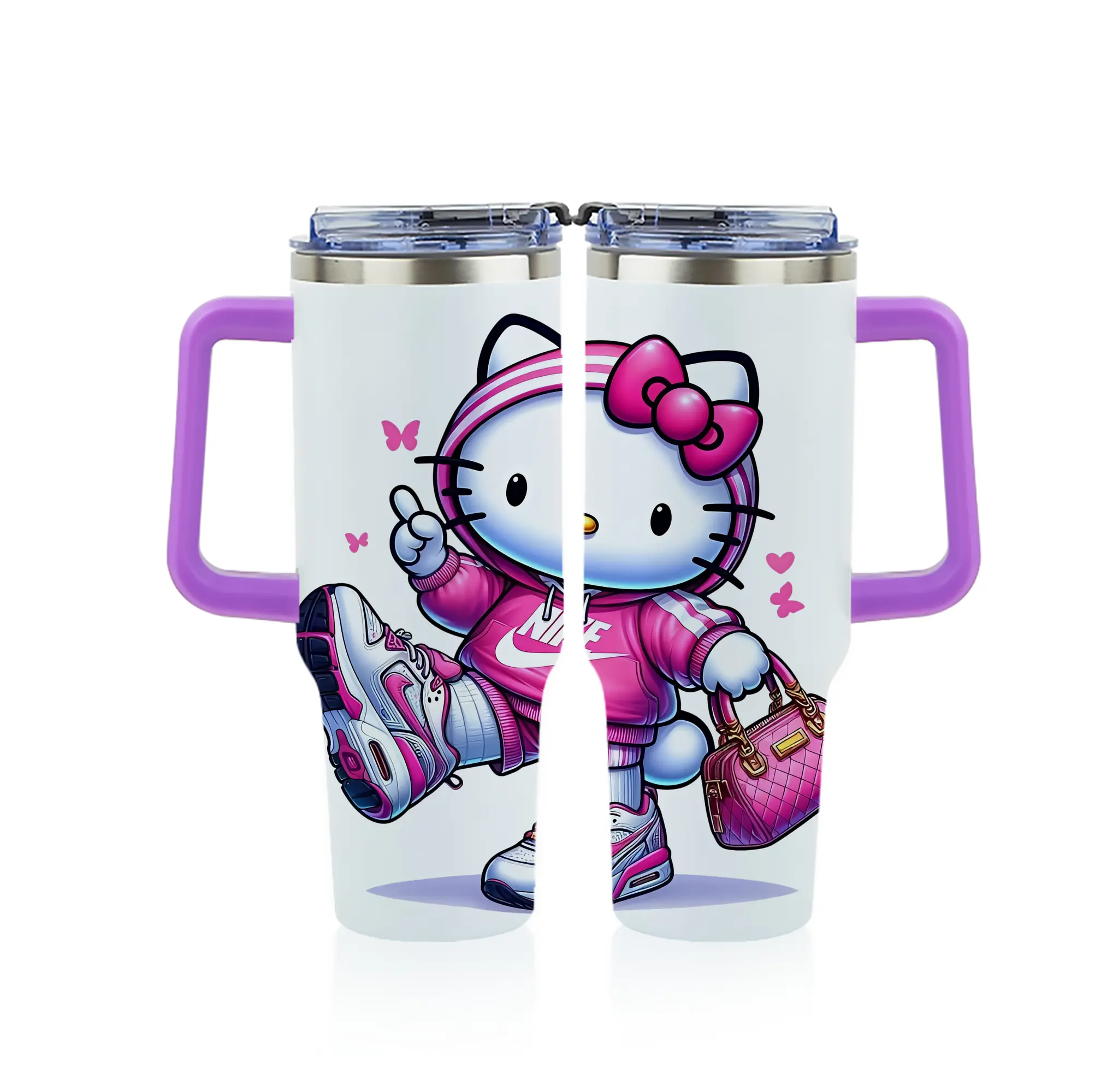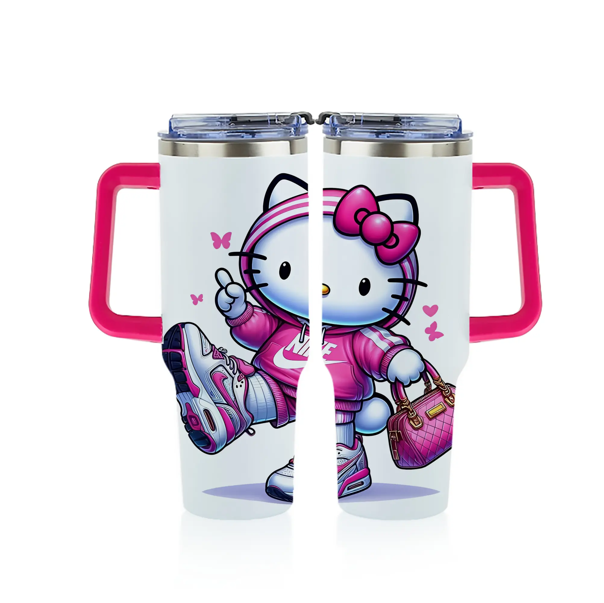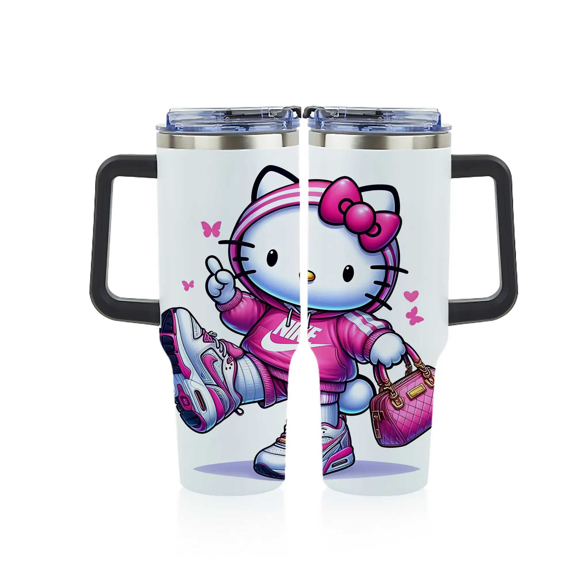 サンリオ グッズ,ハローキティ - 1200mL フルプリント車用タンブラー ・ 304ステンレス 内側 ・ 201ステンレス 外側 ・ 保温 保冷 ・ 通勤 ドライブ アウトドア用