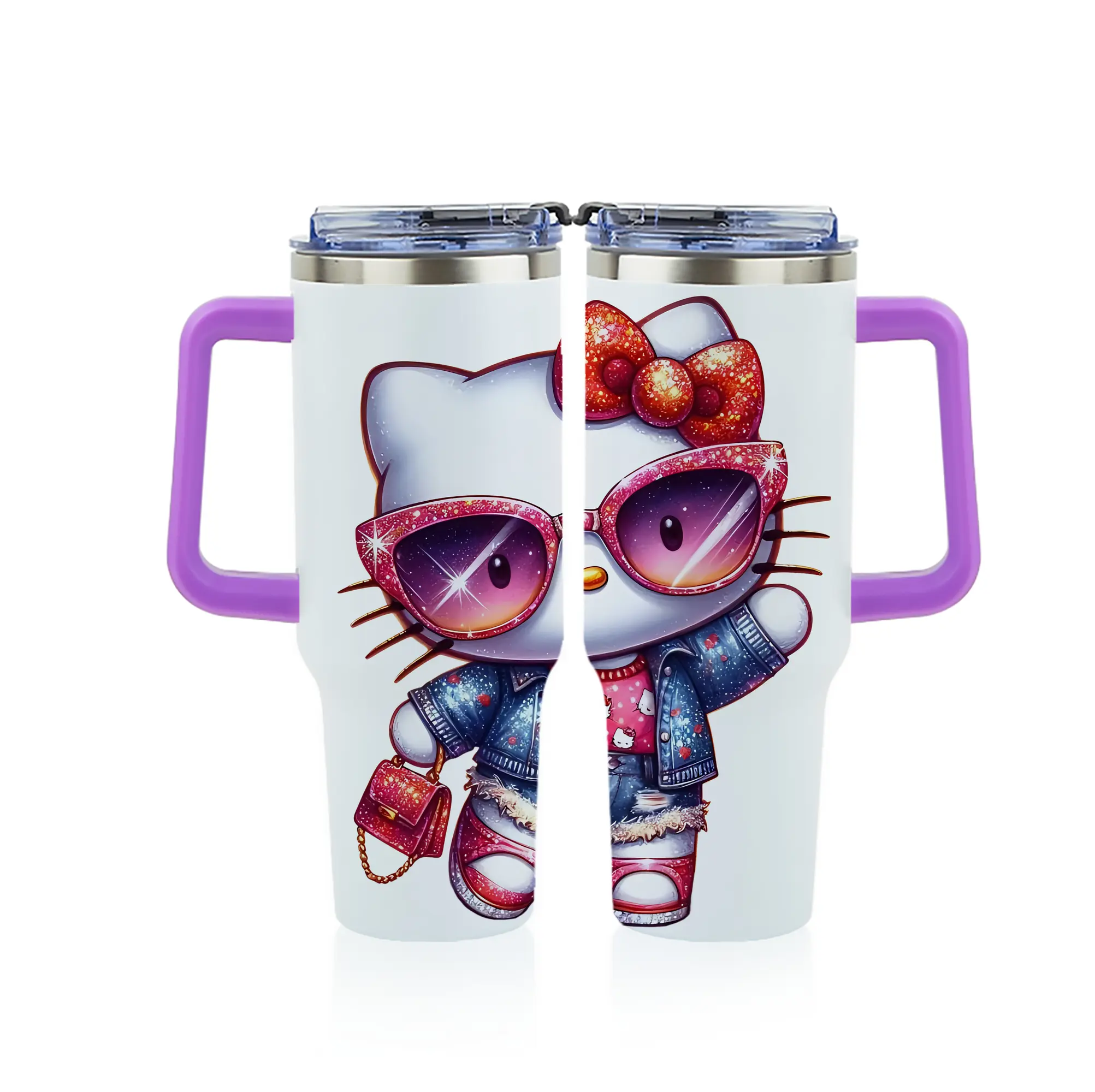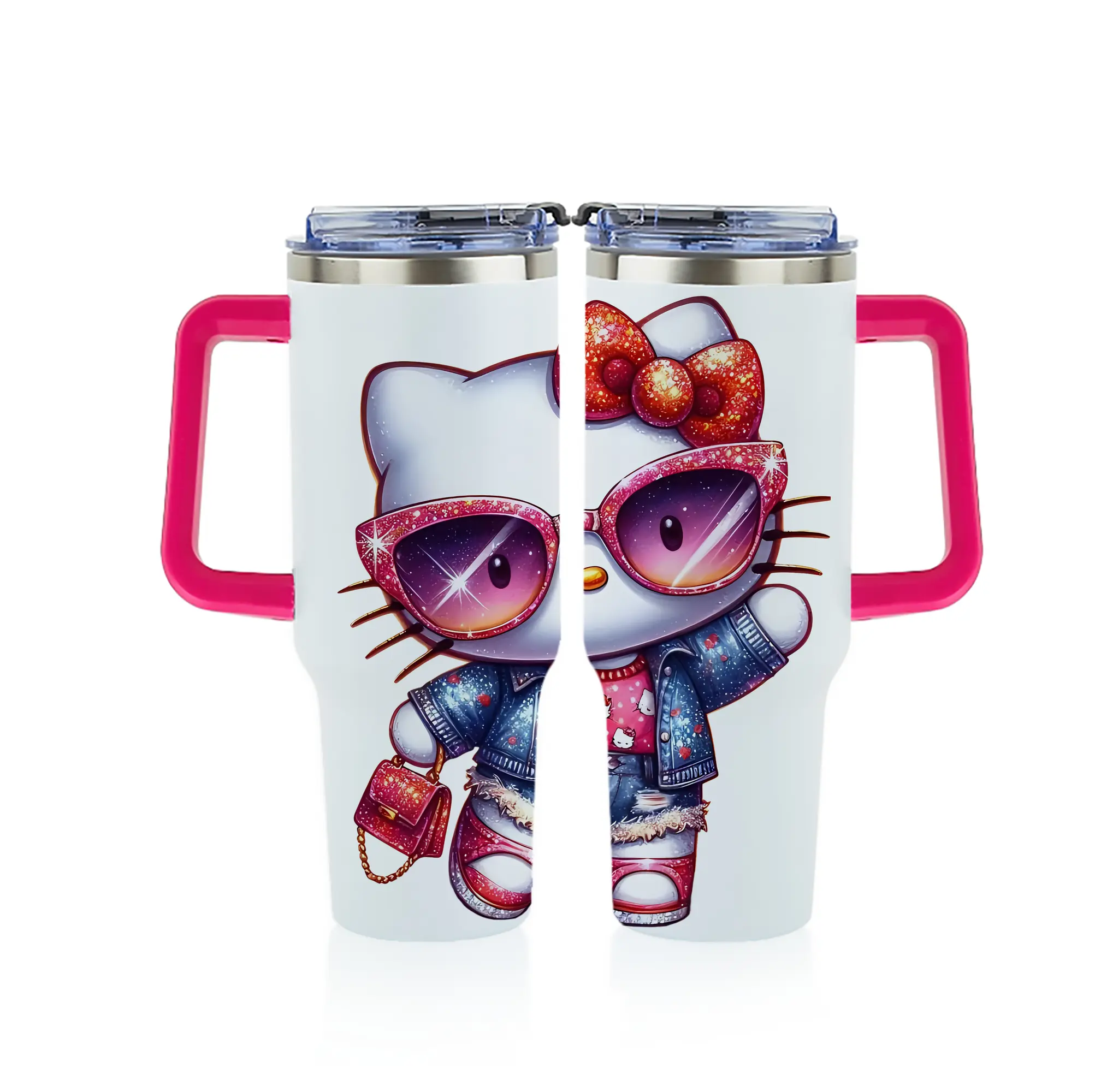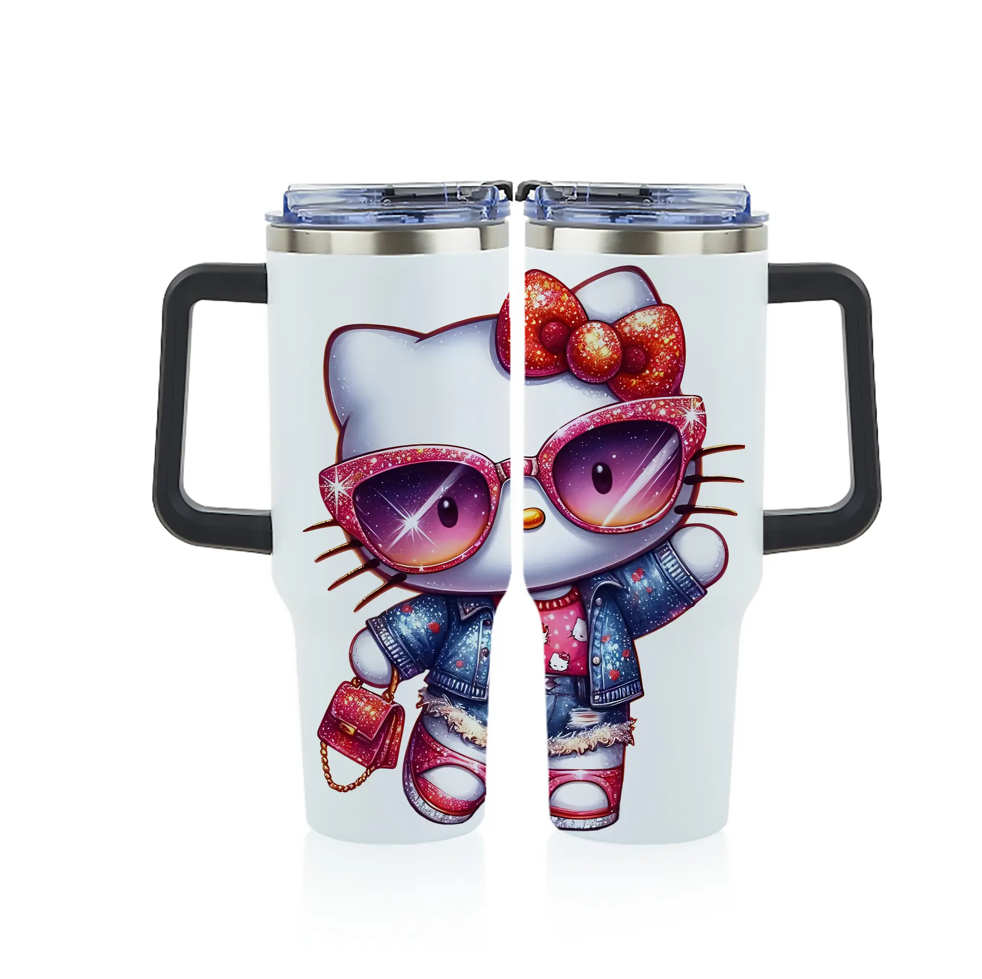 サンリオ グッズ,ハローキティ - 1200mL フルプリント車用タンブラー ・ 304ステンレス 内側 ・ 201ステンレス 外側 ・ 保温 保冷 ・ 通勤 ドライブ アウトドア用