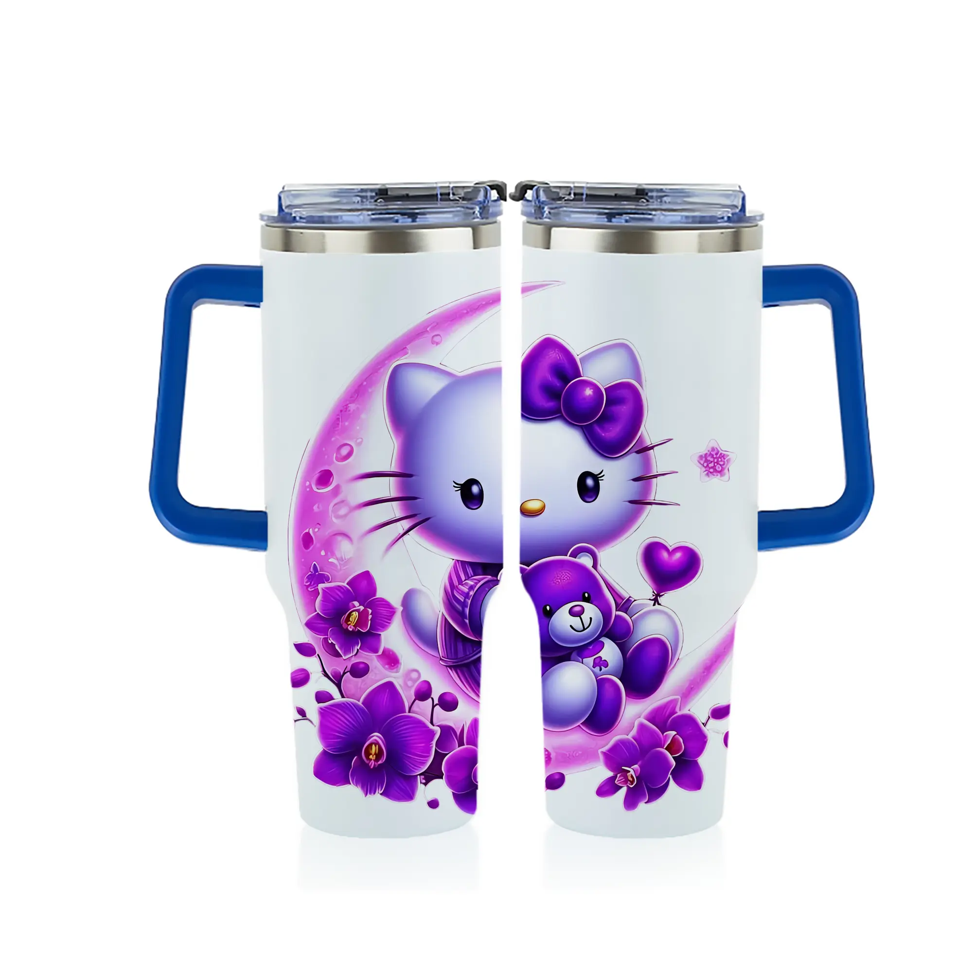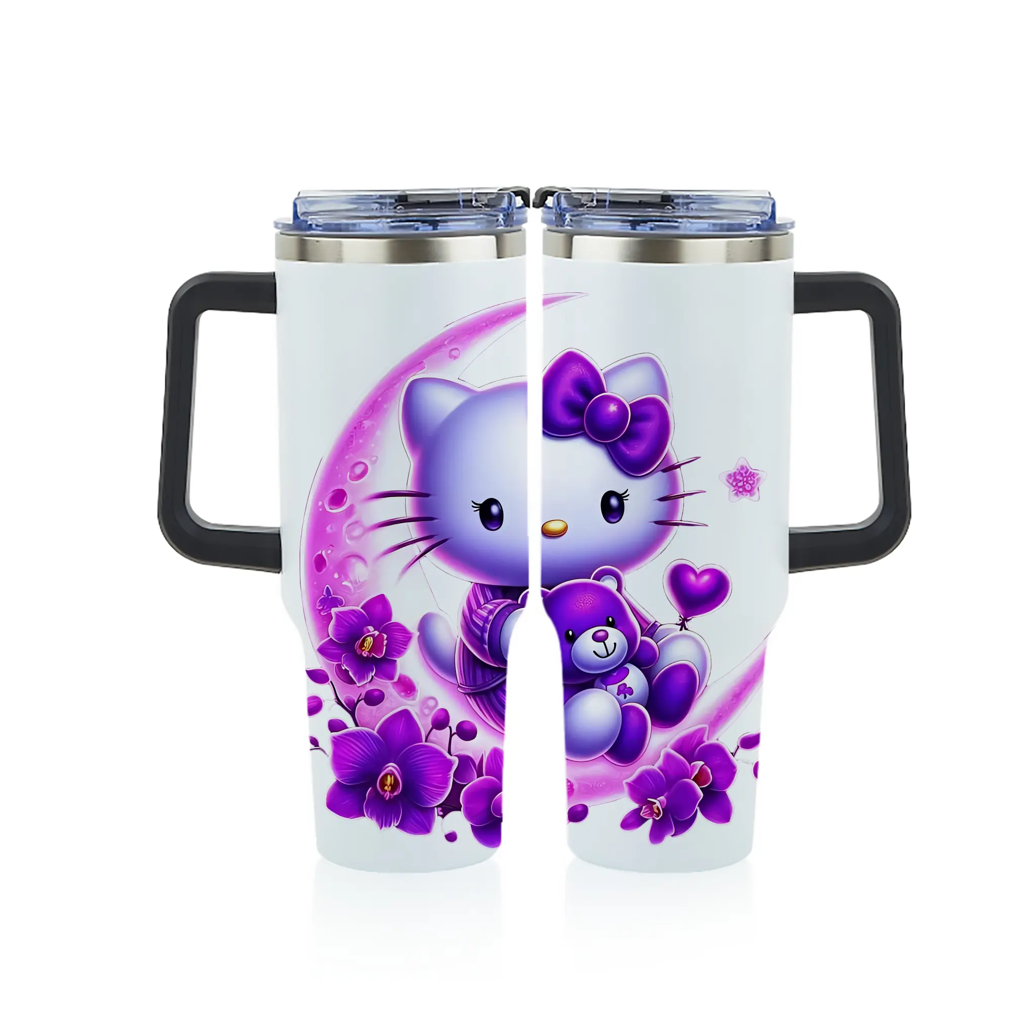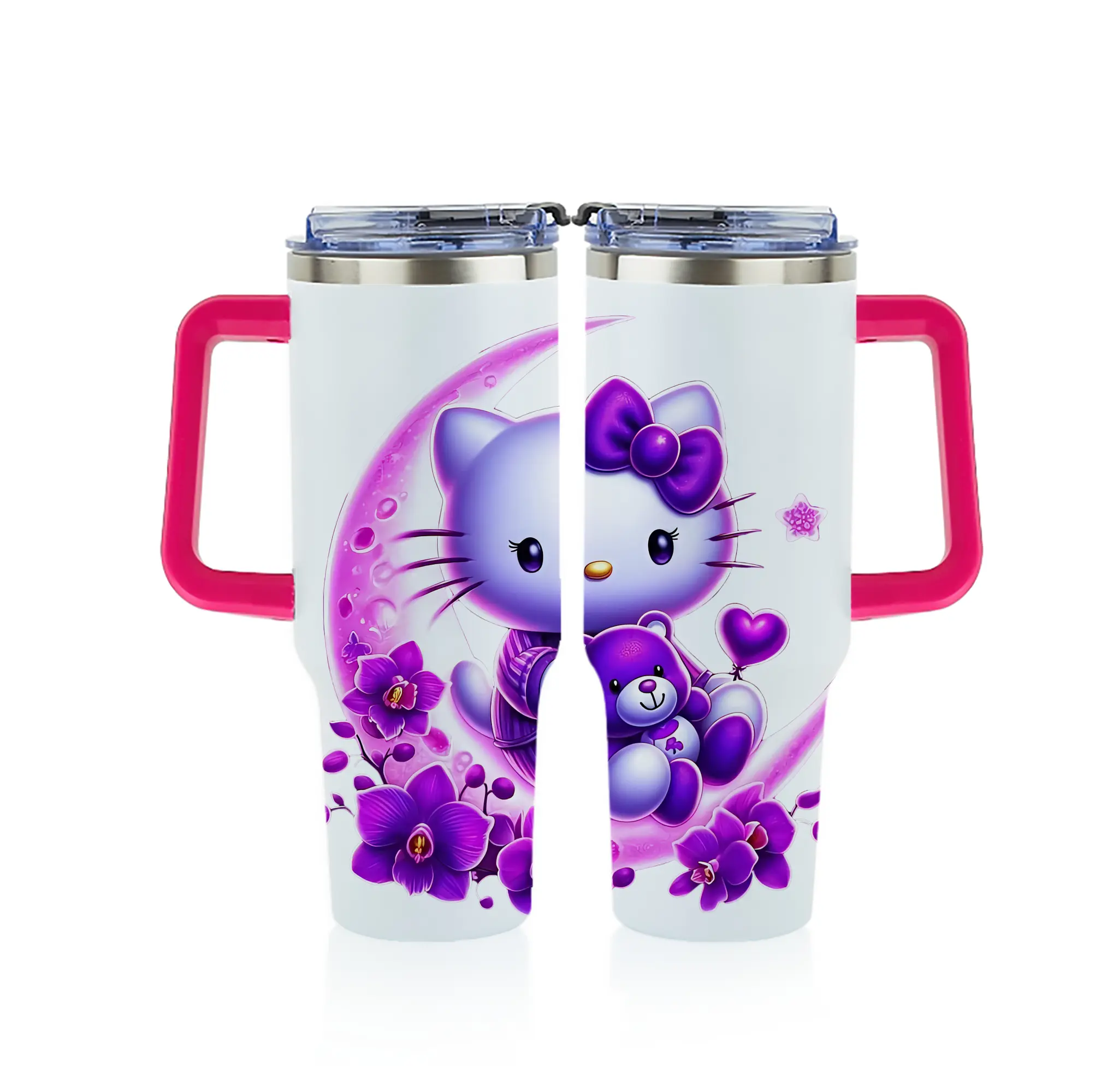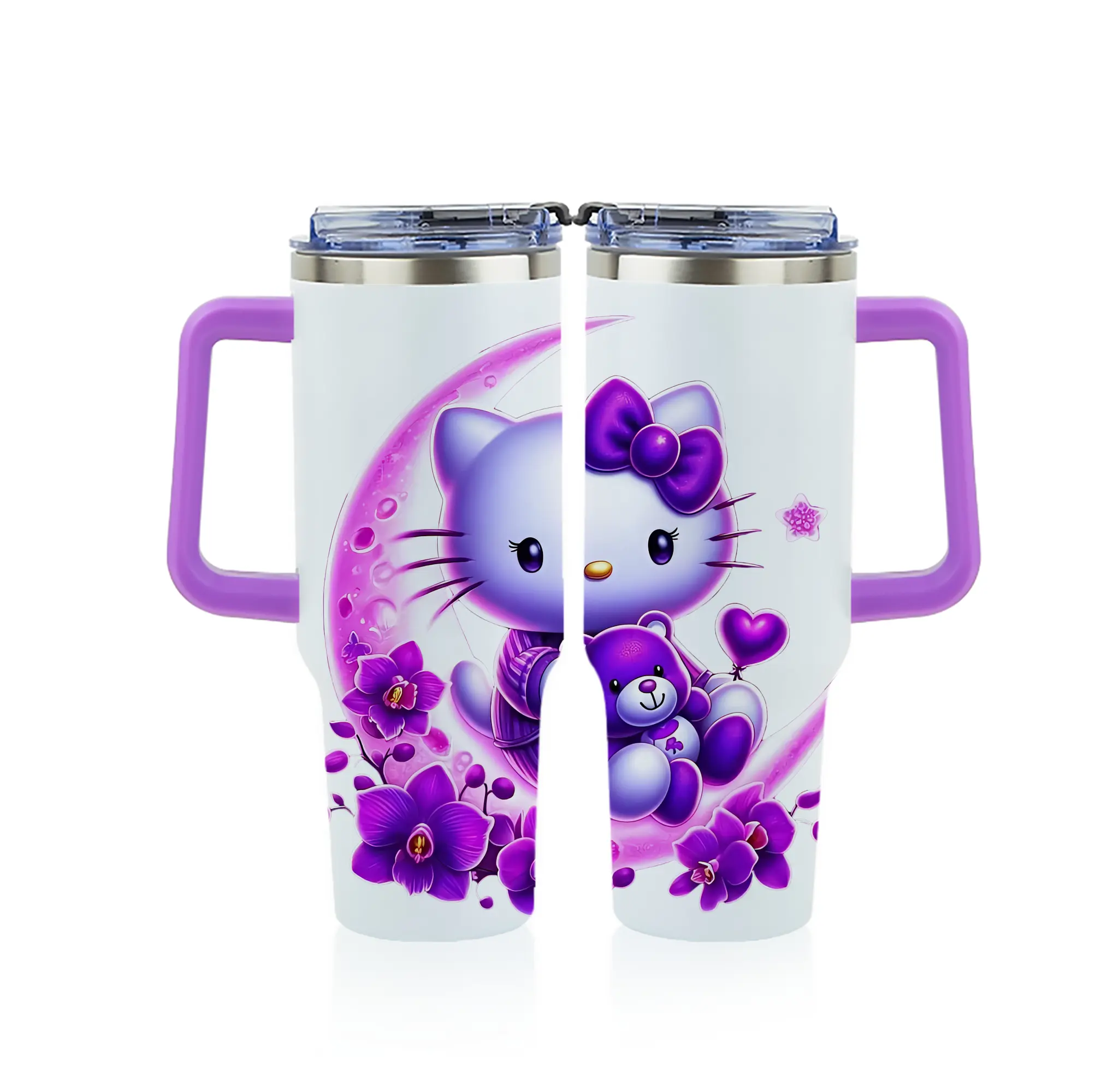 サンリオ グッズ,ハローキティ - 1200mL フルプリント車用タンブラー ・ 304ステンレス 内側 ・ 201ステンレス 外側 ・ 保温 保冷 ・ 通勤 ドライブ アウトドア用