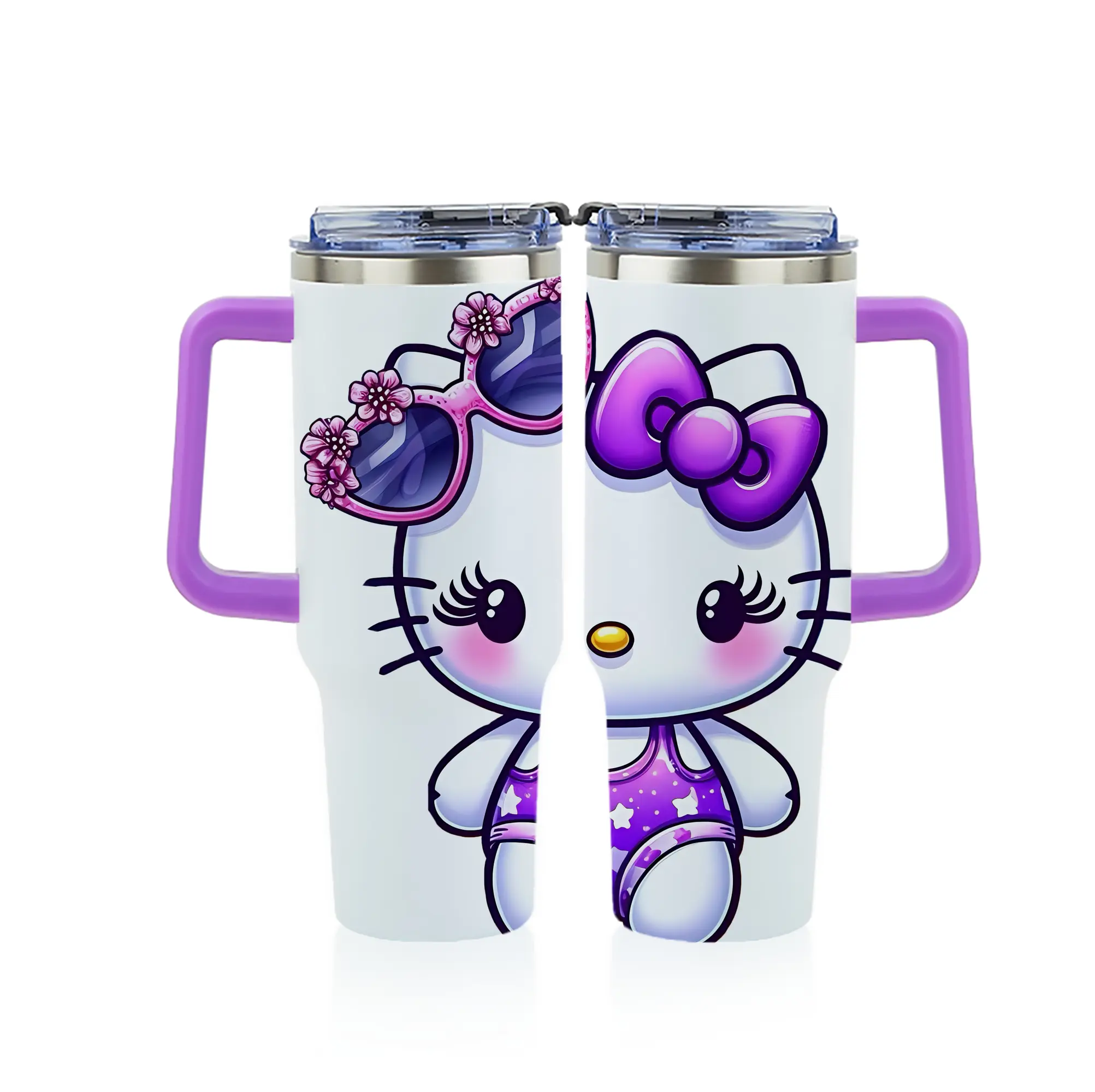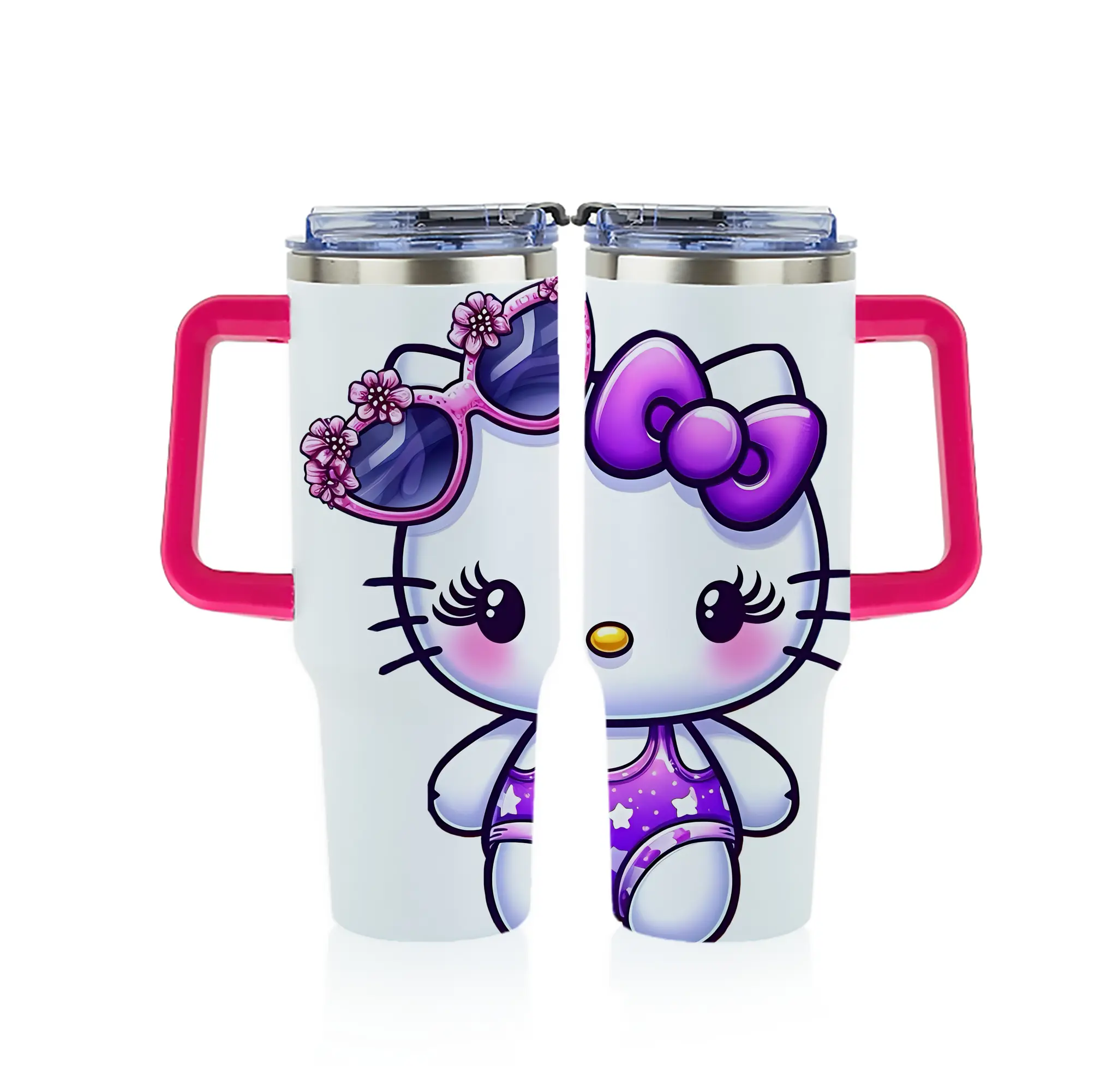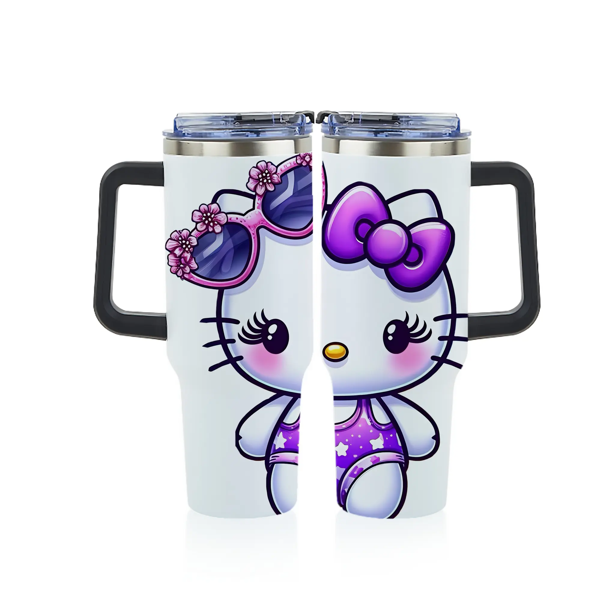 サンリオ グッズ,ハローキティ - 1200mL フルプリント車用タンブラー ・ 304ステンレス 内側 ・ 201ステンレス 外側 ・ 保温 保冷 ・ 通勤 ドライブ アウトドア用