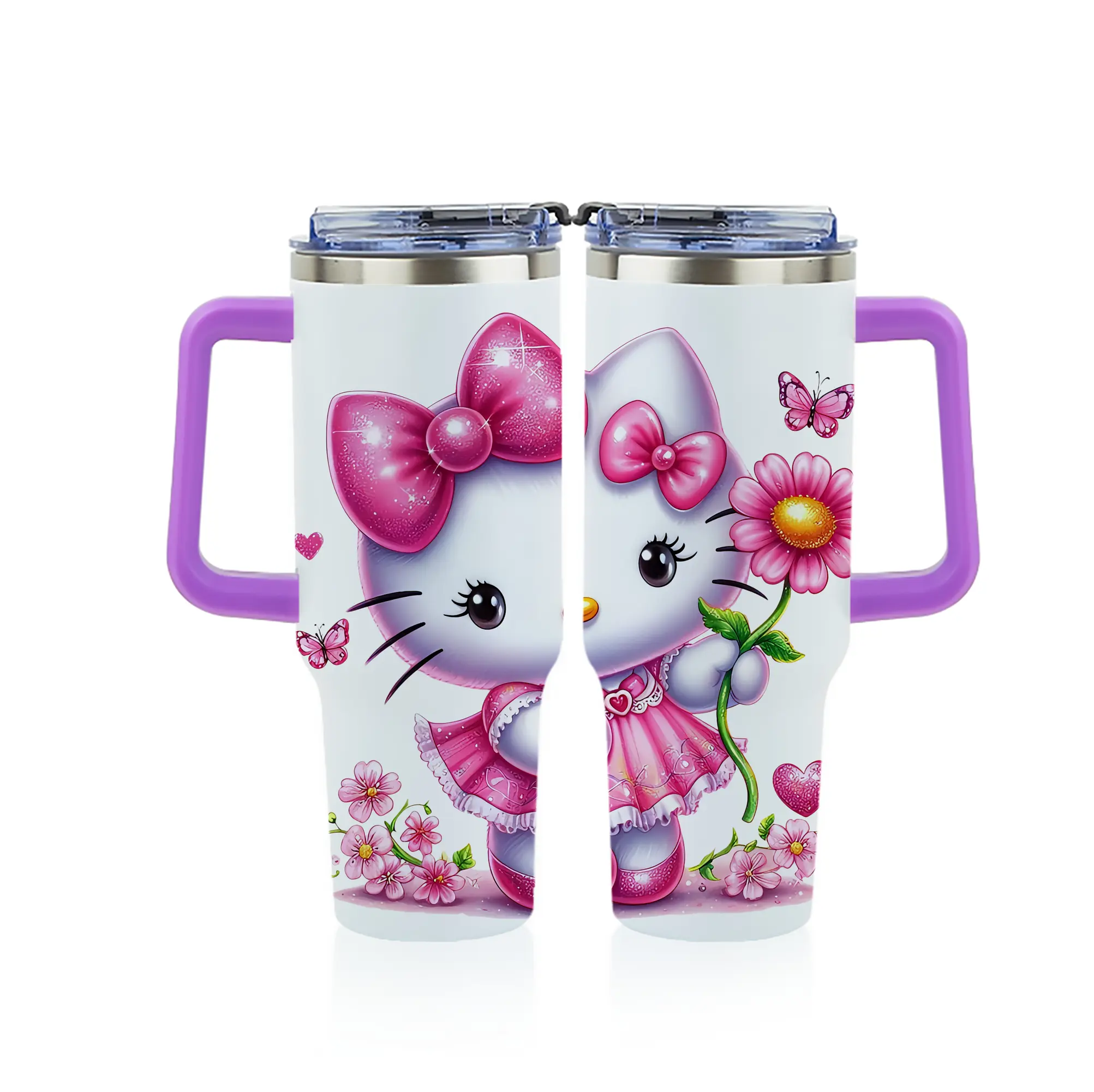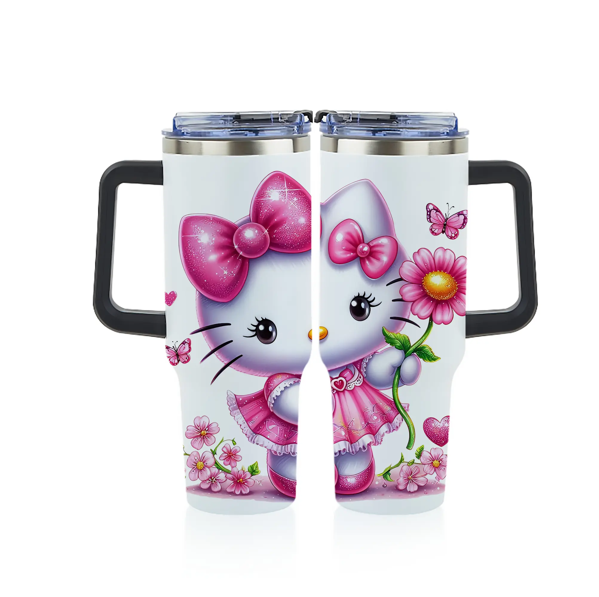 サンリオ グッズ,ハローキティ - 1200mL フルプリント車用タンブラー ・ 304ステンレス 内側 ・ 201ステンレス 外側 ・ 保温 保冷 ・ 通勤 ドライブ アウトドア用