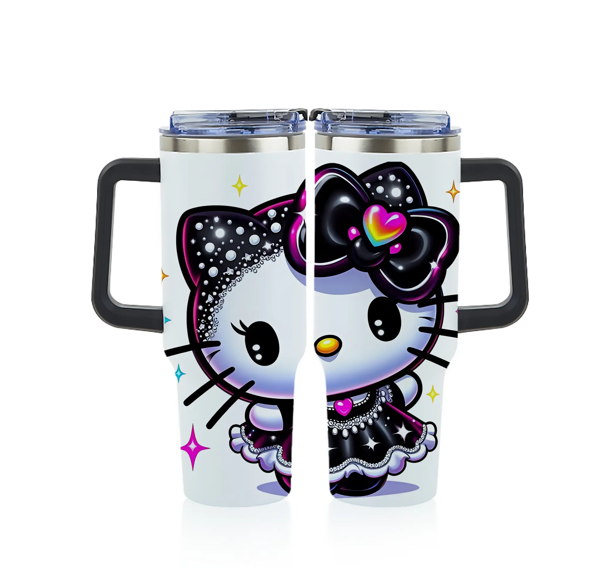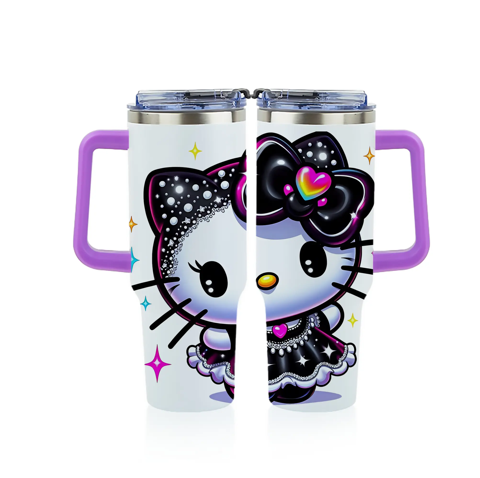 サンリオ グッズ,ハローキティ - 1200mL フルプリント車用タンブラー ・ 304ステンレス 内側 ・ 201ステンレス 外側 ・ 保温 保冷 ・ 通勤 ドライブ アウトドア用