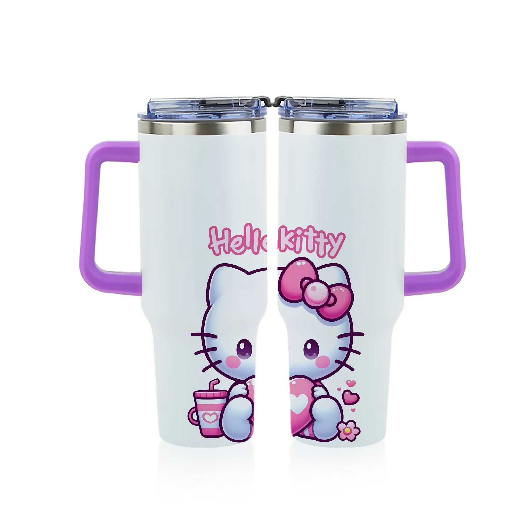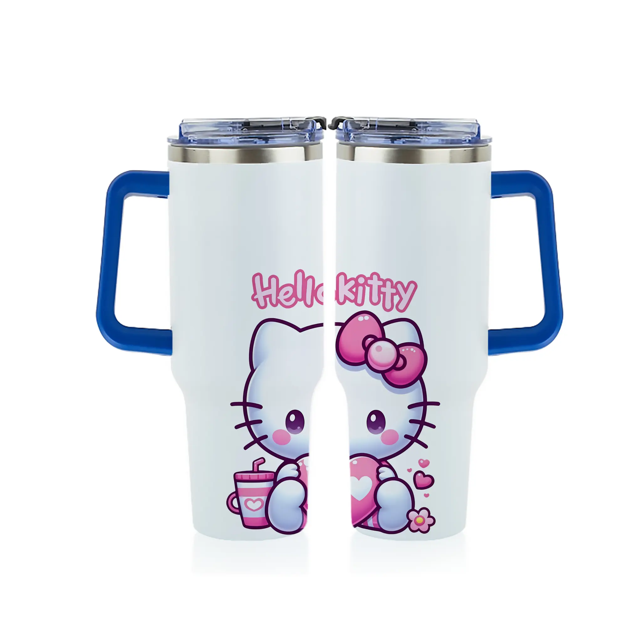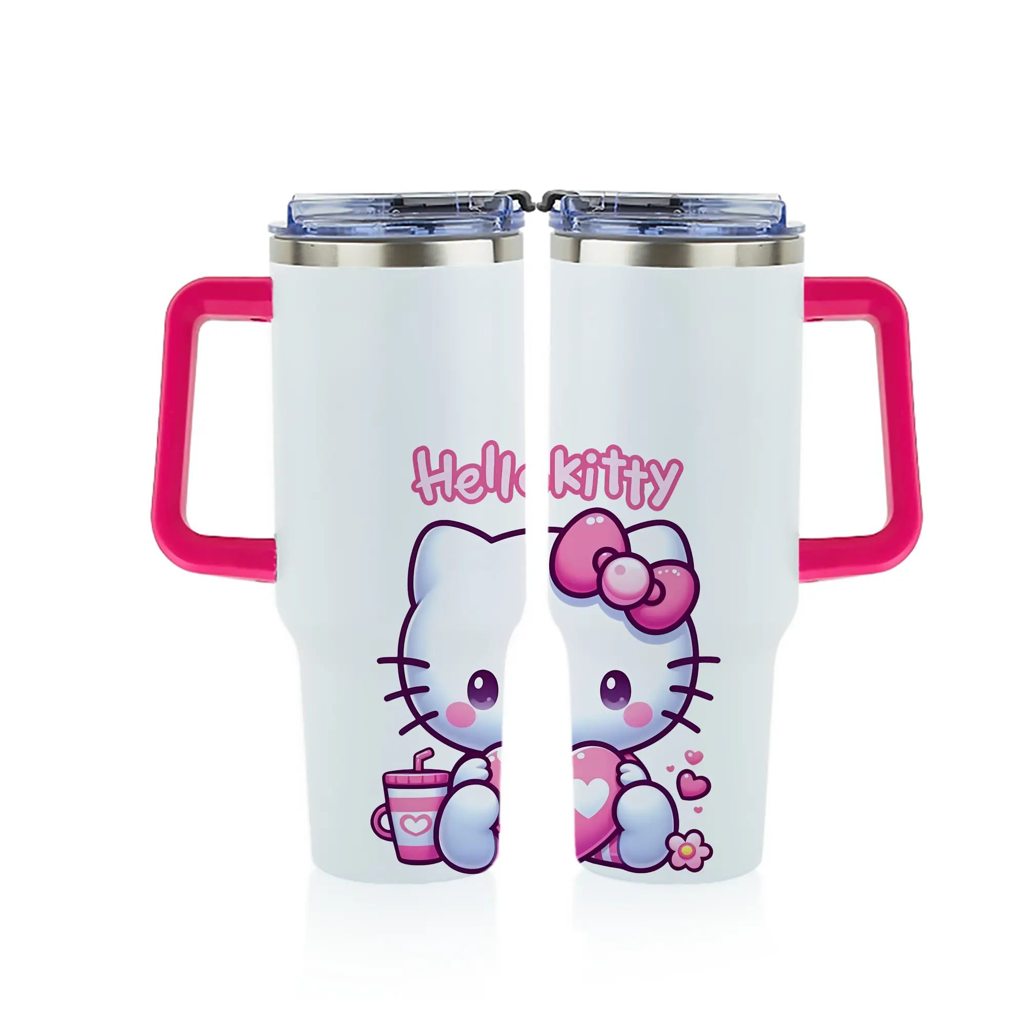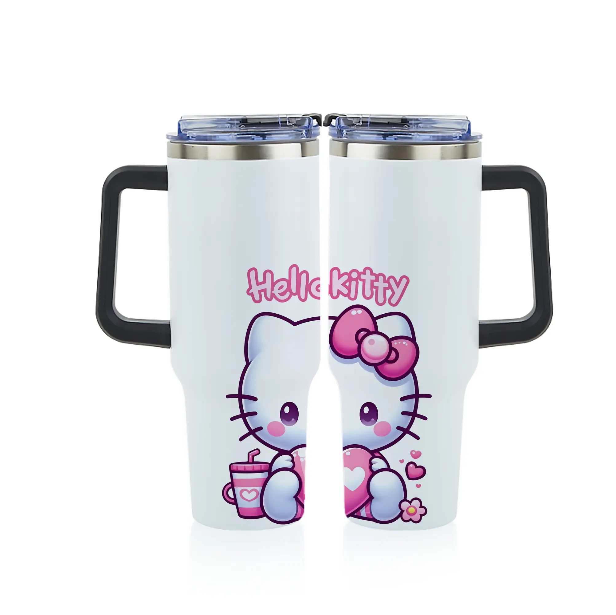 サンリオ グッズ,ハローキティ - 1200mL フルプリント車用タンブラー ・ 304ステンレス 内側 ・ 201ステンレス 外側 ・ 保温 保冷 ・ 通勤 ドライブ アウトドア用