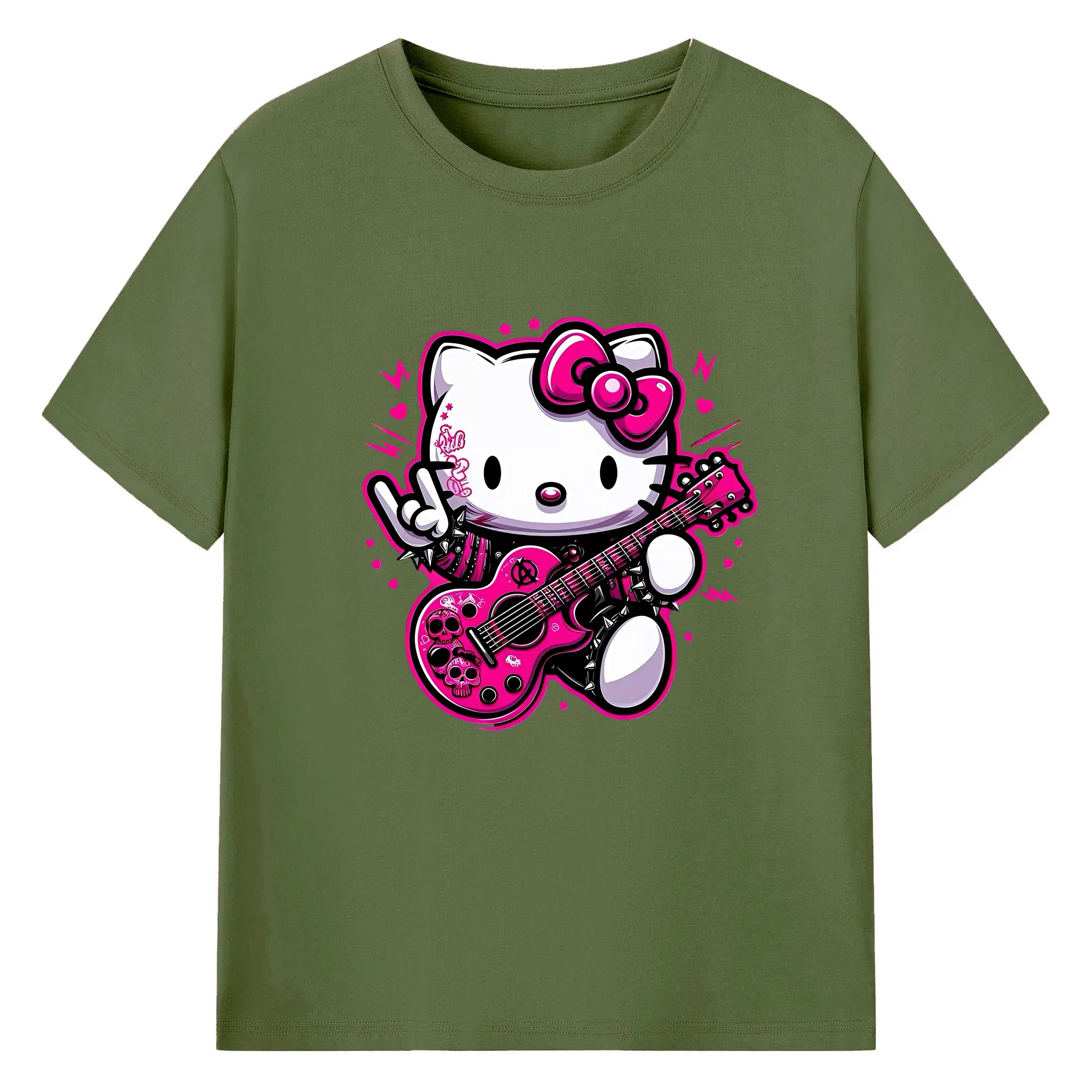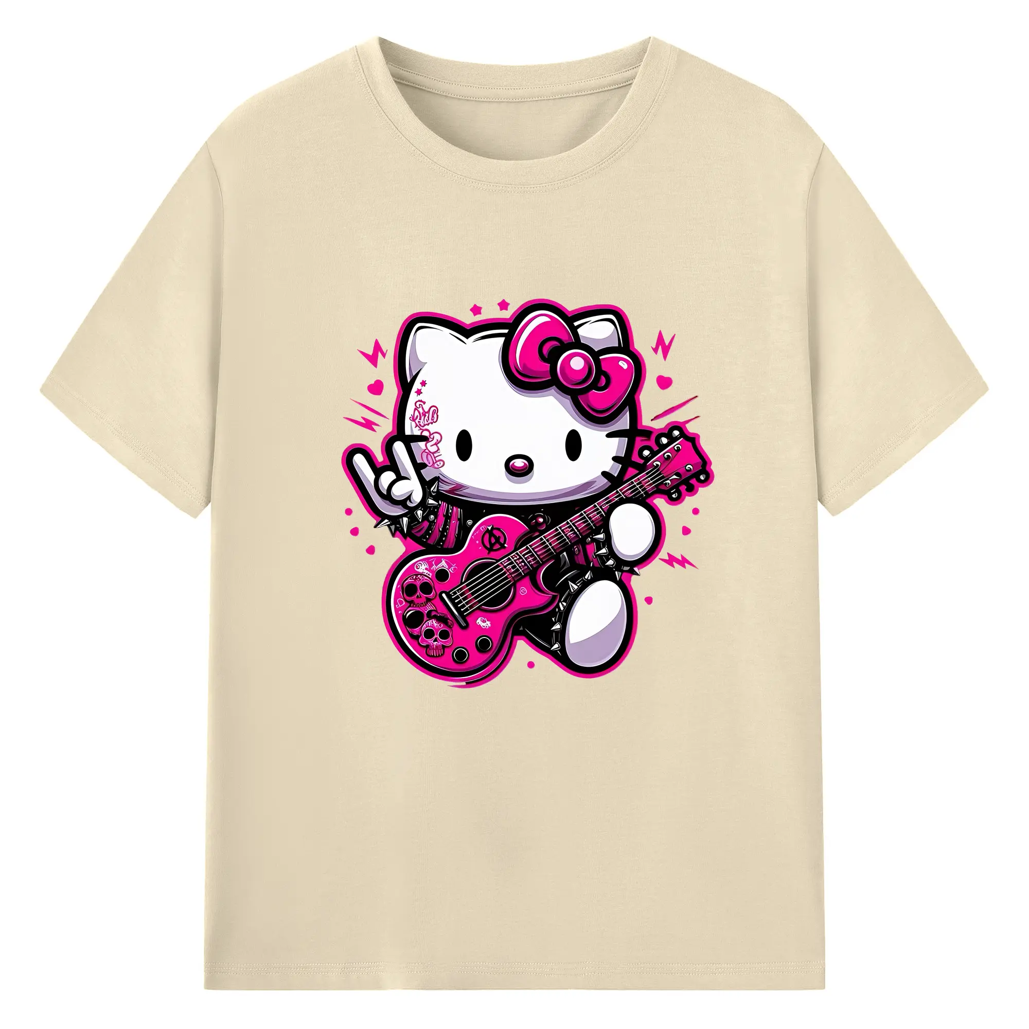 サンリオ グッズ,ハローキティ - 綿100% ヴィンテージ風 半袖Tシャツ ・ フロントプリント ・ 柔らか肌触り ・ 通気性 快適 ・ スポーツ カジュアル 外出用