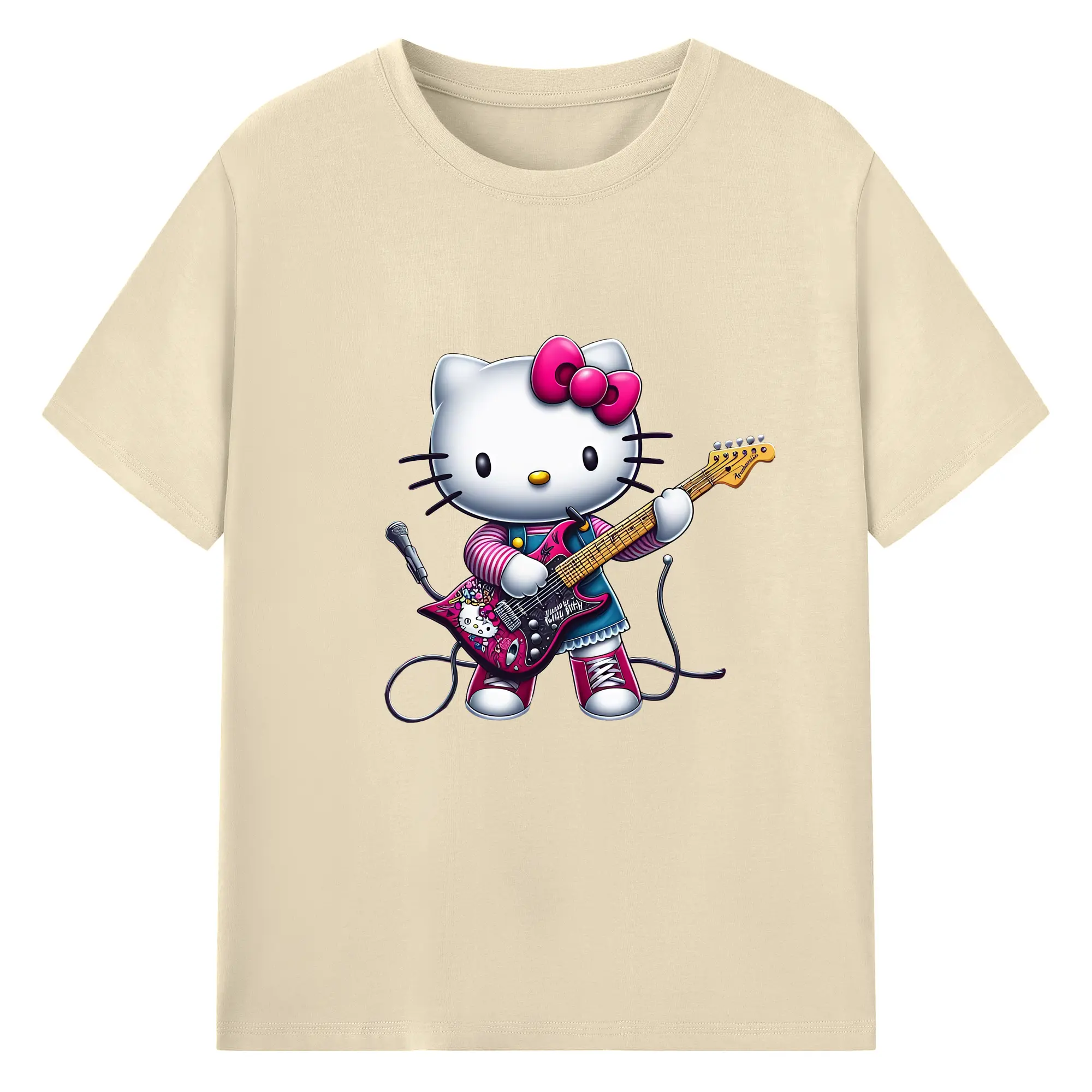 サンリオ グッズ,ハローキティ - 綿100% ヴィンテージ風 半袖Tシャツ ・ フロントプリント ・ 柔らか肌触り ・ 通気性 快適 ・ スポーツ カジュアル 外出用