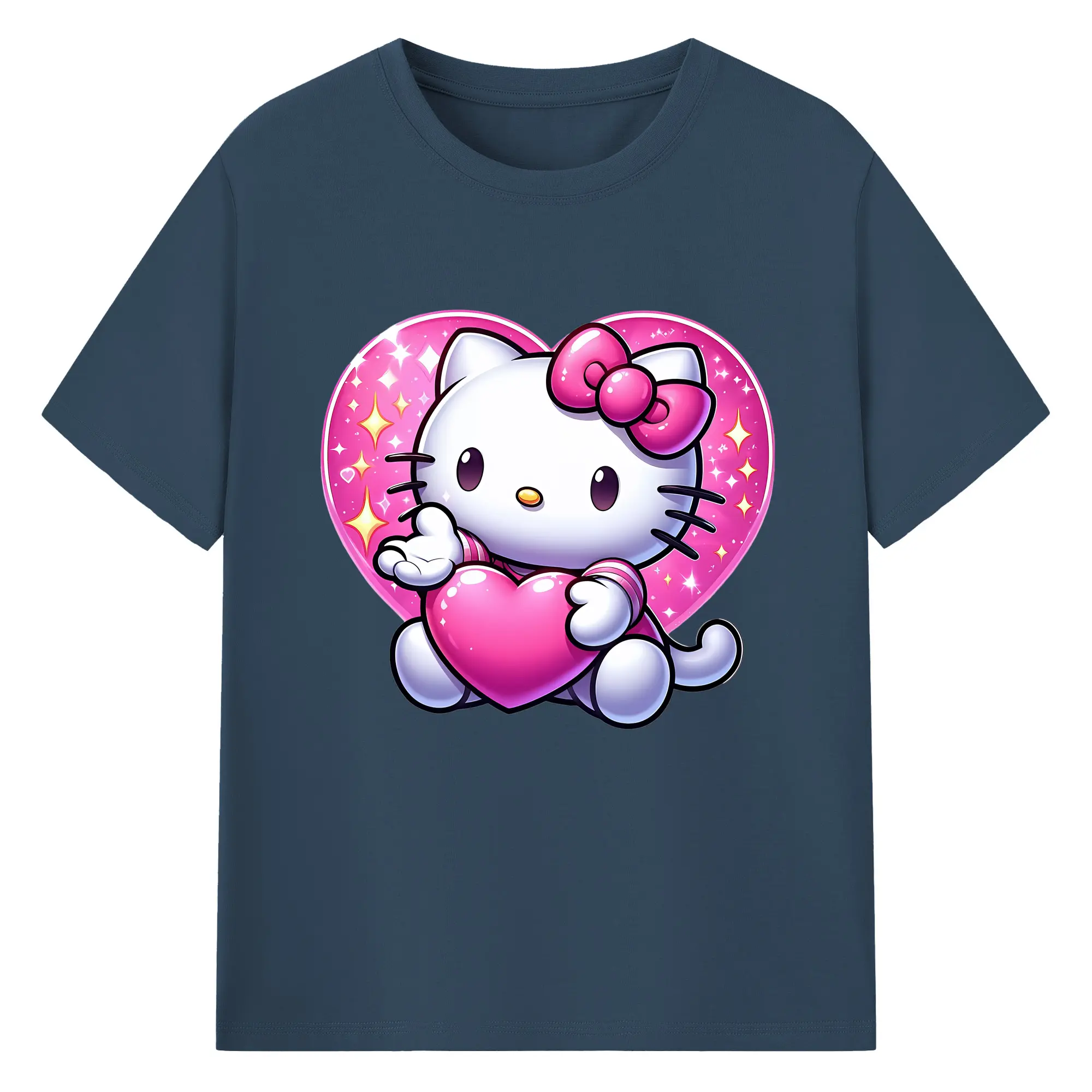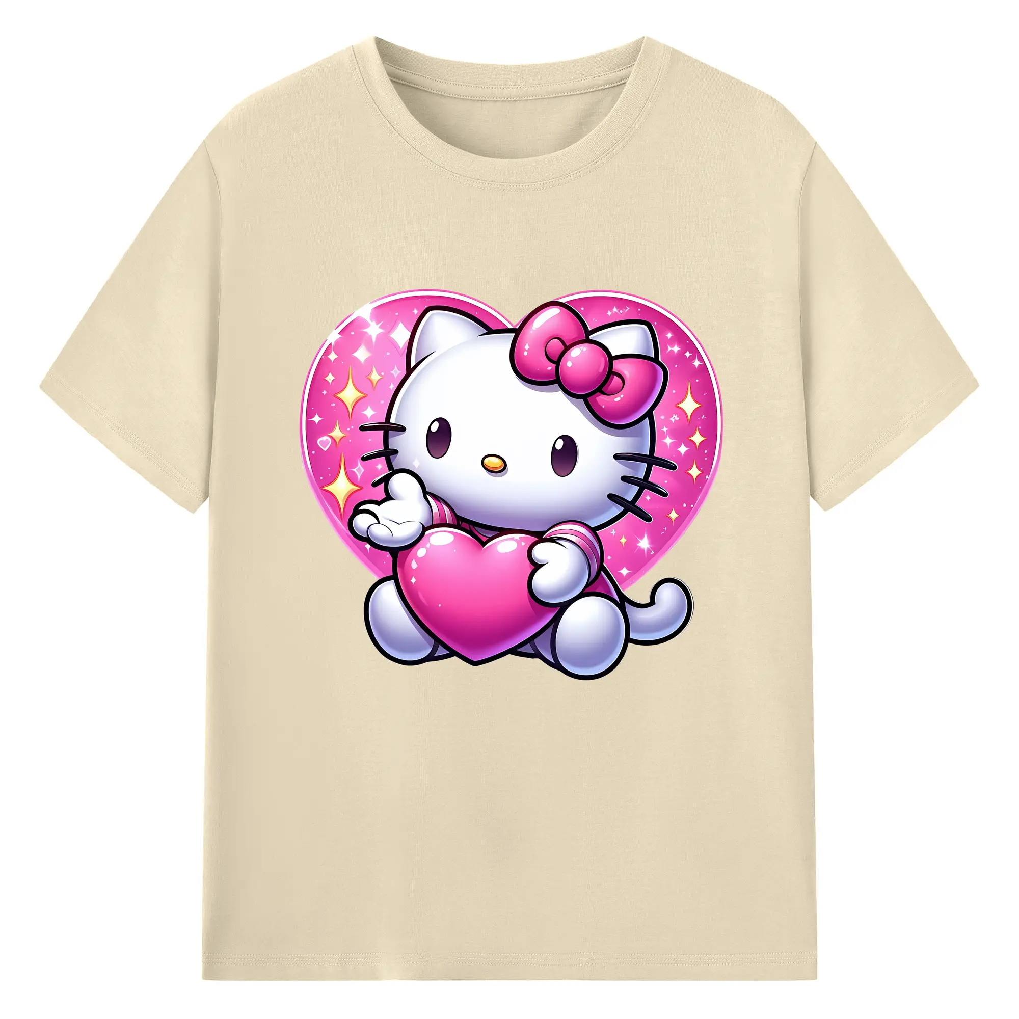 サンリオ グッズ,ハローキティ - 綿100% ヴィンテージ風 半袖Tシャツ ・ フロントプリント ・ 柔らか肌触り ・ 通気性 快適 ・ スポーツ カジュアル 外出用