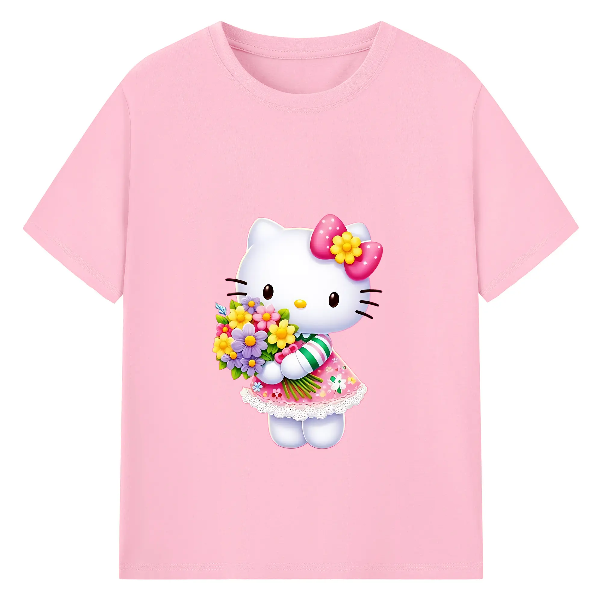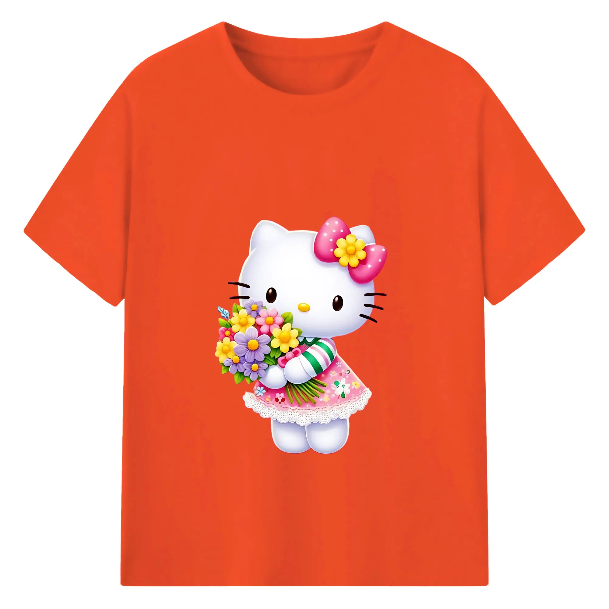 サンリオ グッズ,ハローキティ - 綿100% 半袖Tシャツ ・ バックプリント ・ 快適 通気性 ・ 日常使い 散歩 スポーツ用