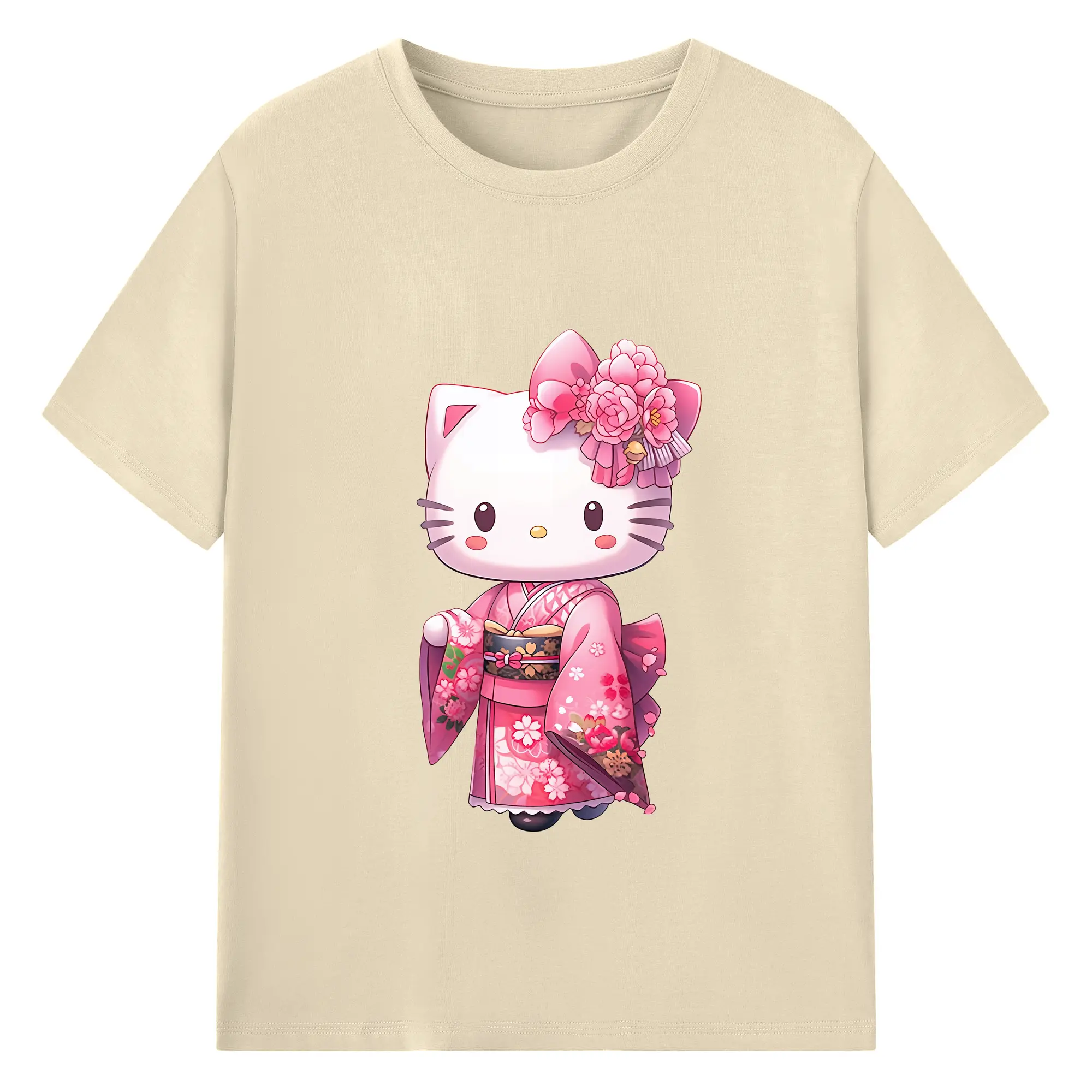 サンリオ グッズ,ハローキティ - 綿100% ヴィンテージ風 半袖Tシャツ ・ フロントプリント ・ 柔らか肌触り ・ 通気性 快適 ・ スポーツ カジュアル 外出用