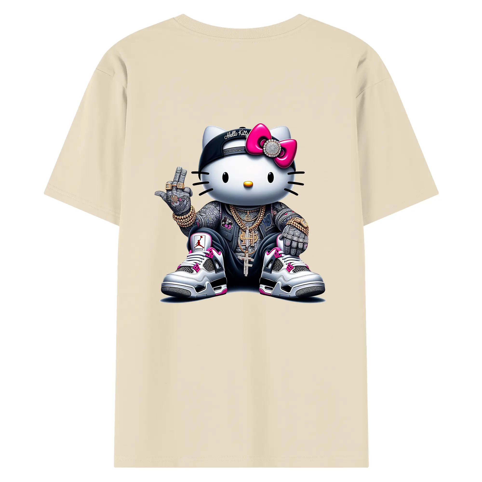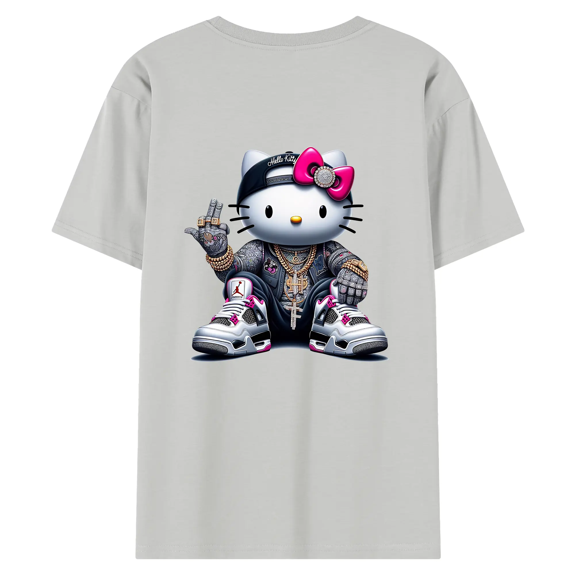 サンリオ グッズ,ハローキティ - 綿100% ヴィンテージ風 半袖Tシャツ ・ 背面プリント ・ 柔らか肌触り ・ 通気性 快適 ・ スポーツ カジュアル 外出用