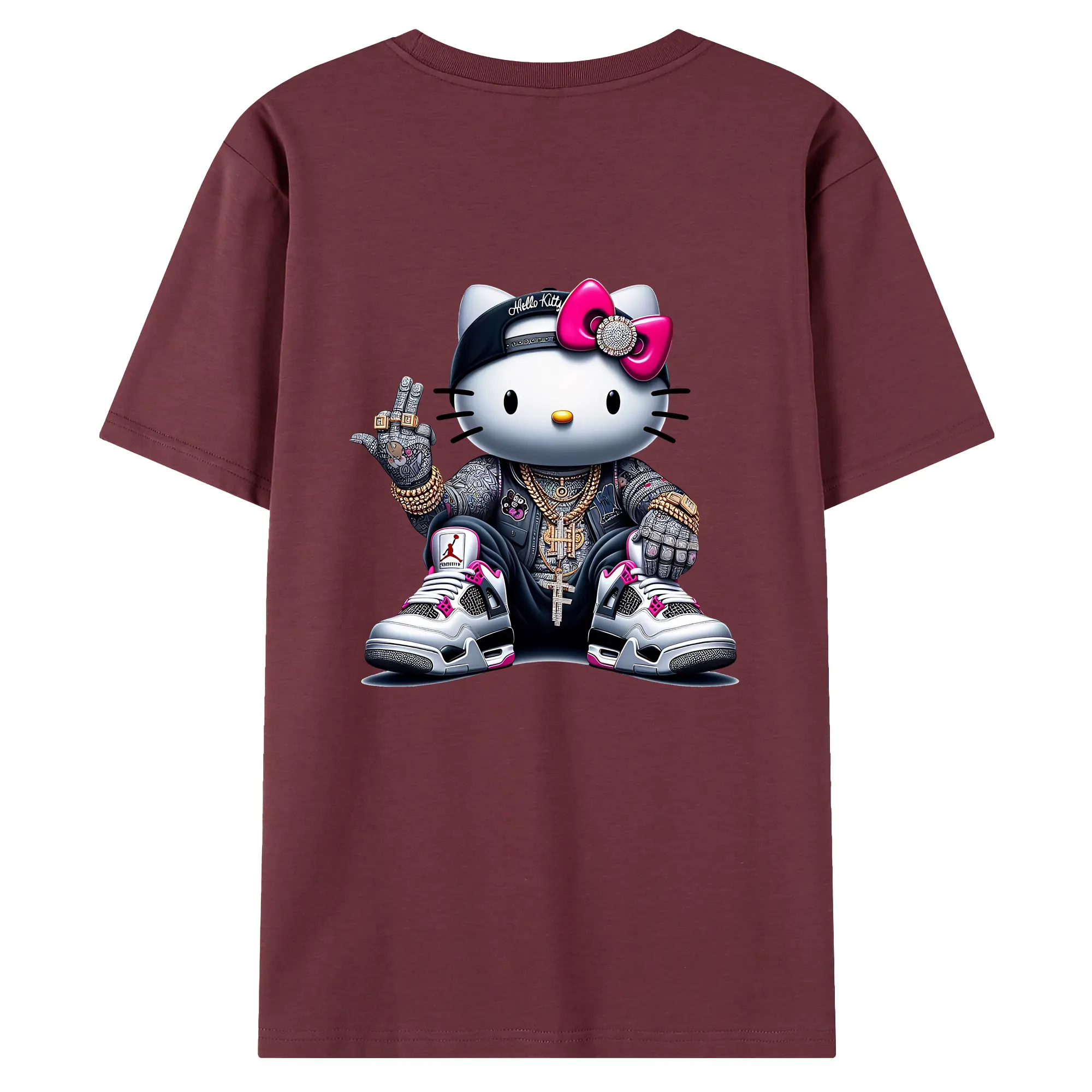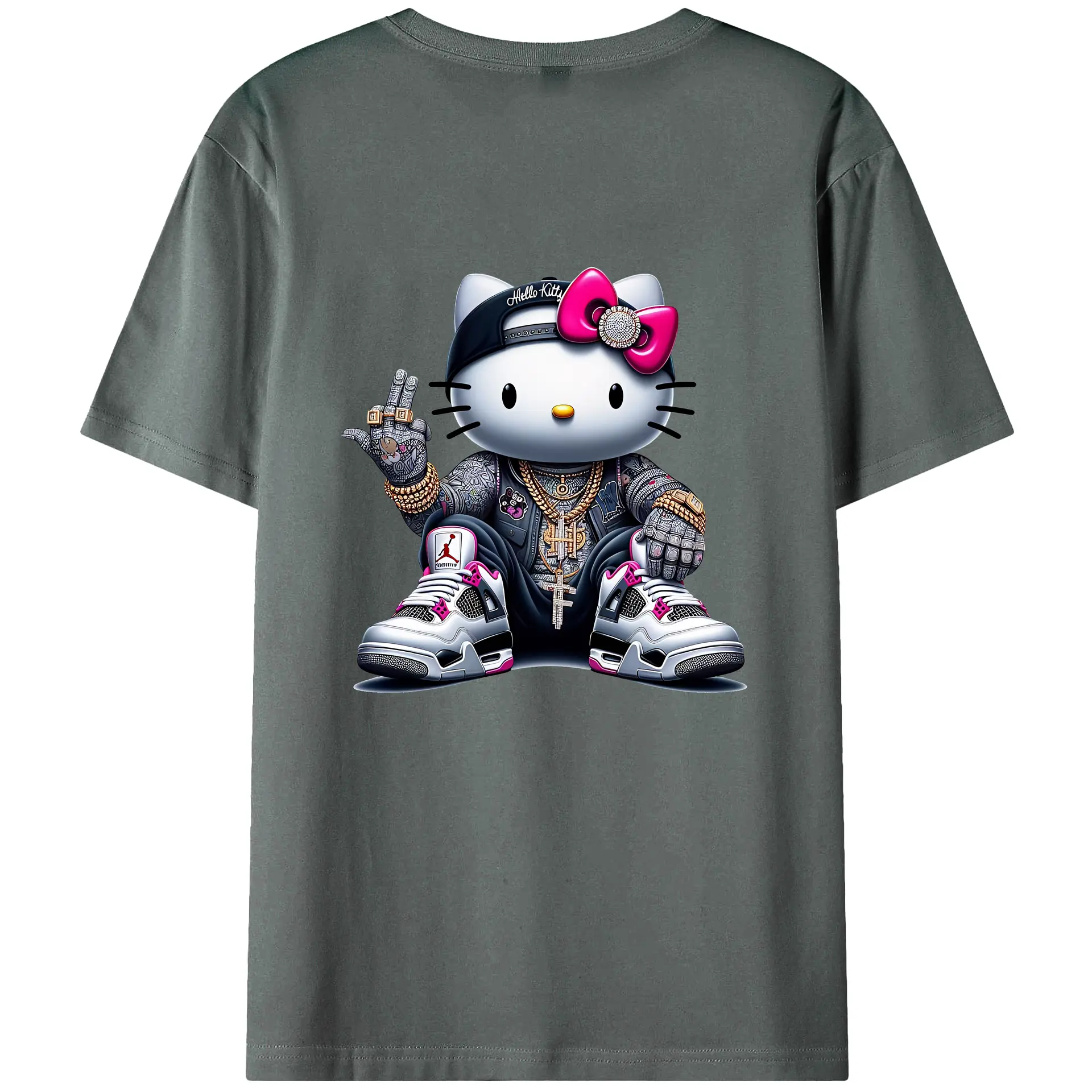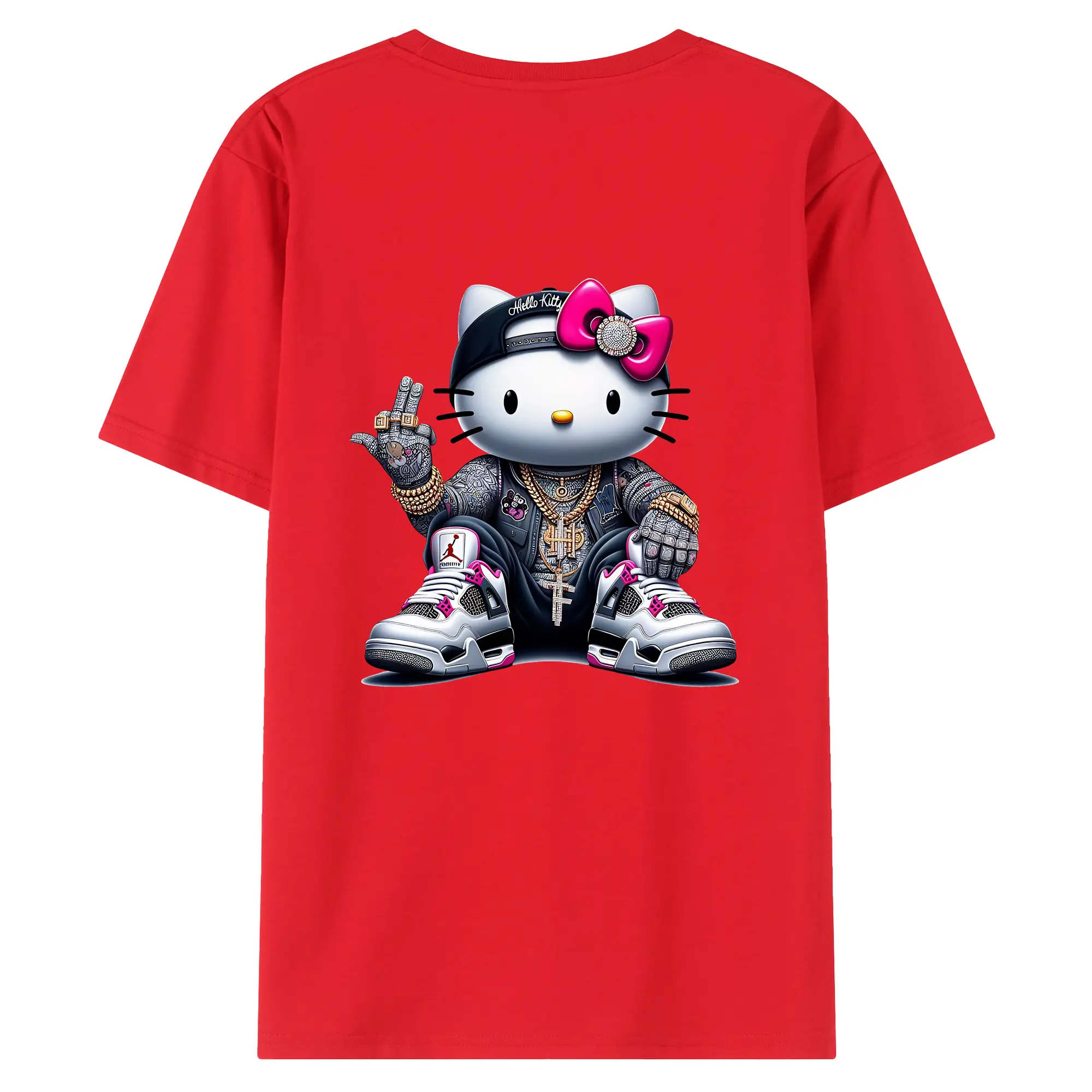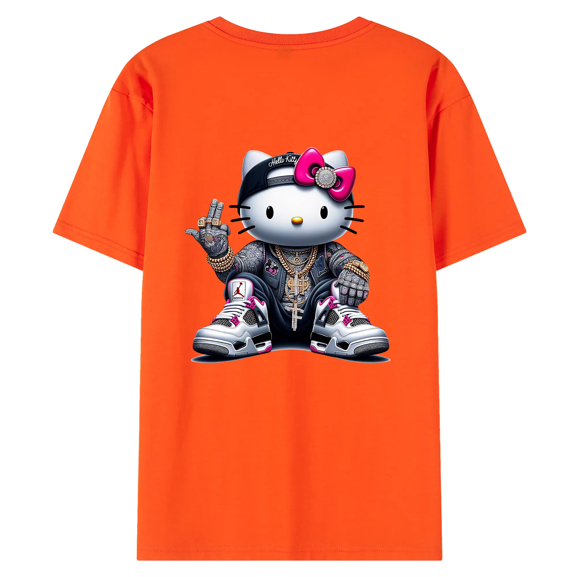 サンリオ グッズ,ハローキティ - 綿100% 半袖Tシャツ ・ フロントプリント ・ 快適 通気性 ・ 日常使い 散歩 スポーツ用