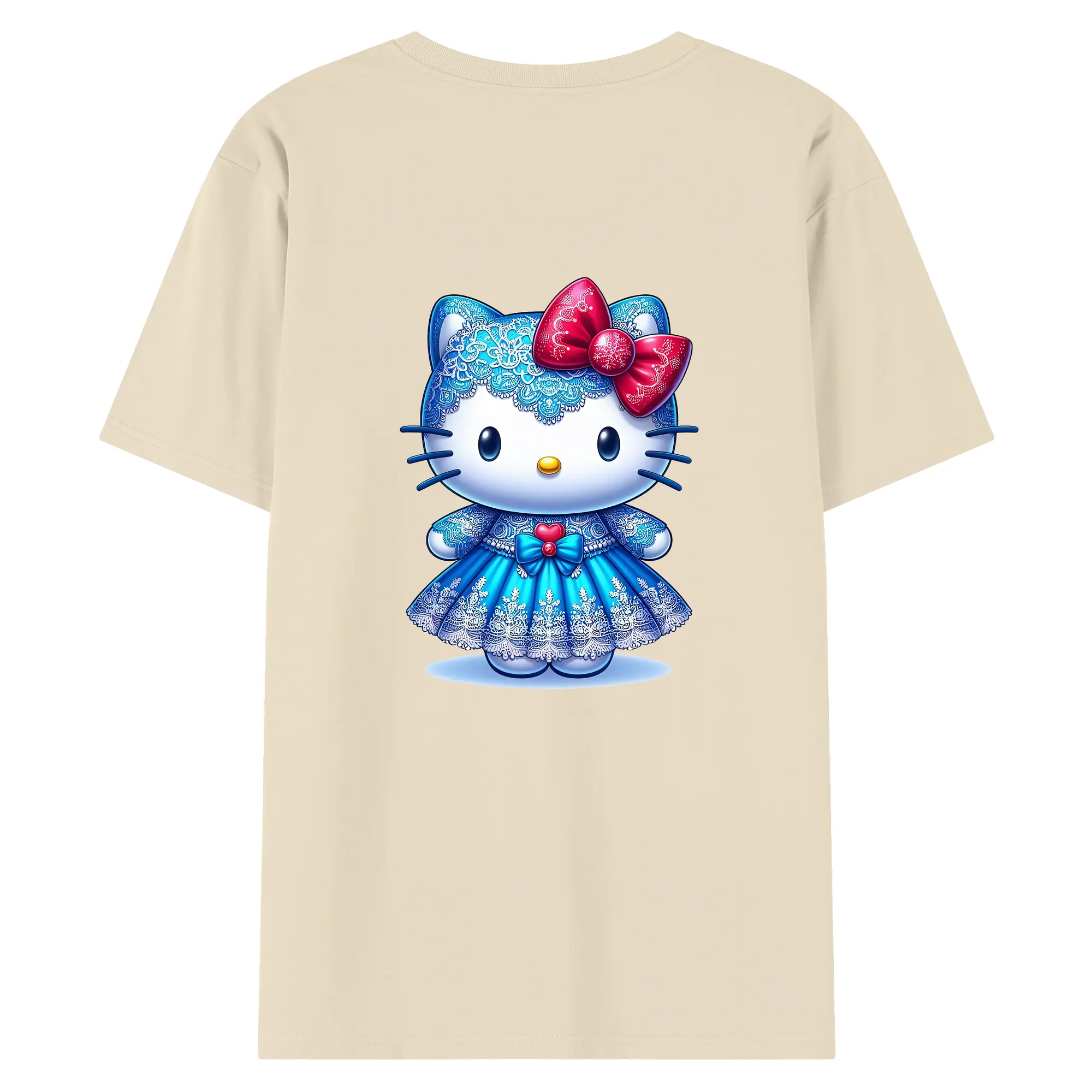 サンリオ グッズ,ハローキティ - 綿100% ヴィンテージ風 半袖Tシャツ ・ 背面プリント ・ 柔らか肌触り ・ 通気性 快適 ・ スポーツ カジュアル 外出用