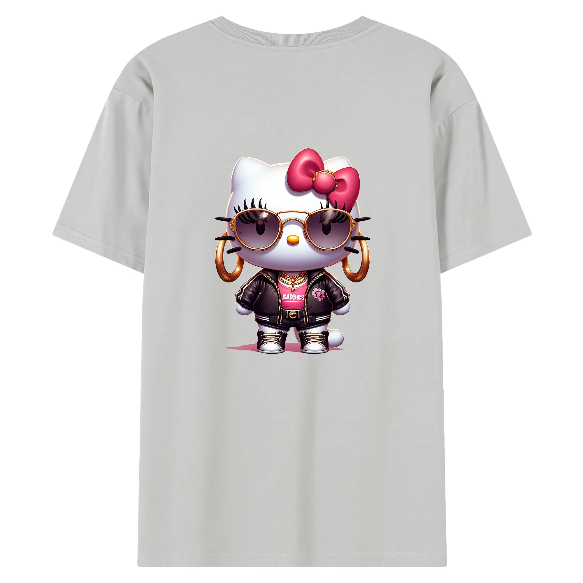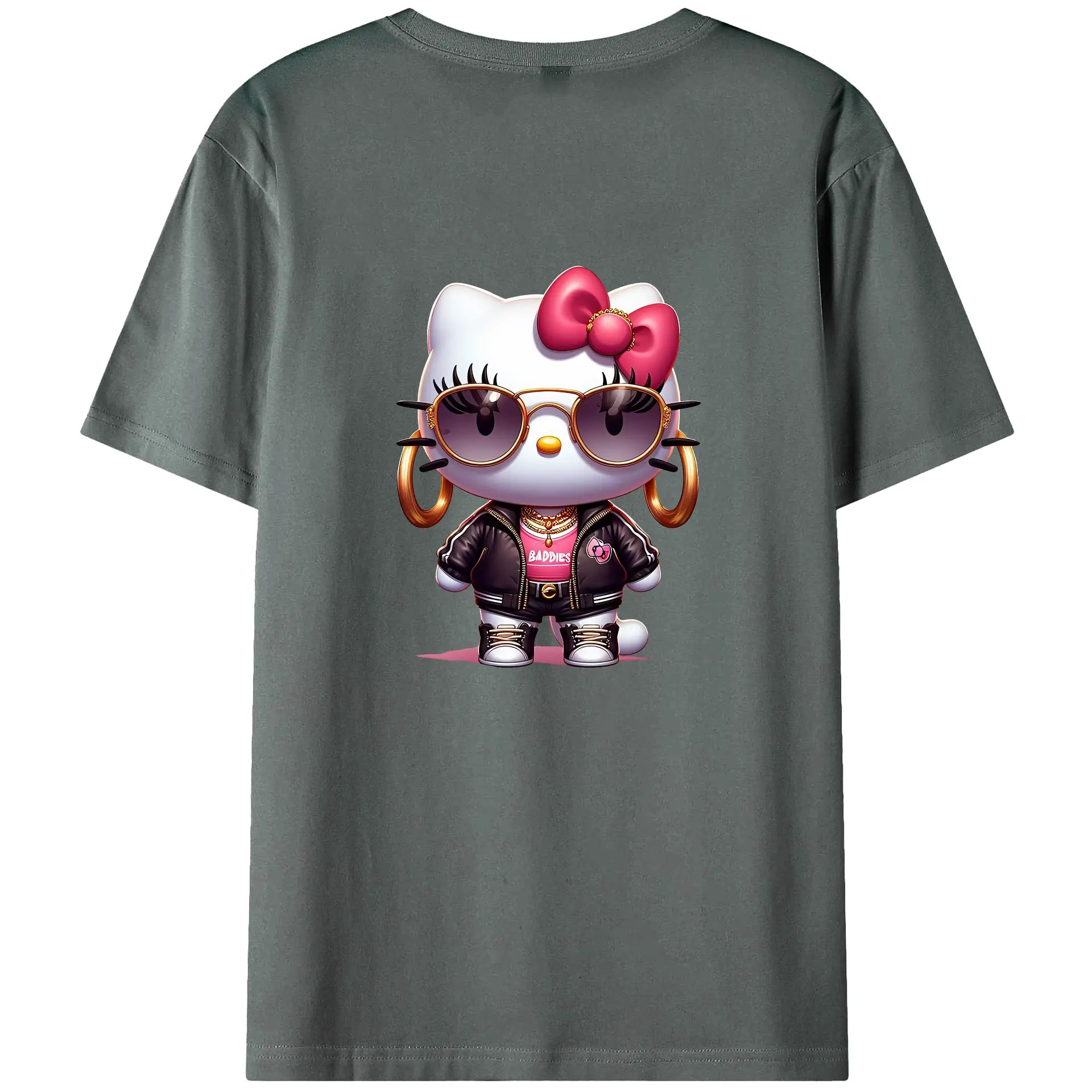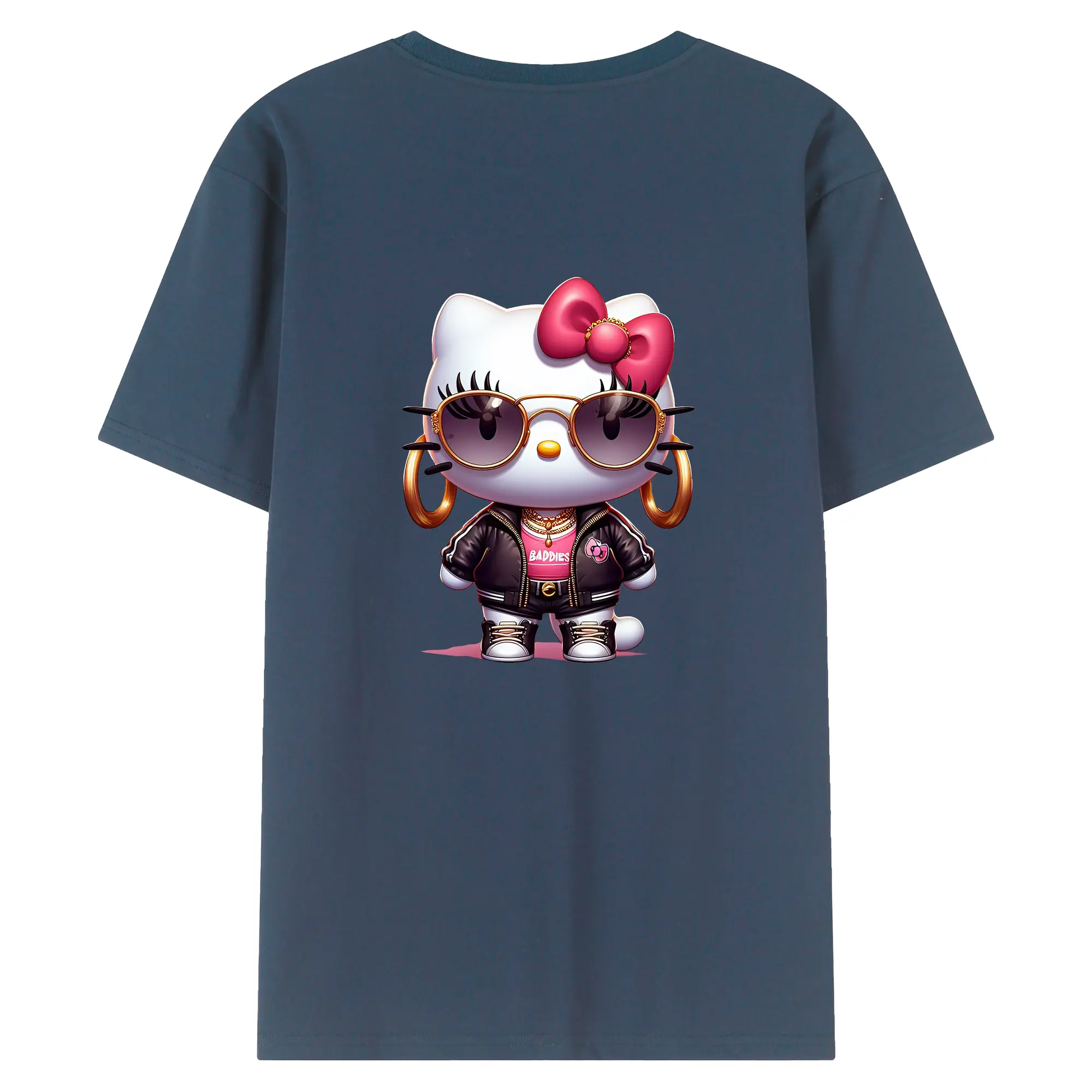 サンリオ グッズ,ハローキティ - 綿100% ヴィンテージ風 半袖Tシャツ ・ 背面プリント ・ 柔らか肌触り ・ 通気性 快適 ・ スポーツ カジュアル 外出用