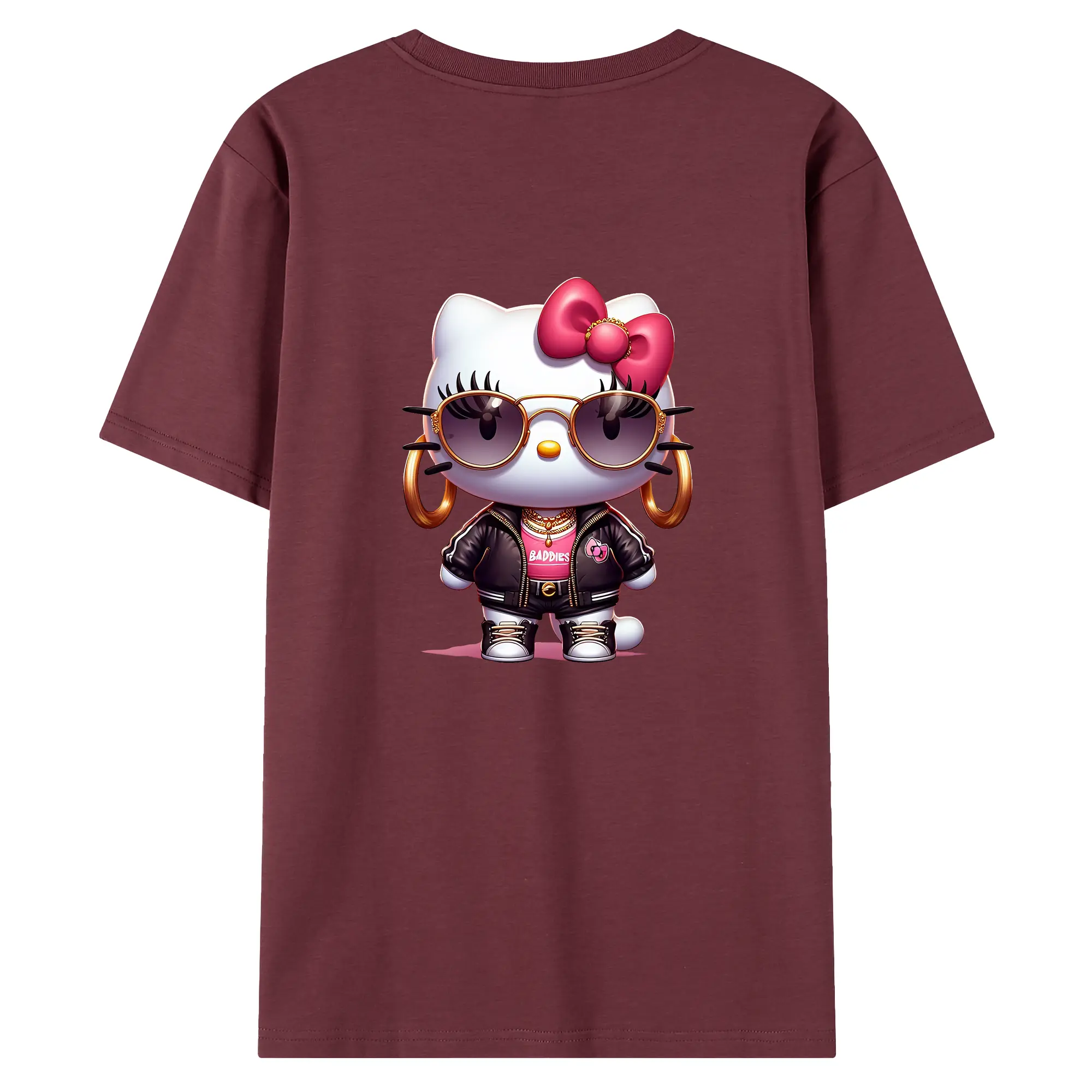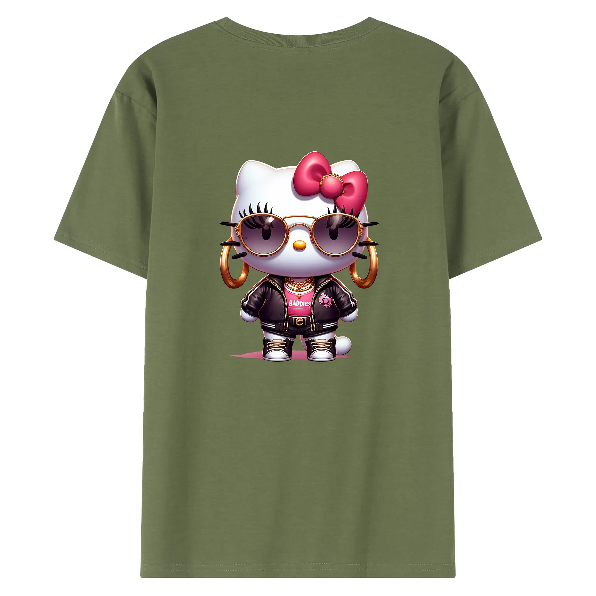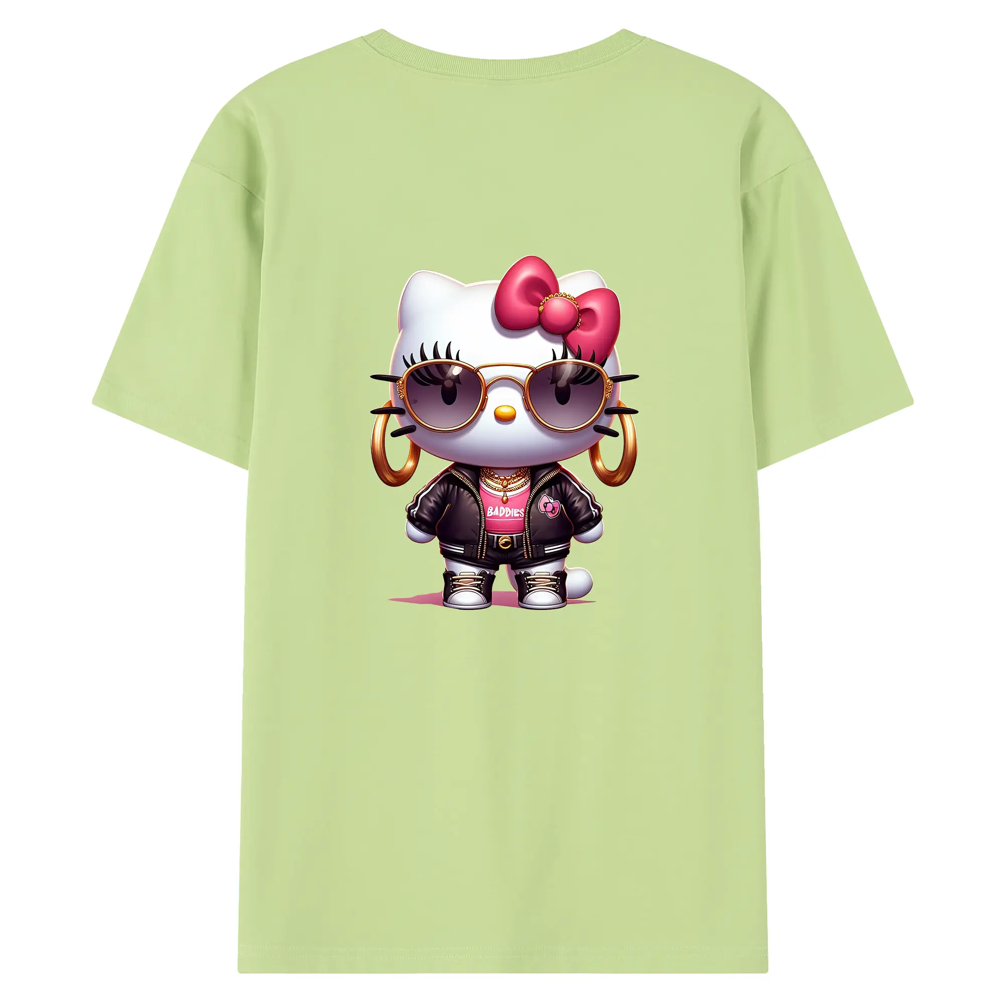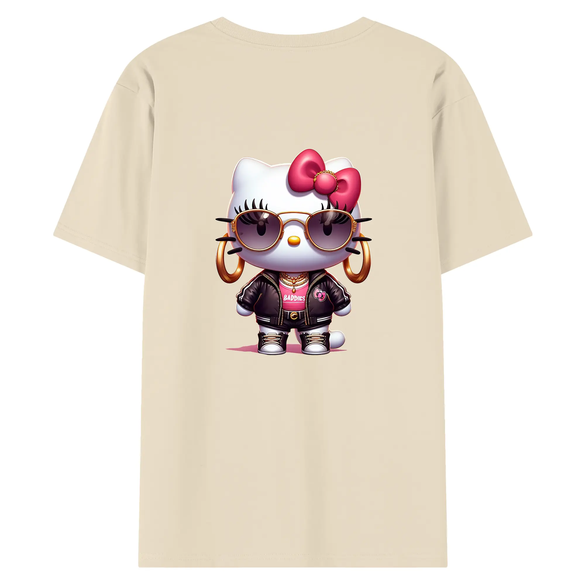 サンリオ グッズ,ハローキティ - 綿100% ヴィンテージ風 半袖Tシャツ ・ 背面プリント ・ 柔らか肌触り ・ 通気性 快適 ・ スポーツ カジュアル 外出用