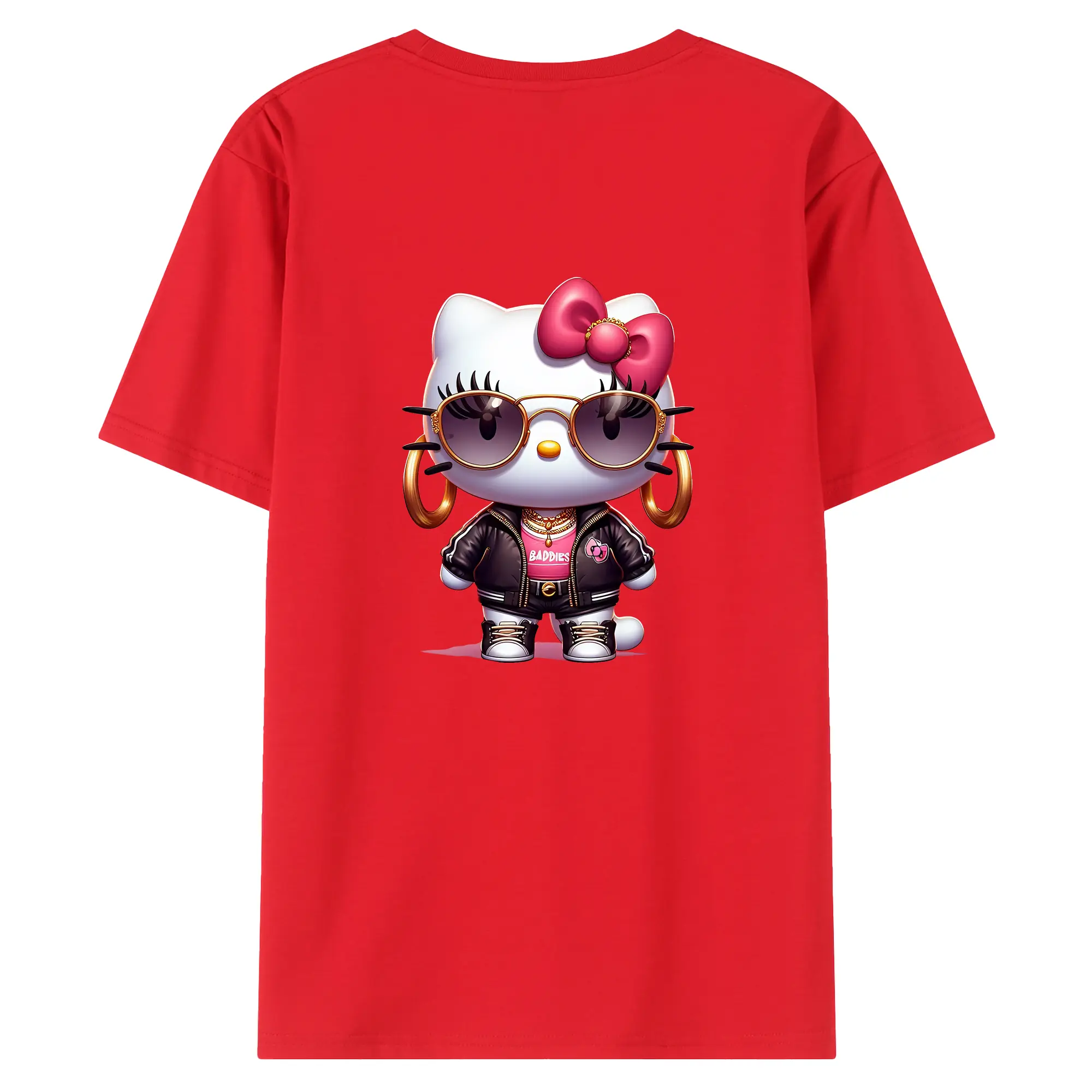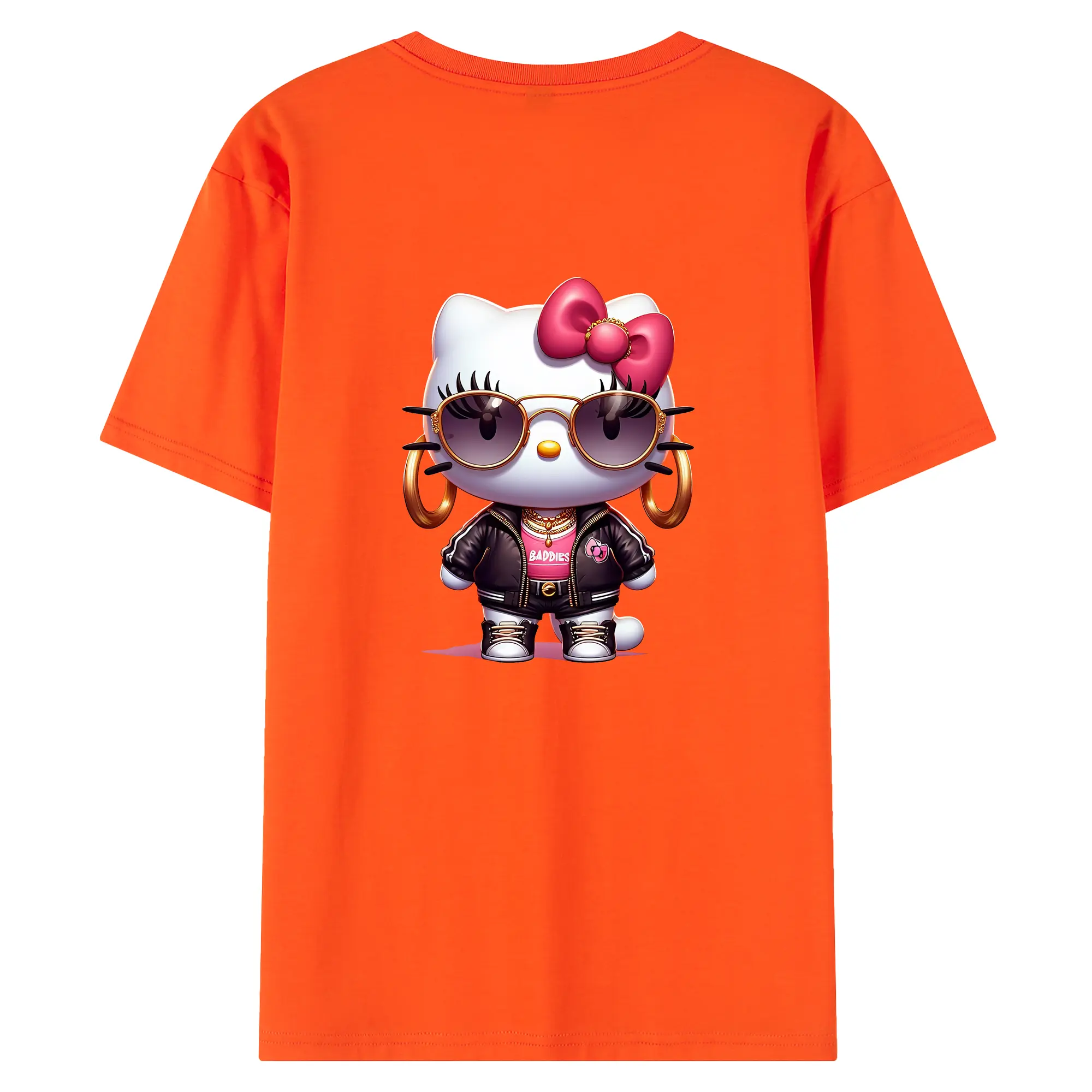 サンリオ グッズ,ハローキティ - 綿100% 半袖Tシャツ ・ フロントプリント ・ 快適 通気性 ・ 日常使い 散歩 スポーツ用