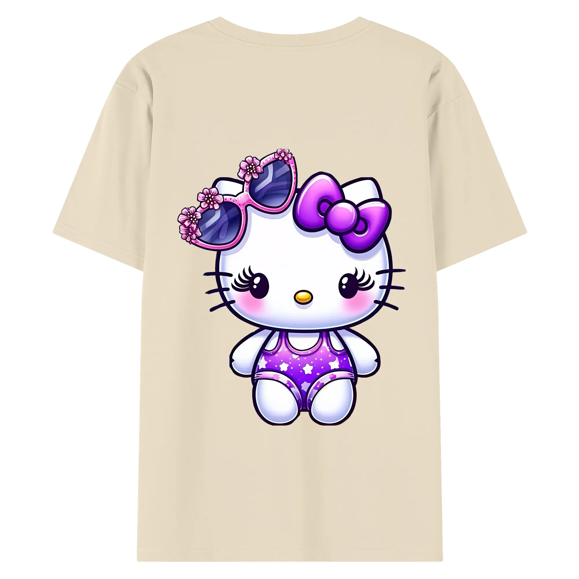 サンリオ グッズ,ハローキティ - 綿100% ヴィンテージ風 半袖Tシャツ ・ 背面プリント ・ 柔らか肌触り ・ 通気性 快適 ・ スポーツ カジュアル 外出用