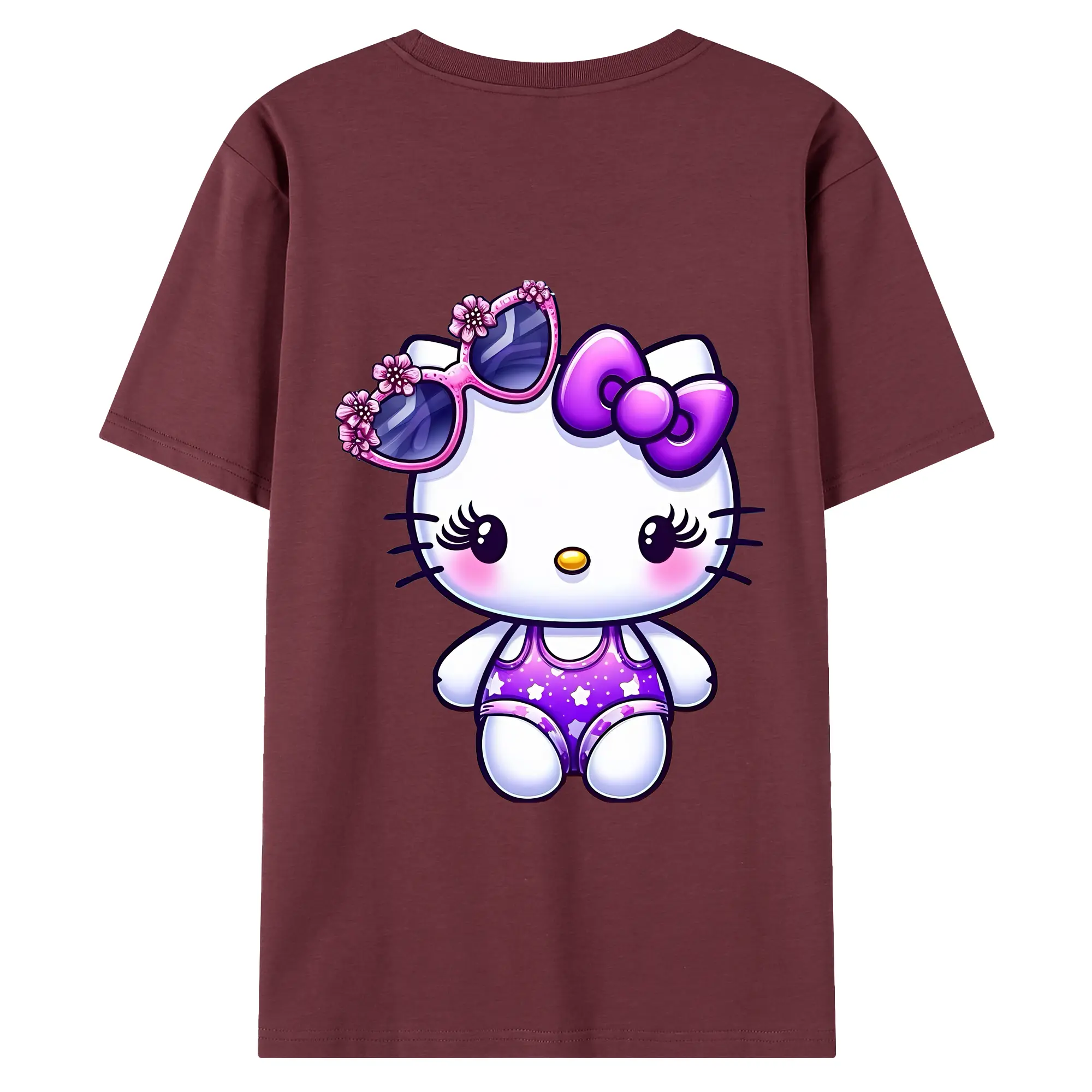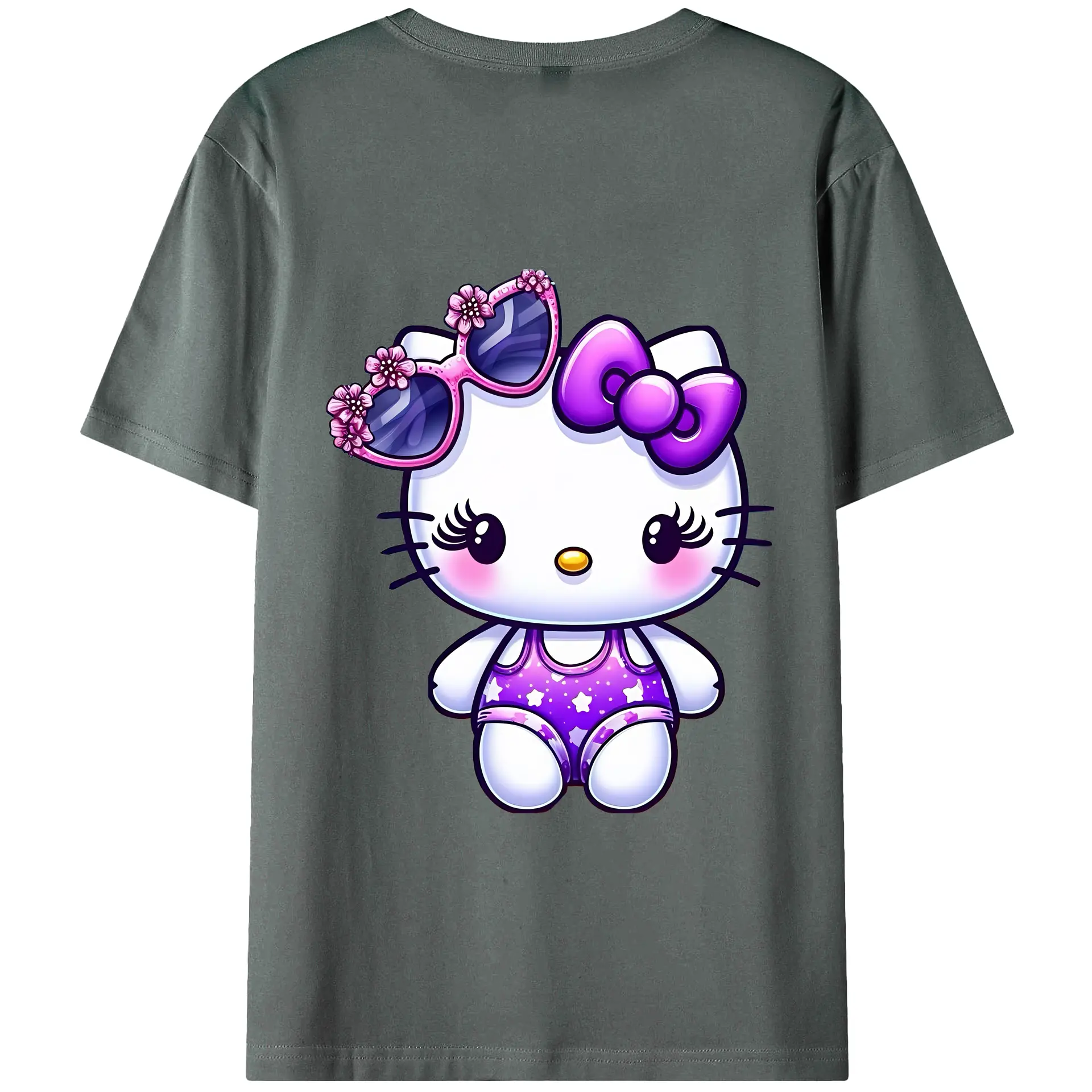 サンリオ グッズ,ハローキティ - 綿100% 半袖Tシャツ ・ フロントプリント ・ 快適 通気性 ・ 日常使い 散歩 スポーツ用