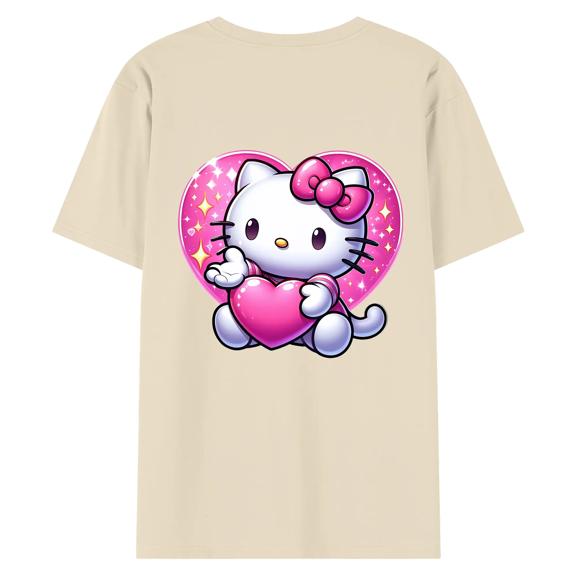 サンリオ グッズ,ハローキティ - 綿100% ヴィンテージ風 半袖Tシャツ ・ 背面プリント ・ 柔らか肌触り ・ 通気性 快適 ・ スポーツ カジュアル 外出用