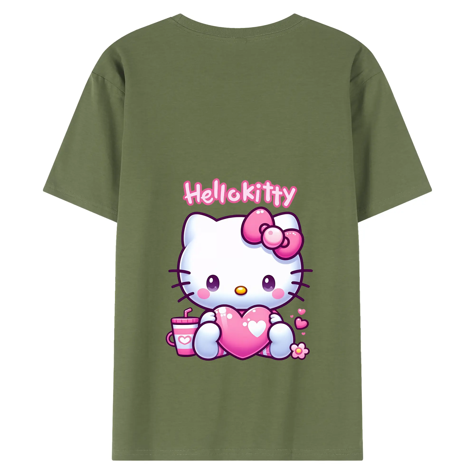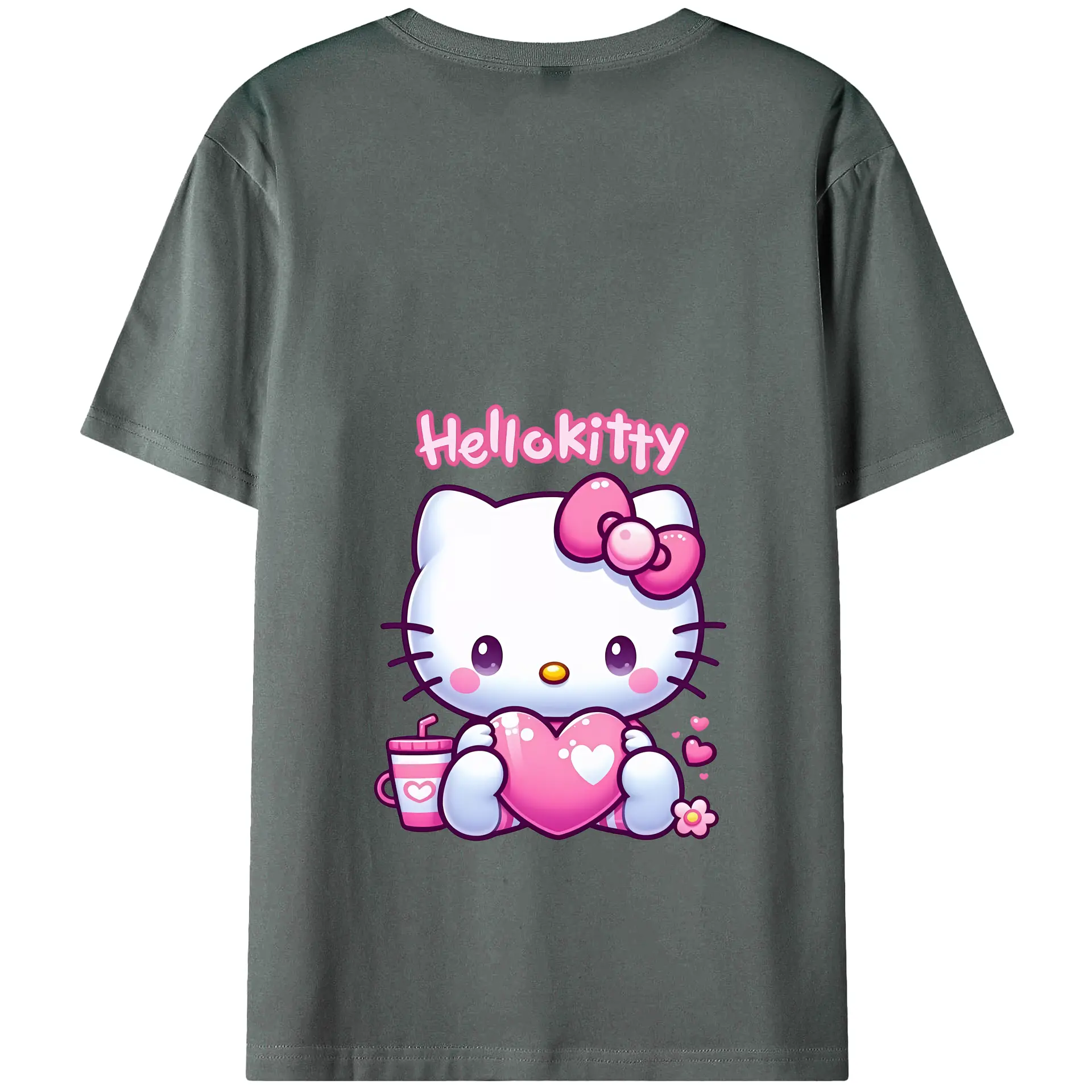 サンリオ グッズ,ハローキティ - 綿100% 半袖Tシャツ ・ フロントプリント ・ 快適 通気性 ・ 日常使い 散歩 スポーツ用