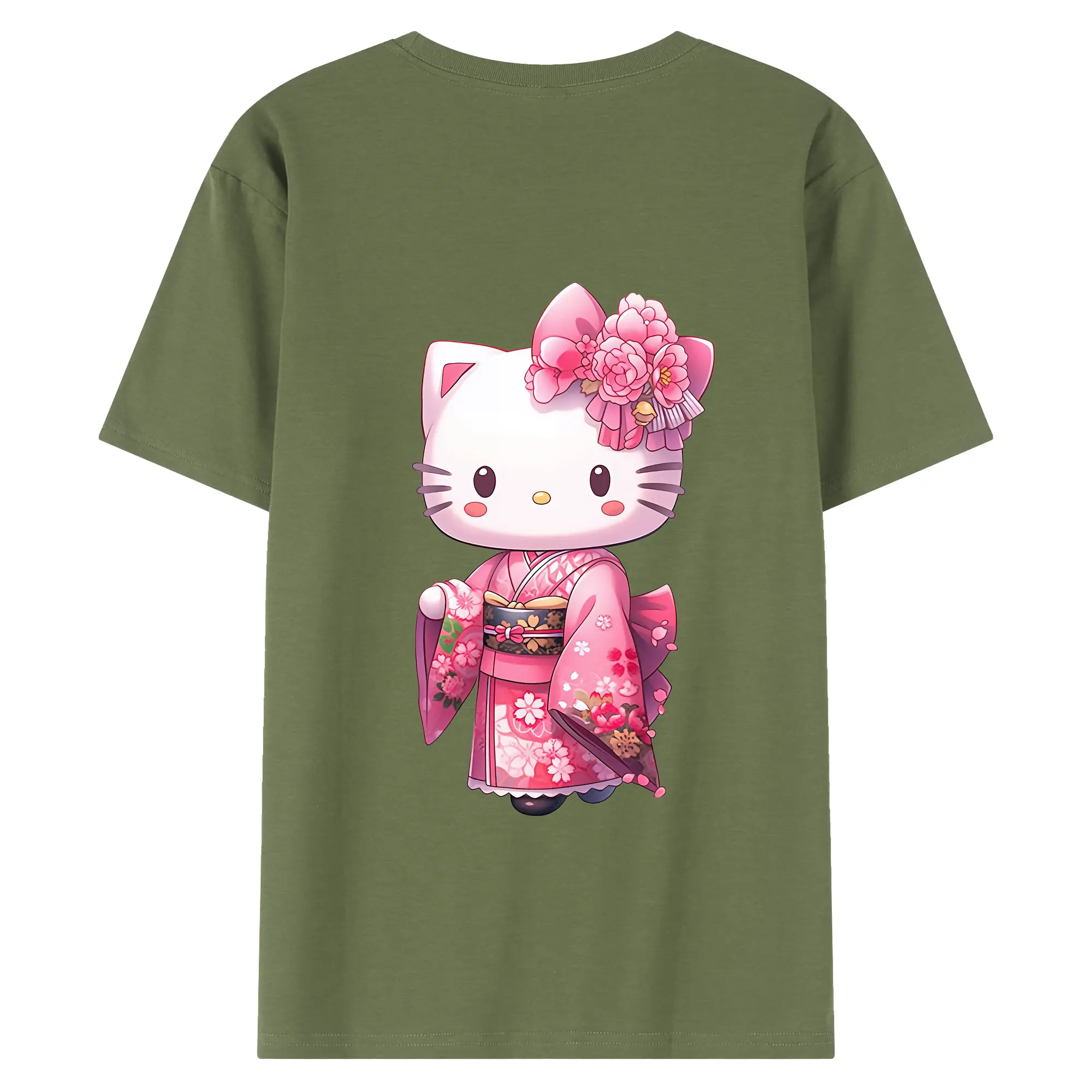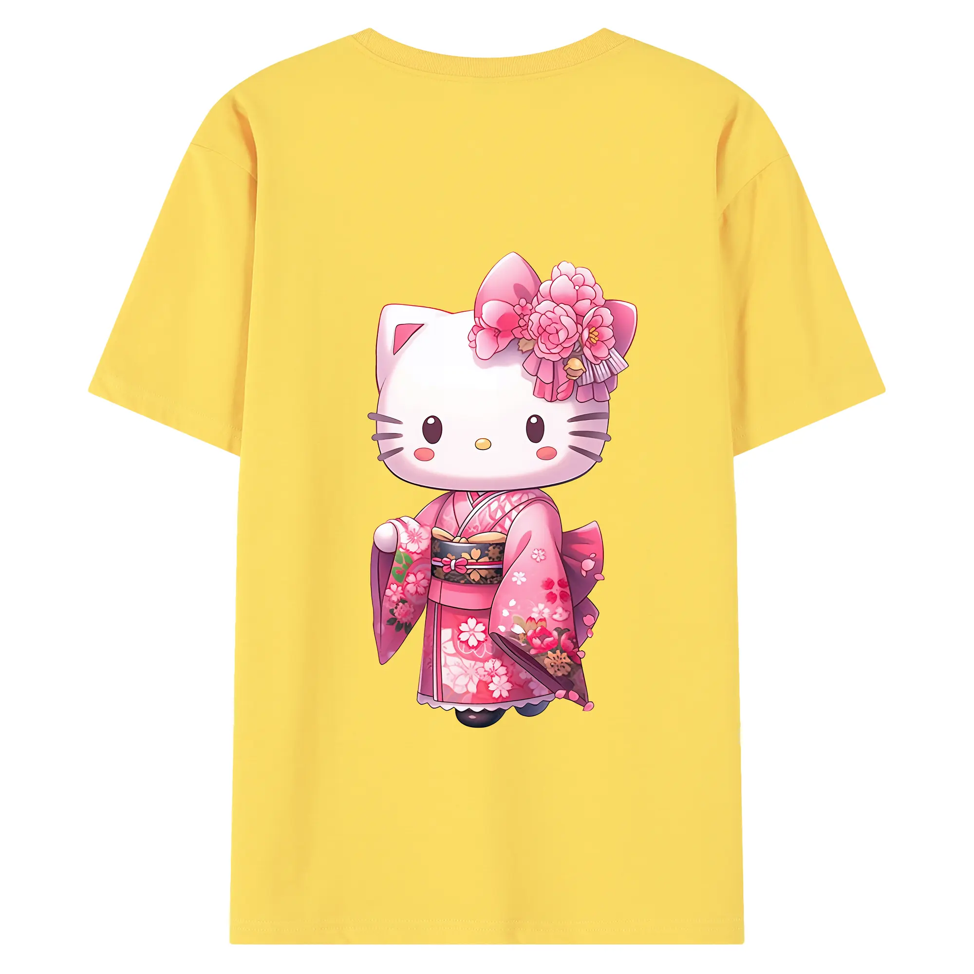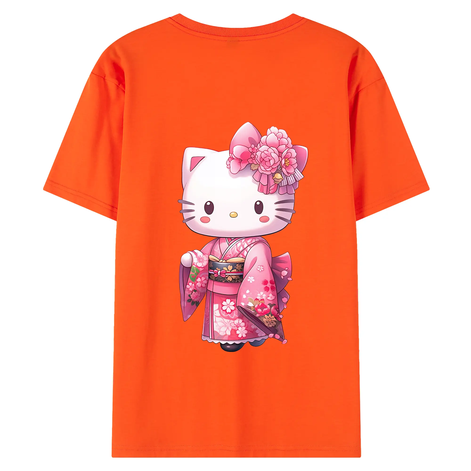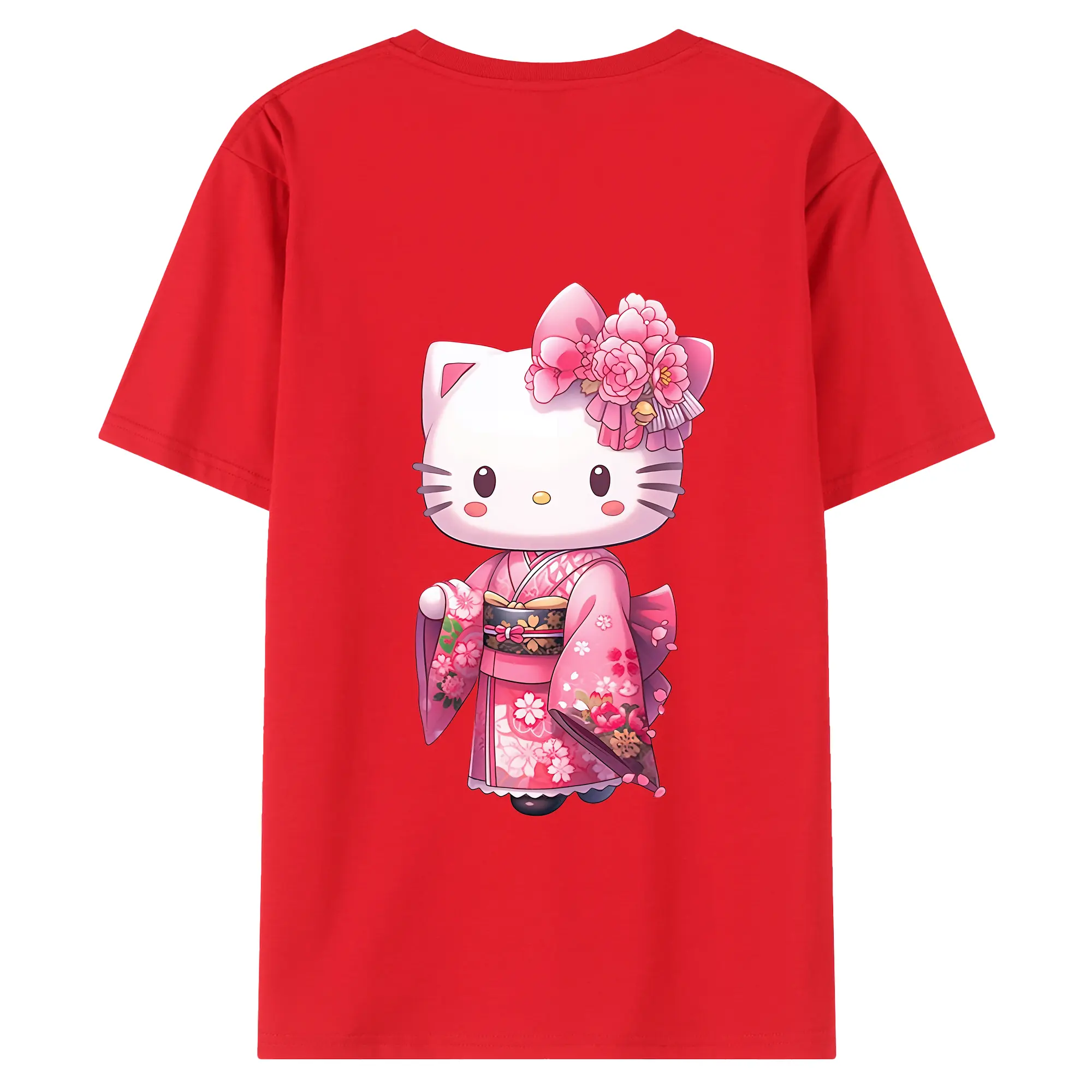 サンリオ グッズ,ハローキティ - 綿100% 半袖Tシャツ ・ フロントプリント ・ 快適 通気性 ・ 日常使い 散歩 スポーツ用