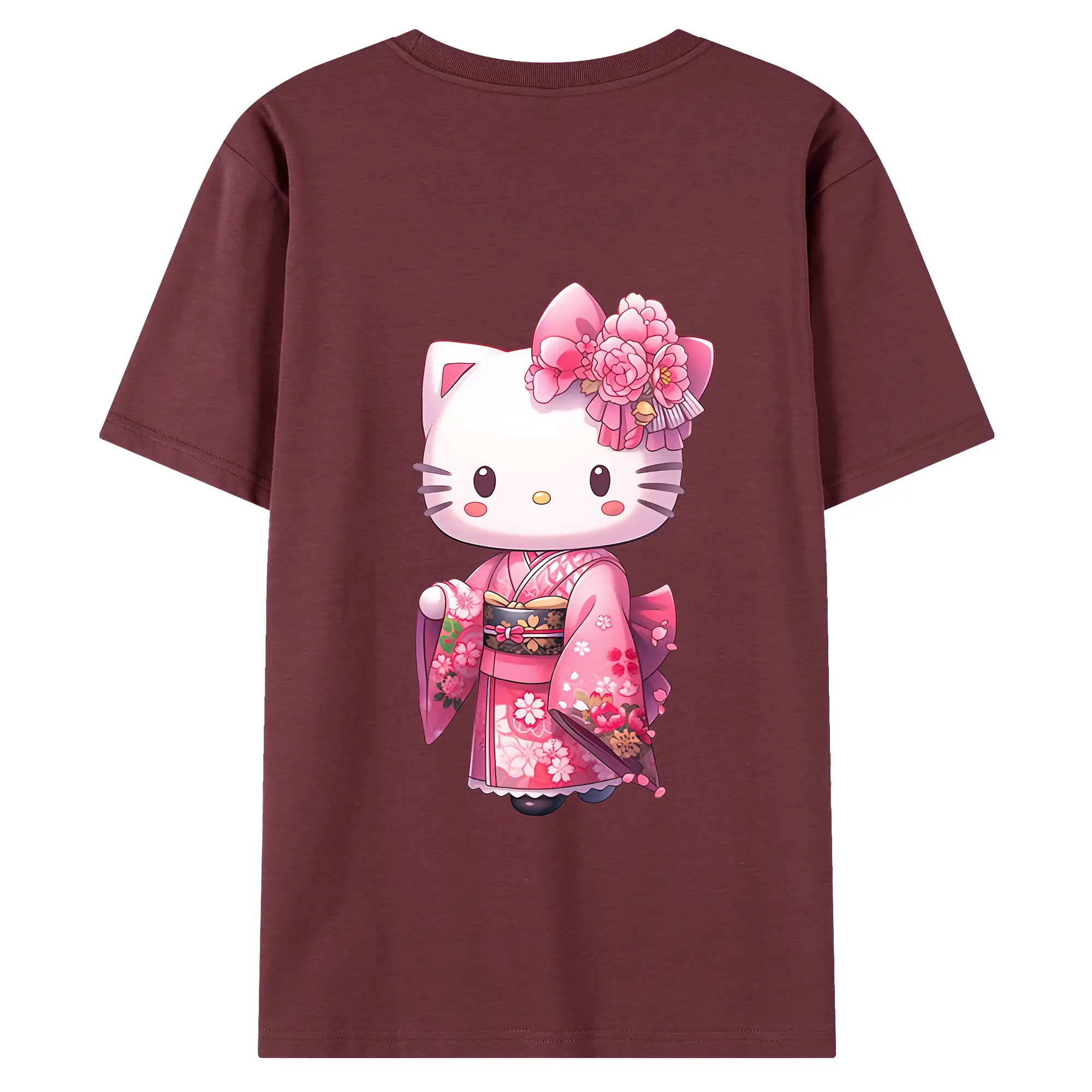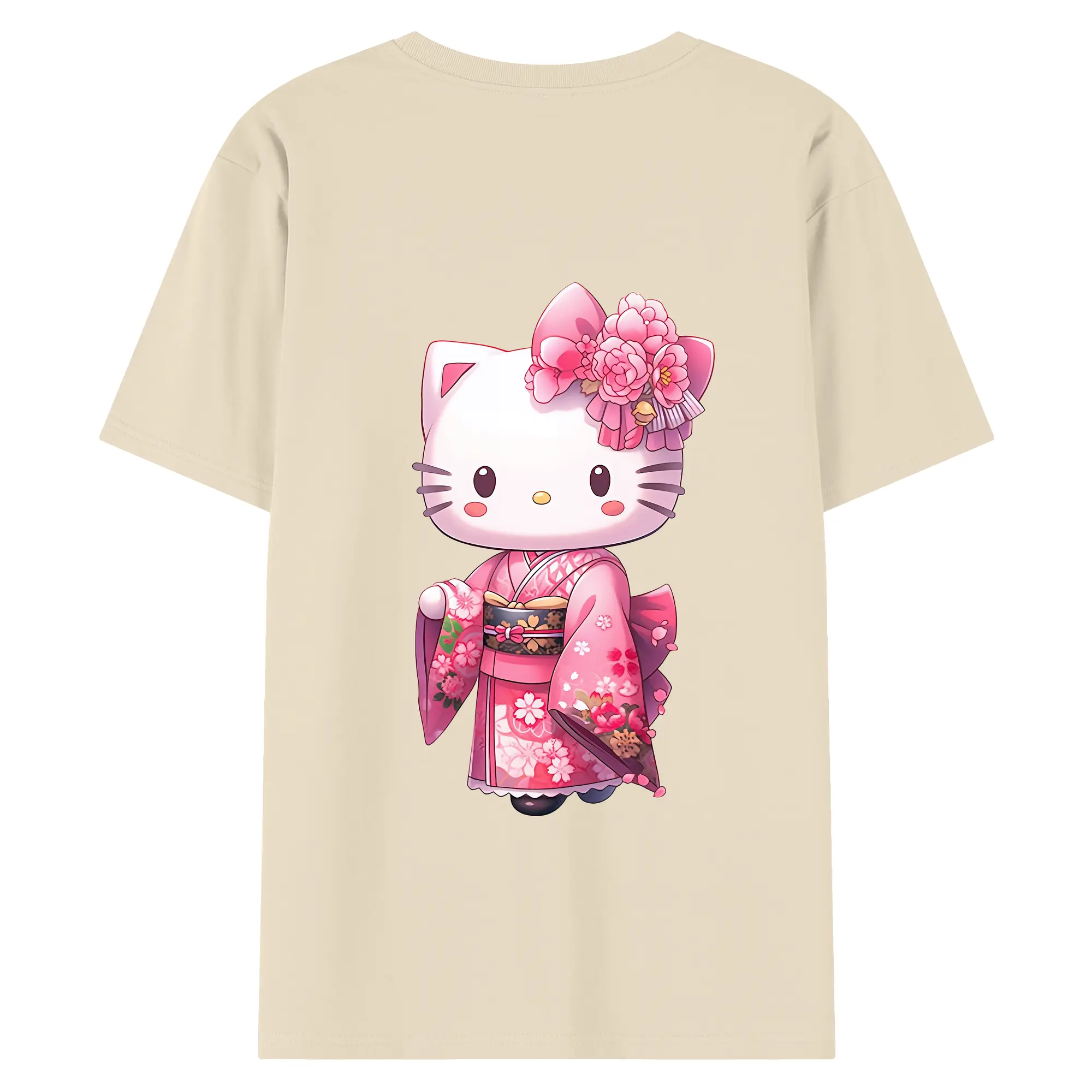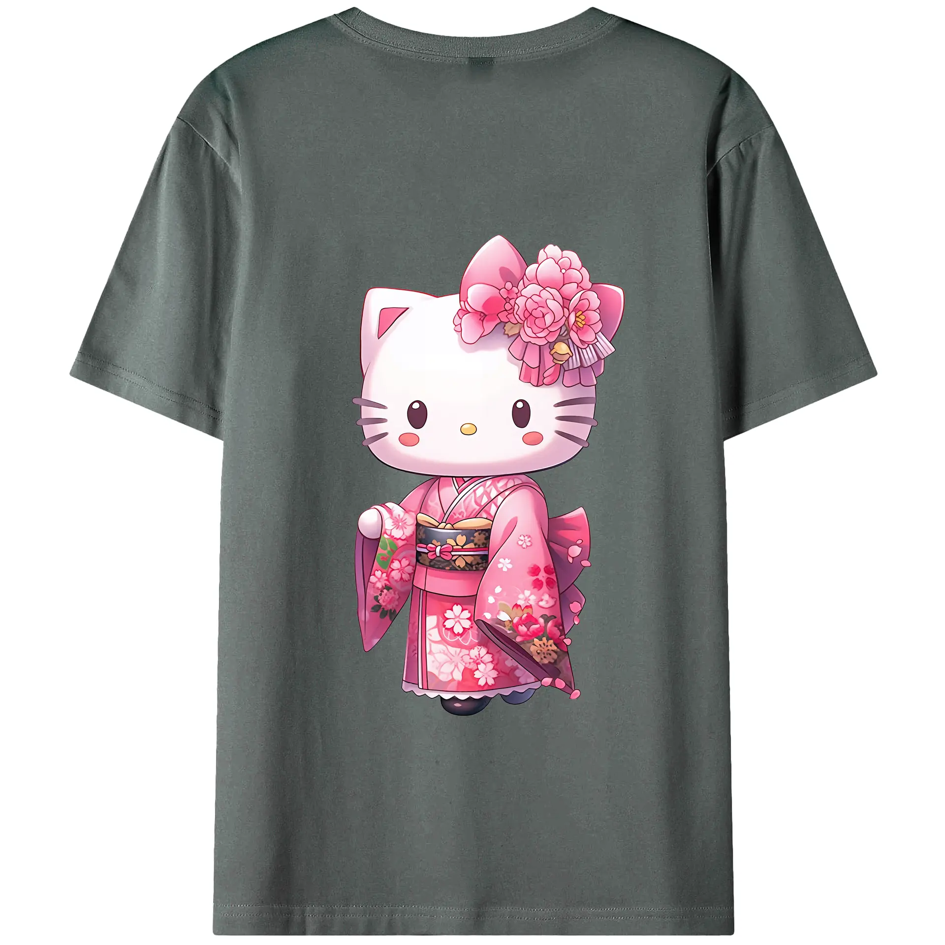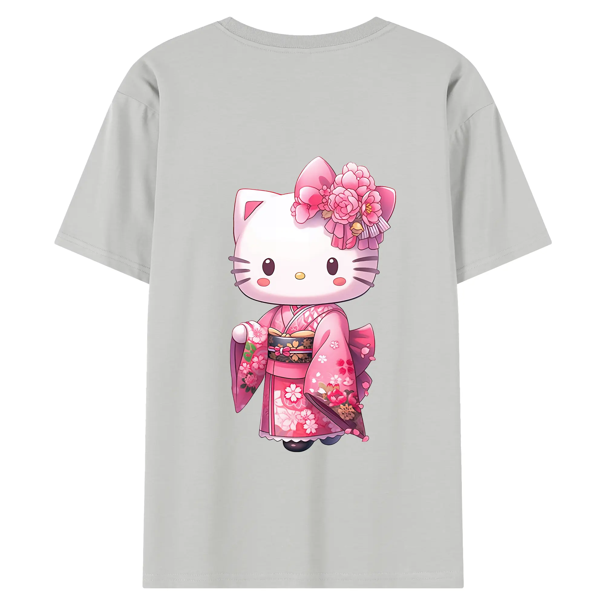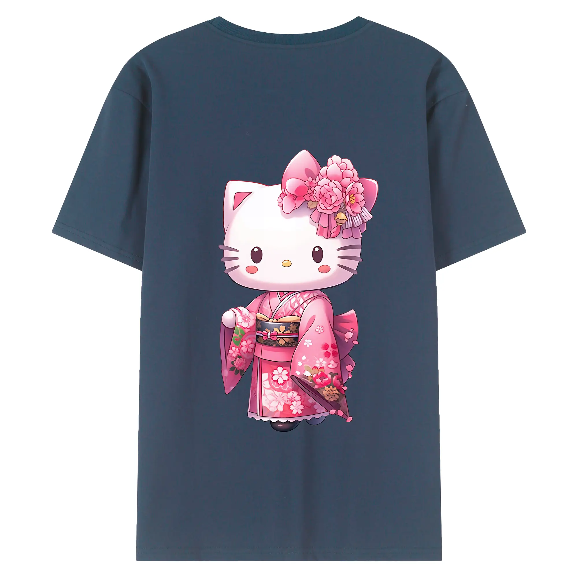 サンリオ グッズ,ハローキティ - 綿100% ヴィンテージ風 半袖Tシャツ ・ 背面プリント ・ 柔らか肌触り ・ 通気性 快適 ・ スポーツ カジュアル 外出用