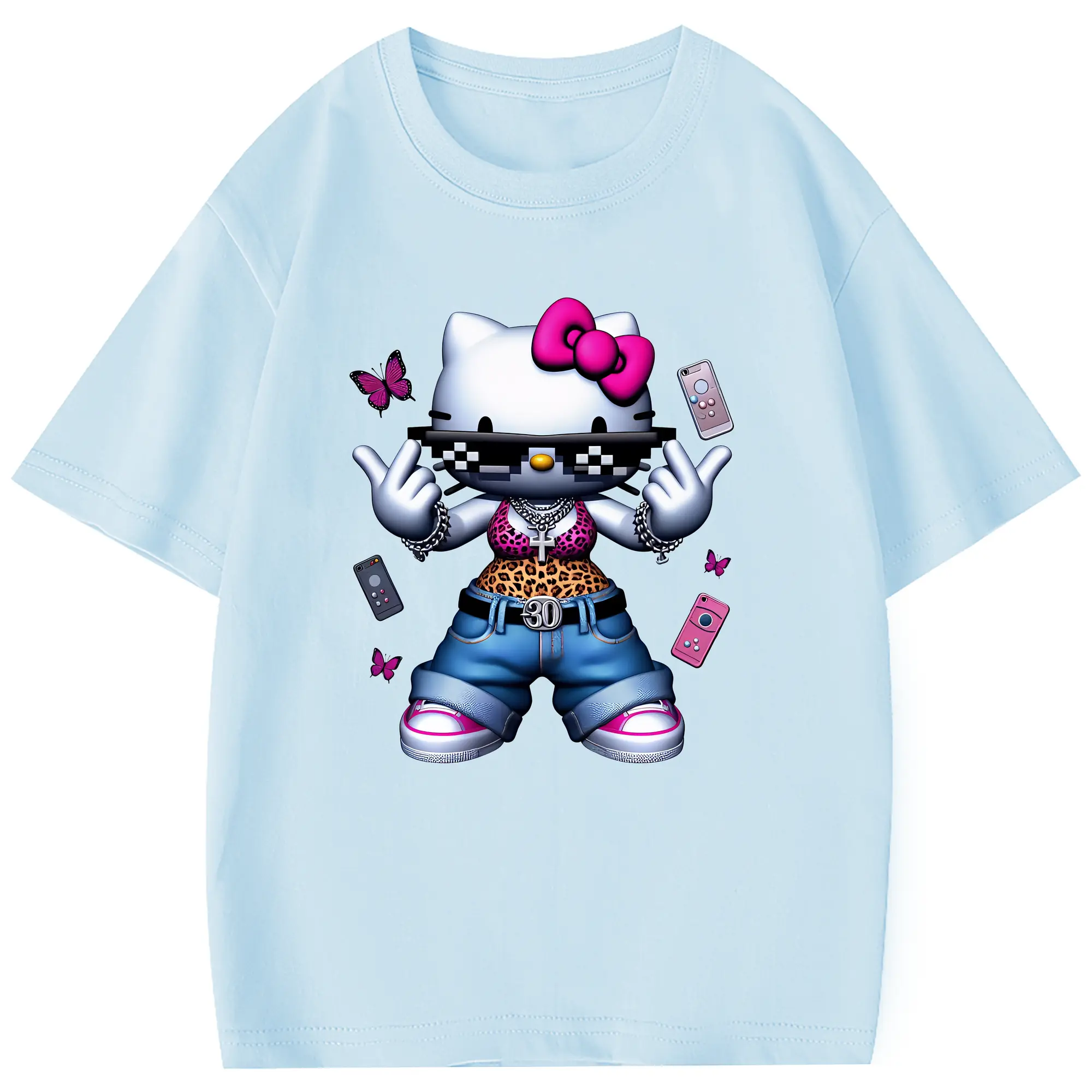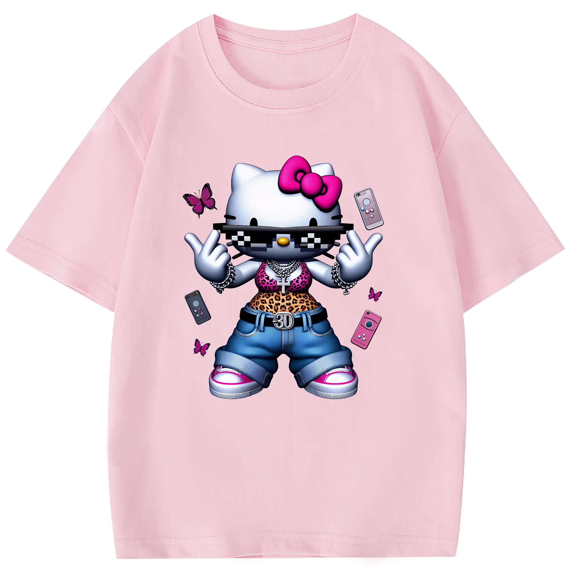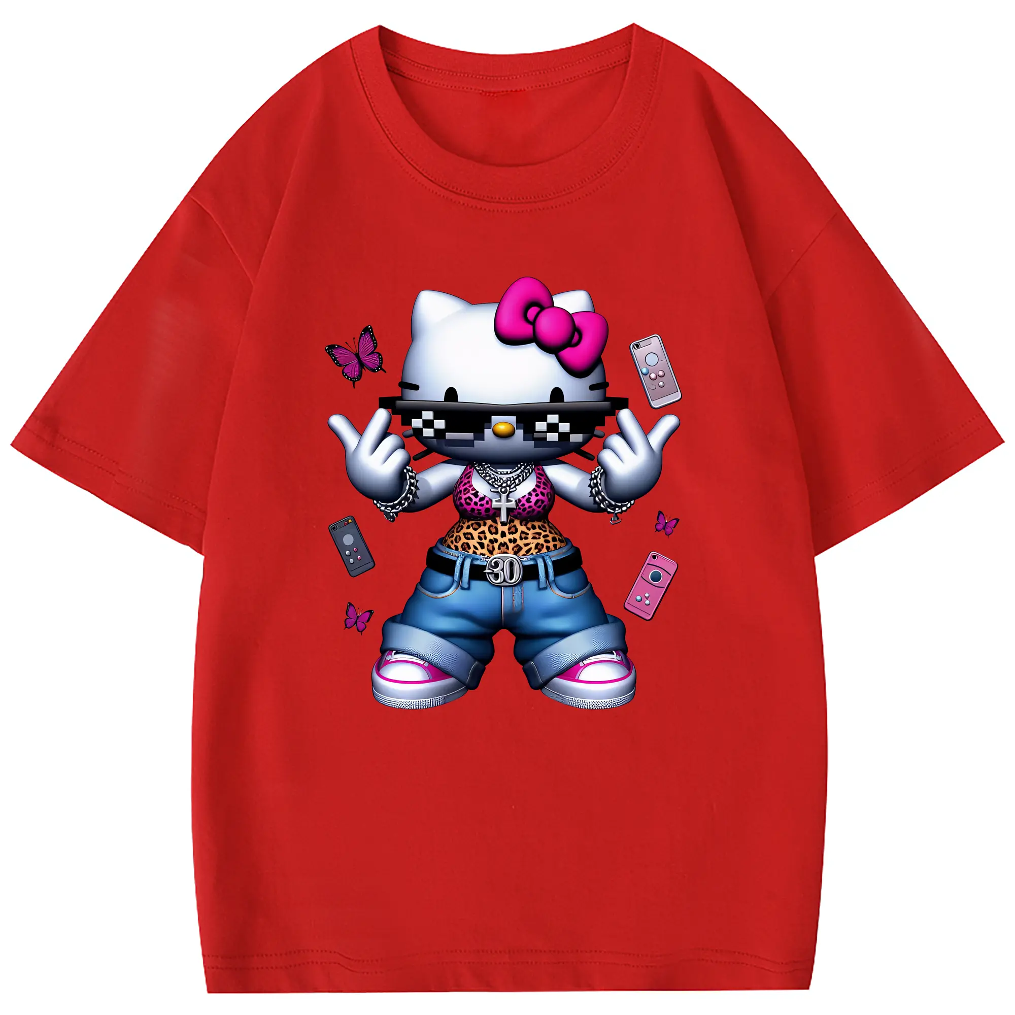 サンリオ グッズ,ハローキティ - 綿100% 半袖Tシャツ ・ フロントプリント ・ 快適 通気性 ・ 日常使い 散歩 スポーツ用