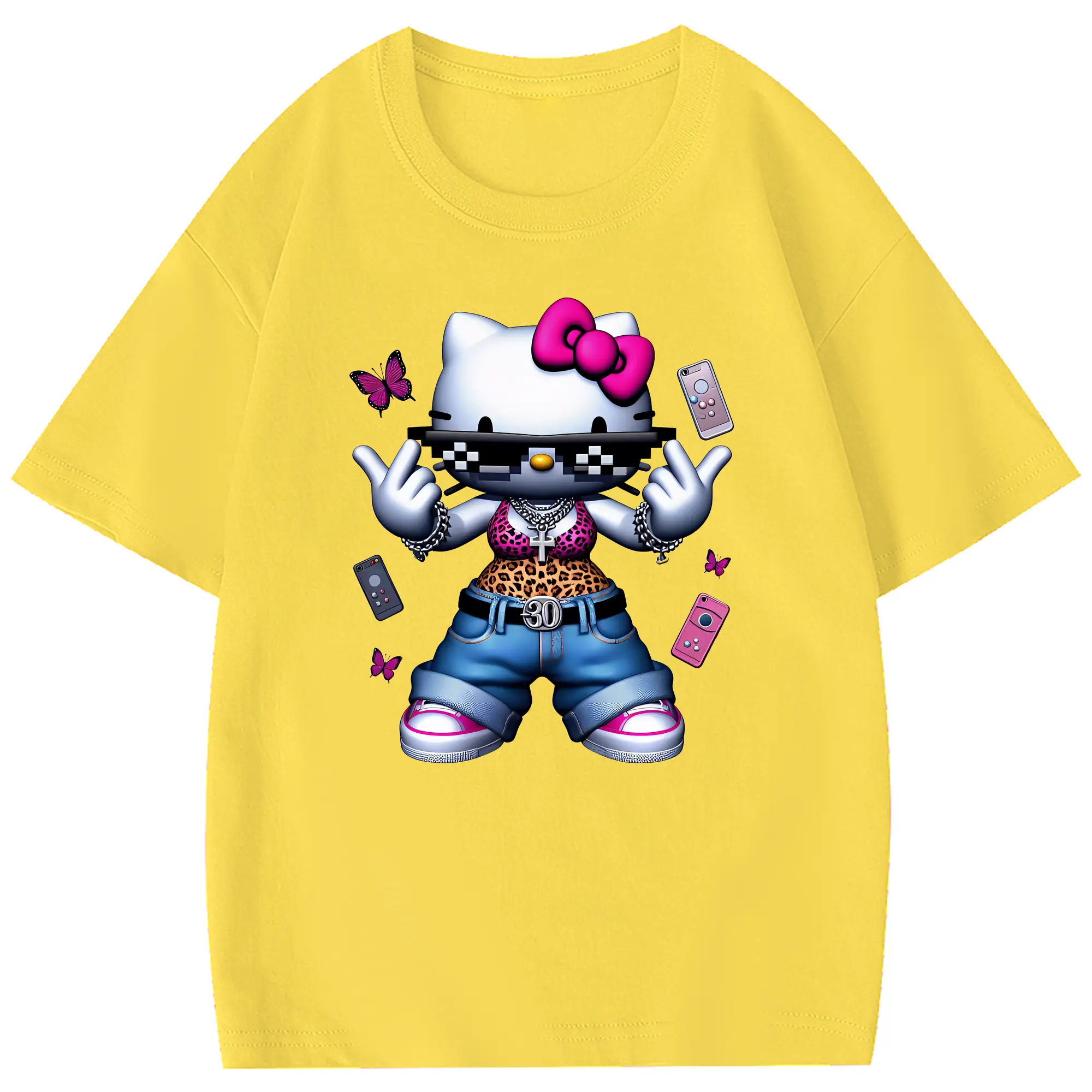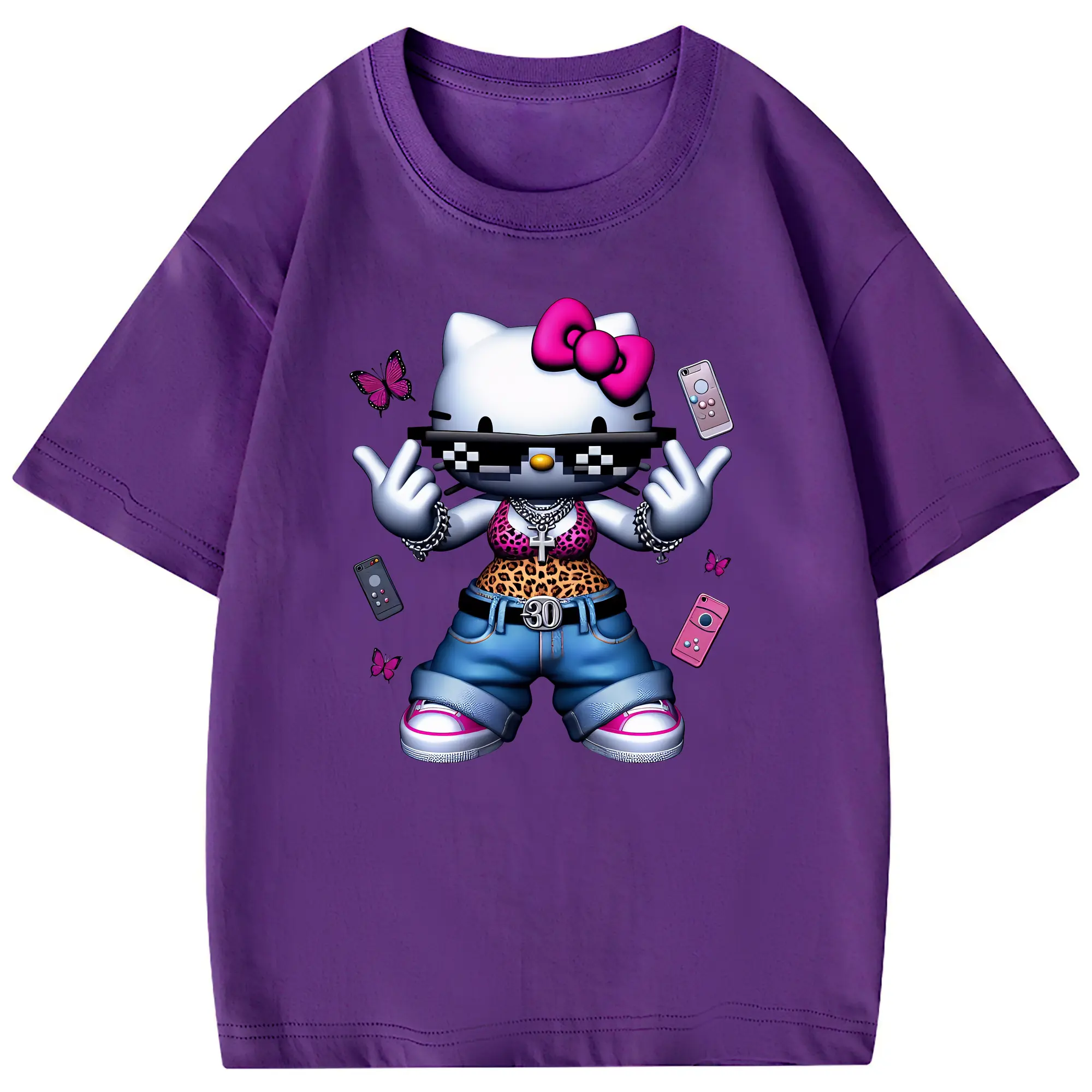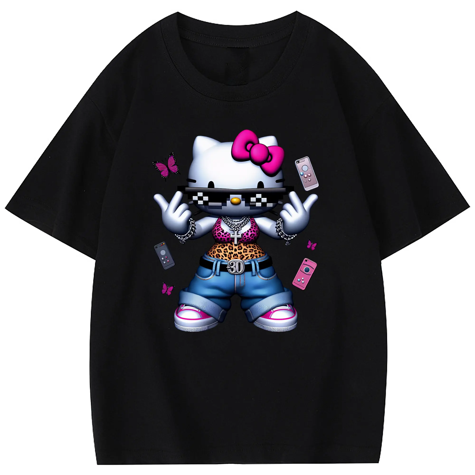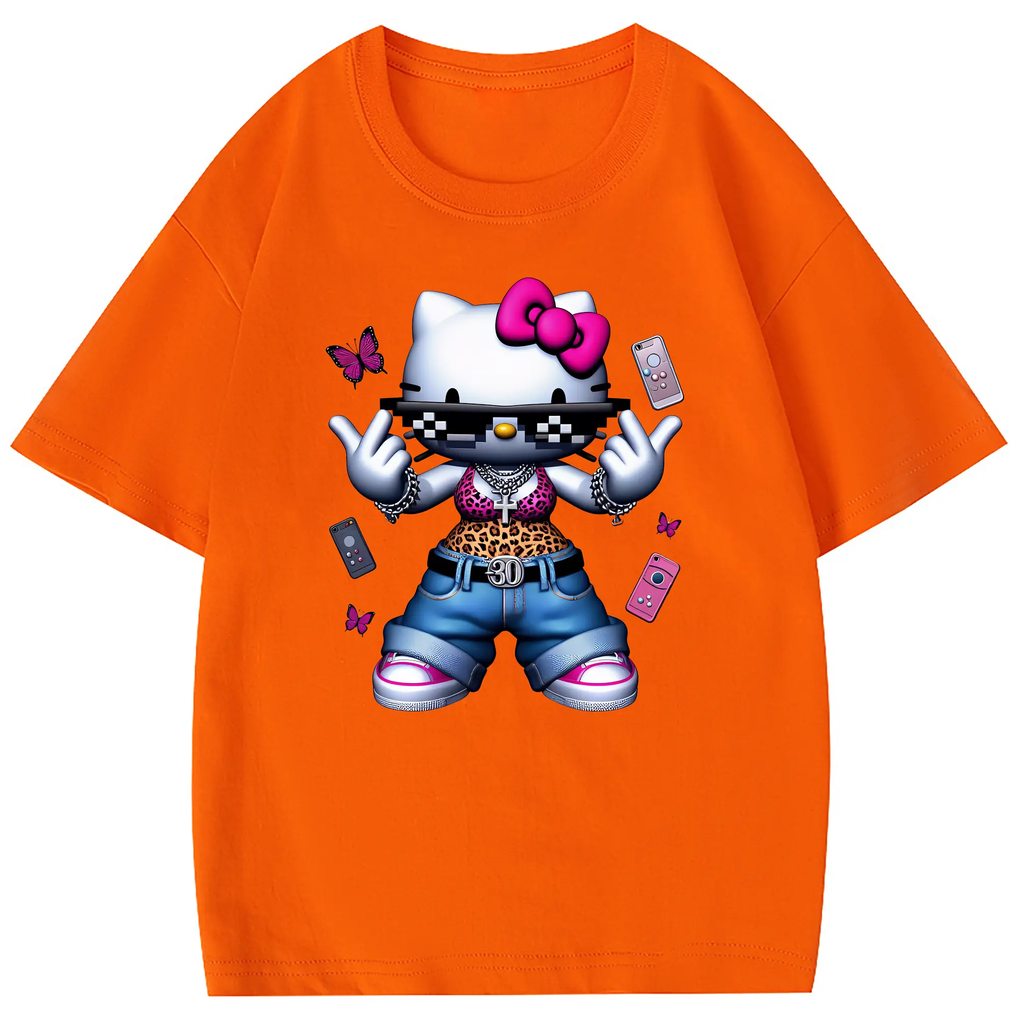 サンリオ グッズ,ハローキティ - 綿100% 半袖Tシャツ ・ フロントプリント ・ 快適 通気性 ・ 日常使い 散歩 スポーツ用