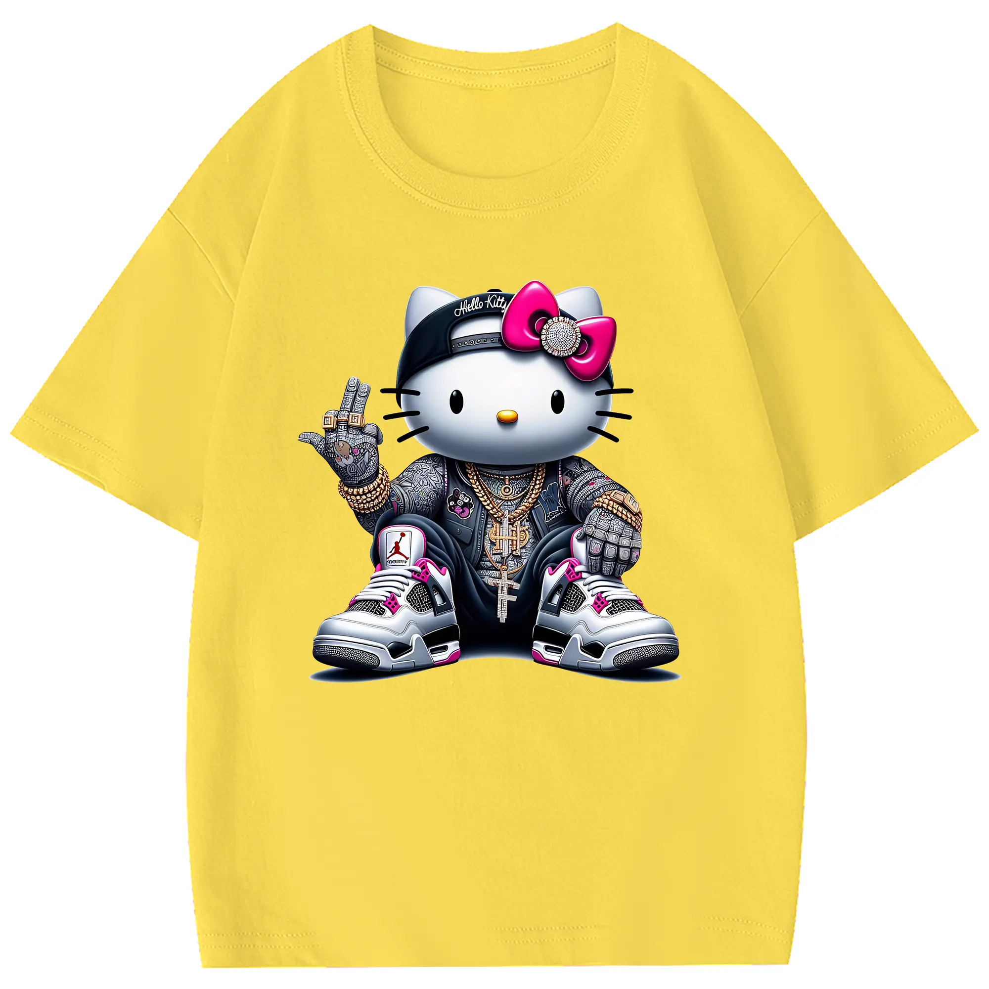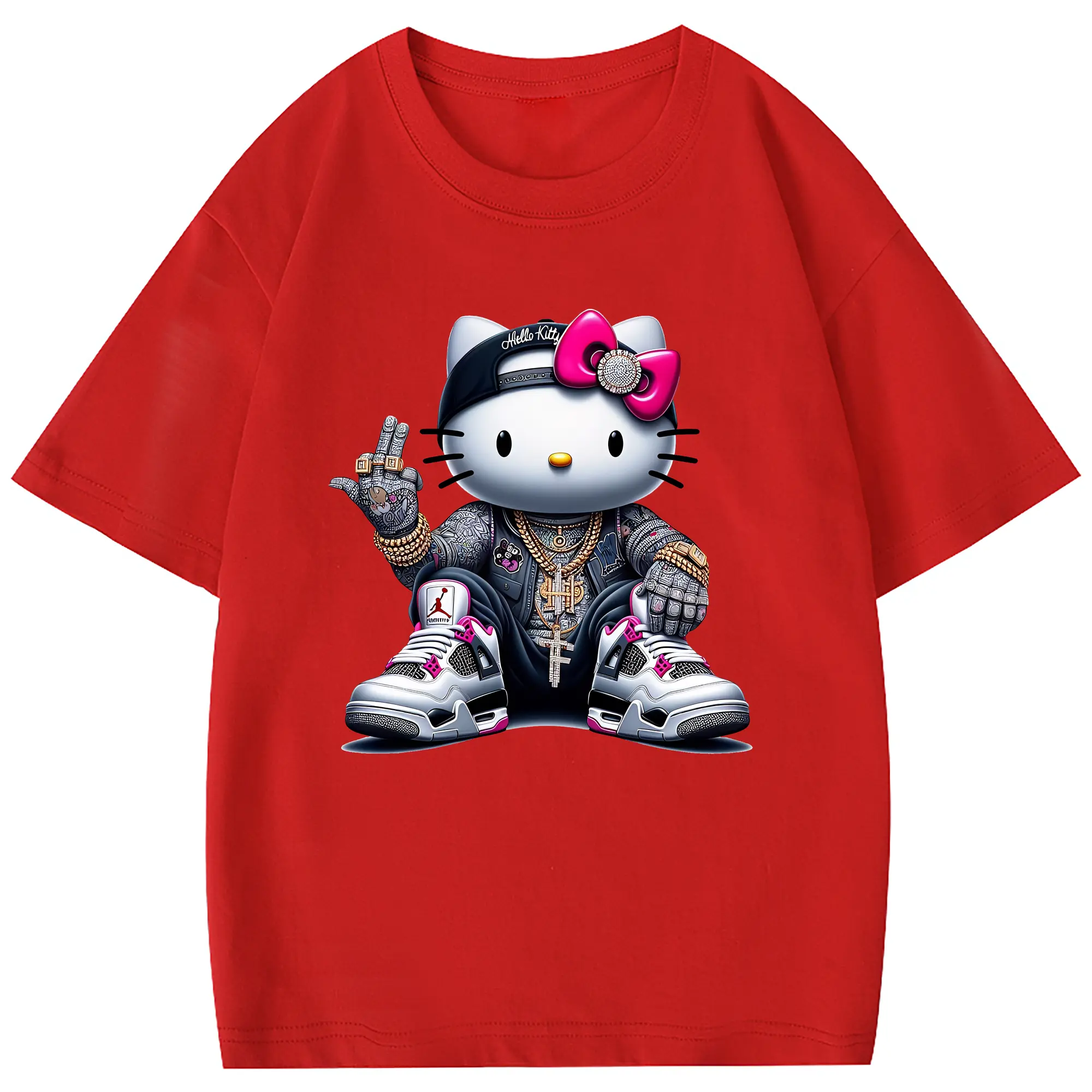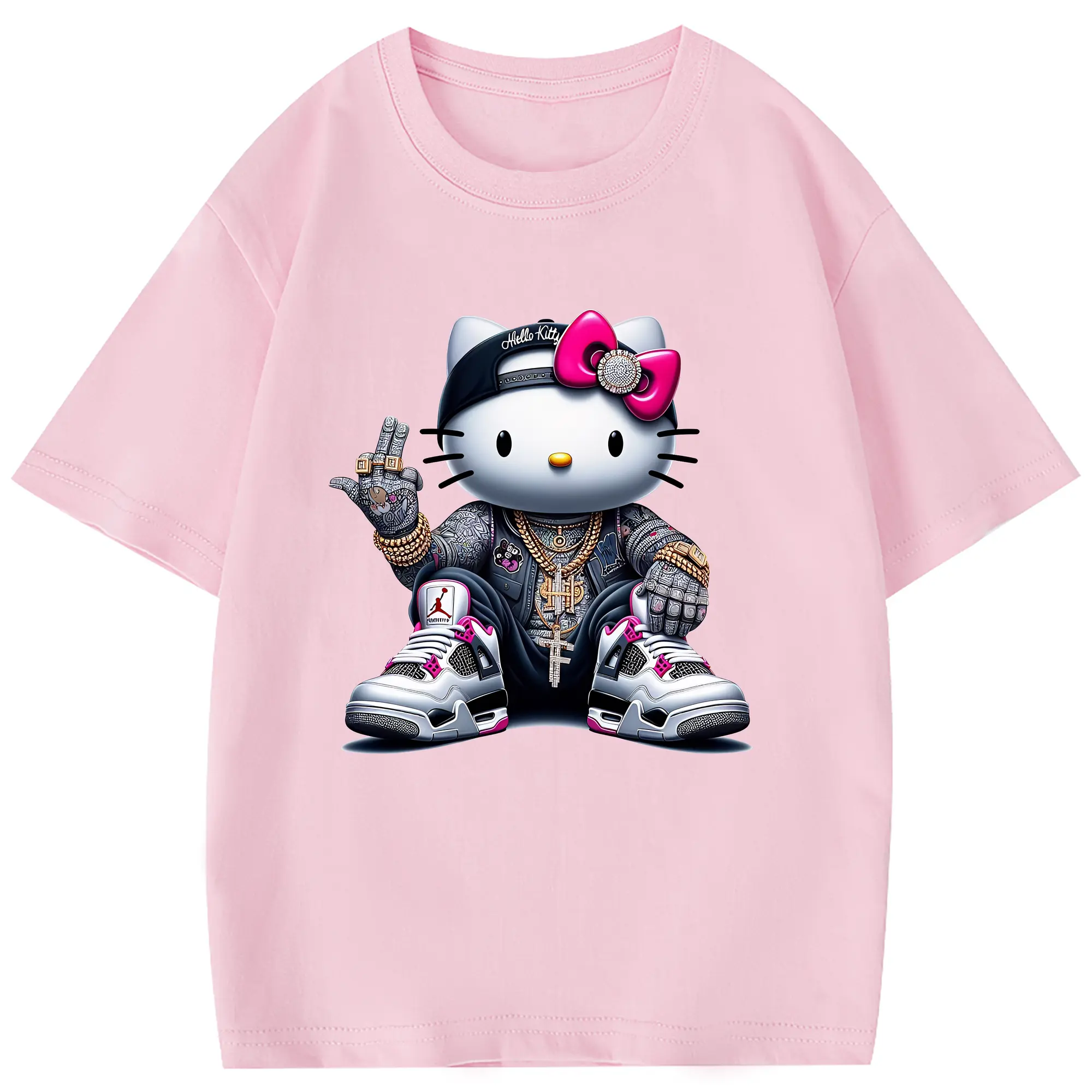 サンリオ グッズ,ハローキティ - 綿100% 半袖Tシャツ ・ フロントプリント ・ 快適 通気性 ・ 日常使い 散歩 スポーツ用